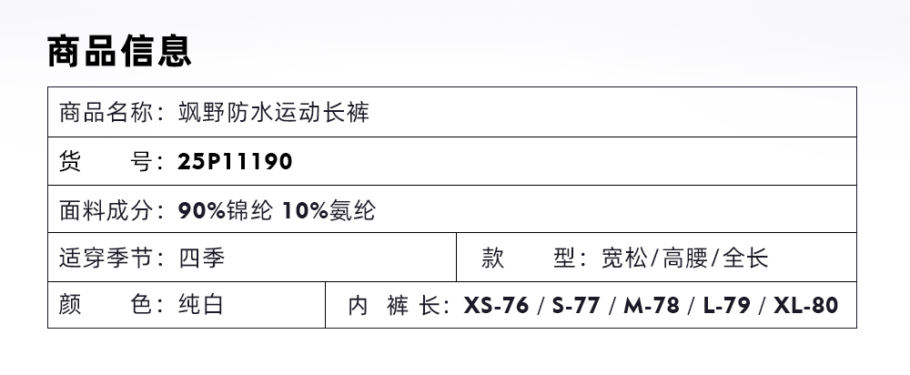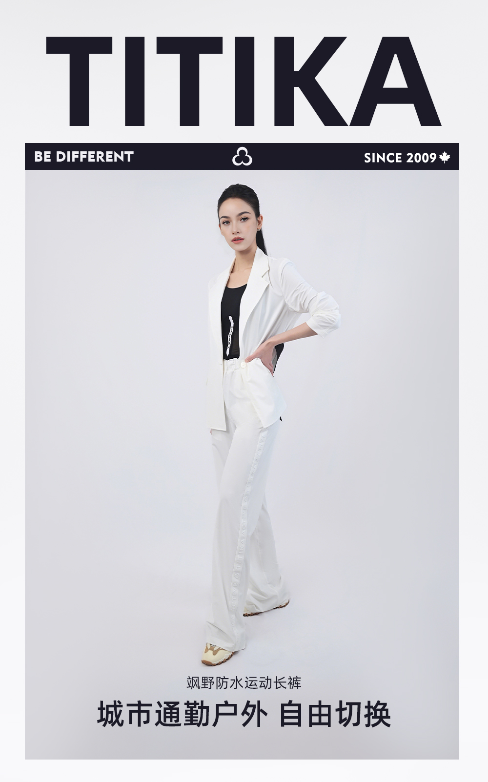 TITIKA ACTIVE飒野防水宽松运动长裤弹力高腰松紧裤11190