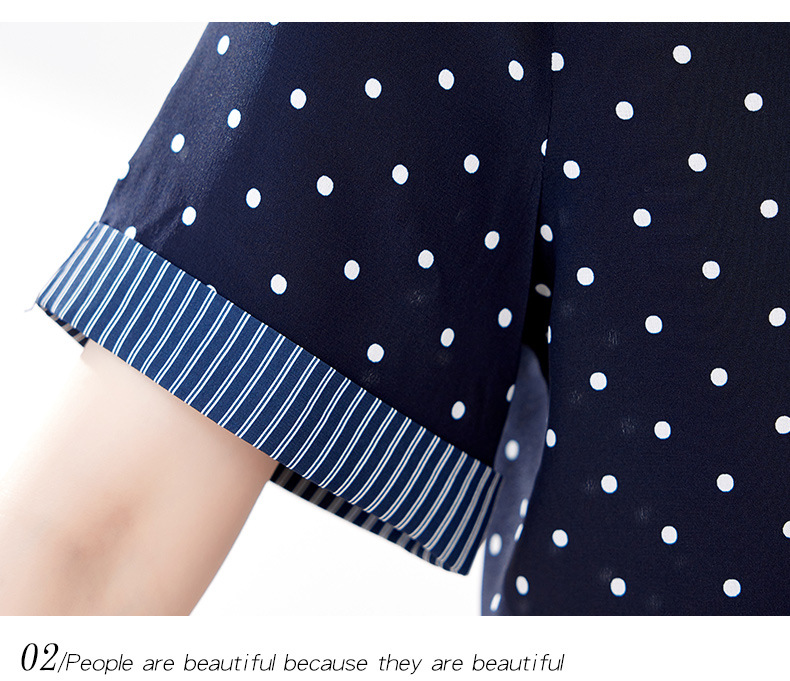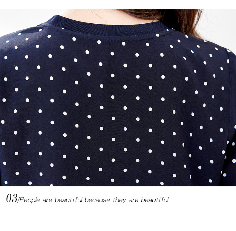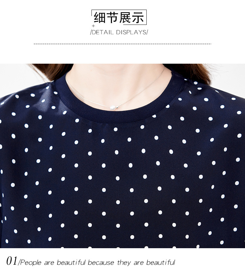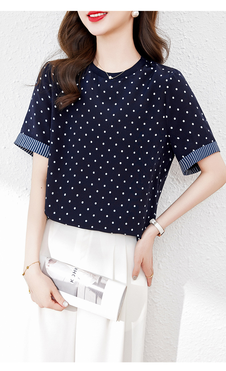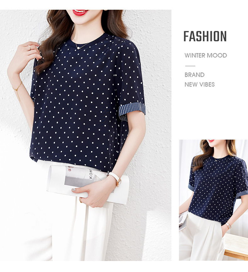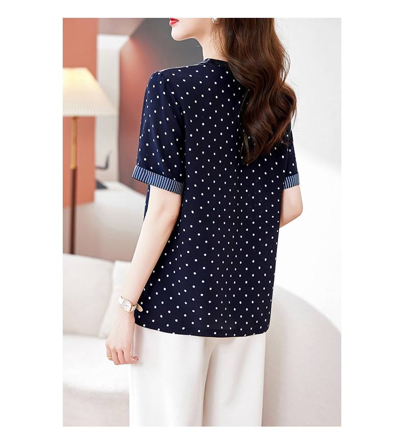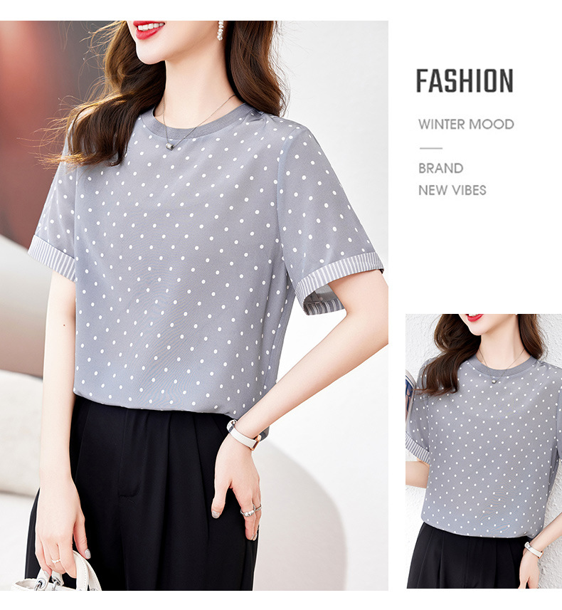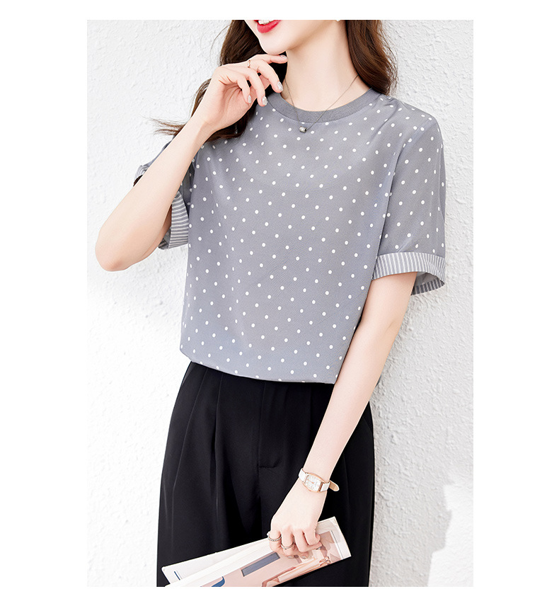丁摩 真丝波点圆领设计感夏正肩短袖T恤9679