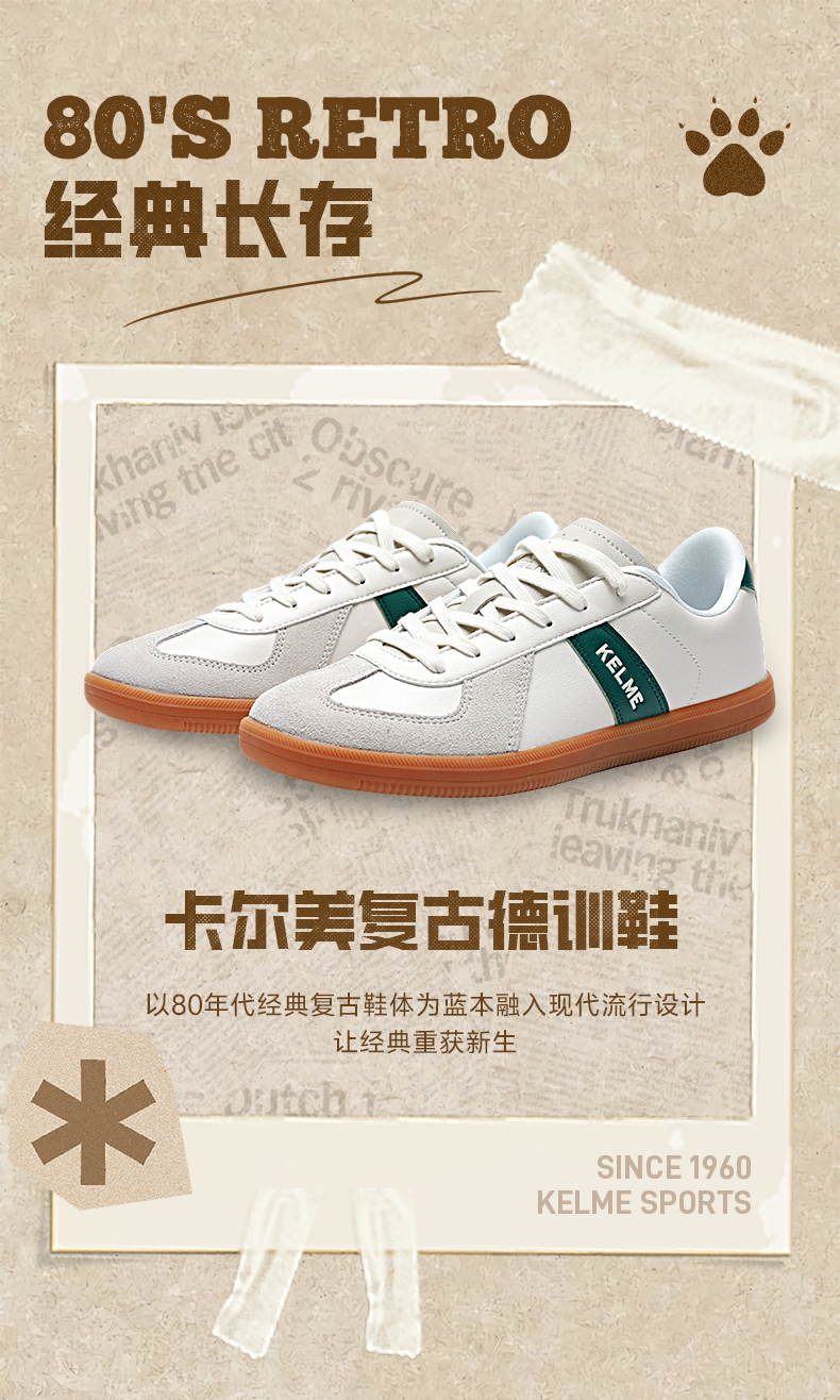卡尔美KELME复古时尚德训鞋男女同款休闲鞋9537XX5340
