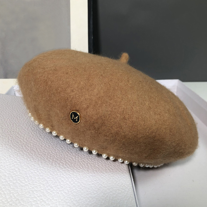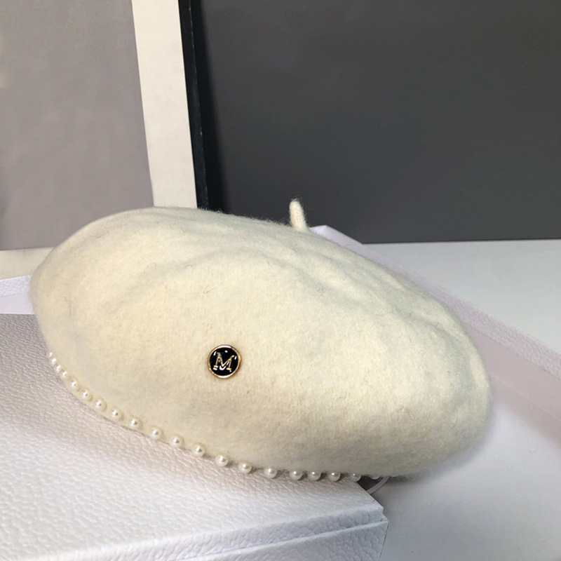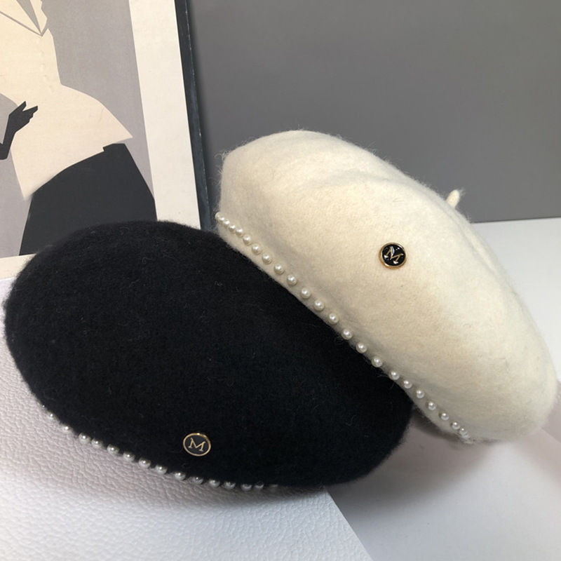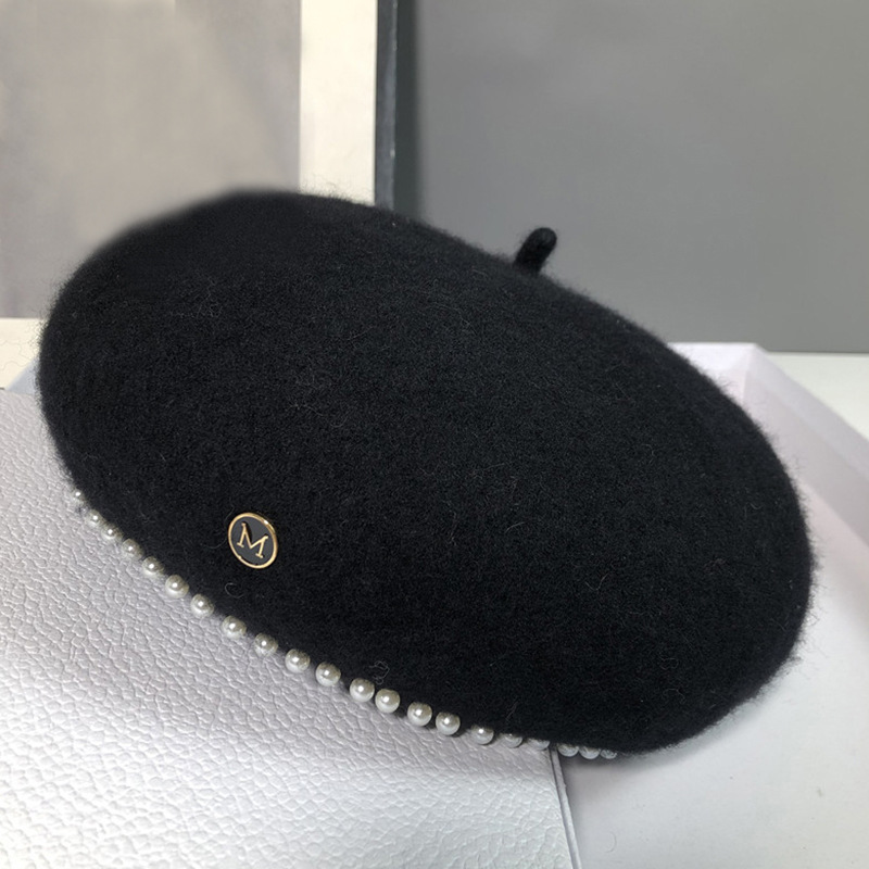 雀说英伦羊毛呢复古贝雷帽子女秋冬韩国钉珠蓓蕾帽气质名媛画家帽子潮ALW47324