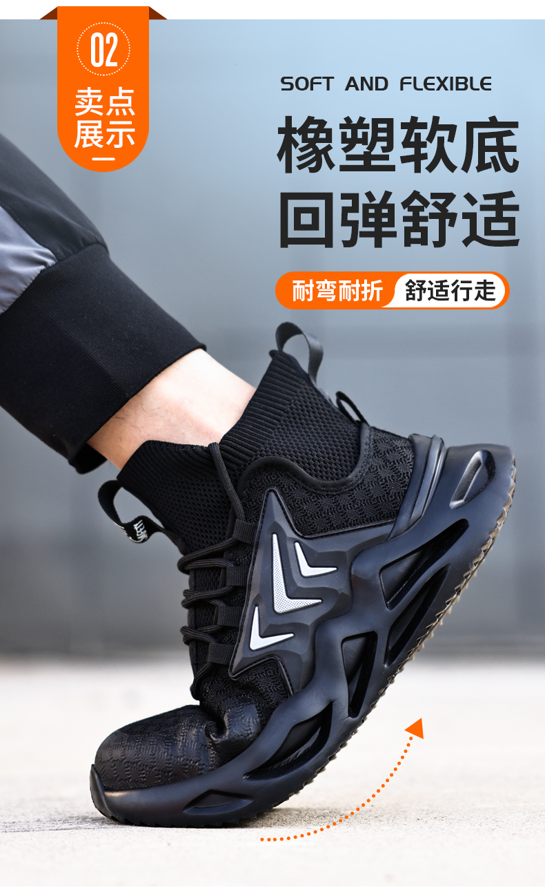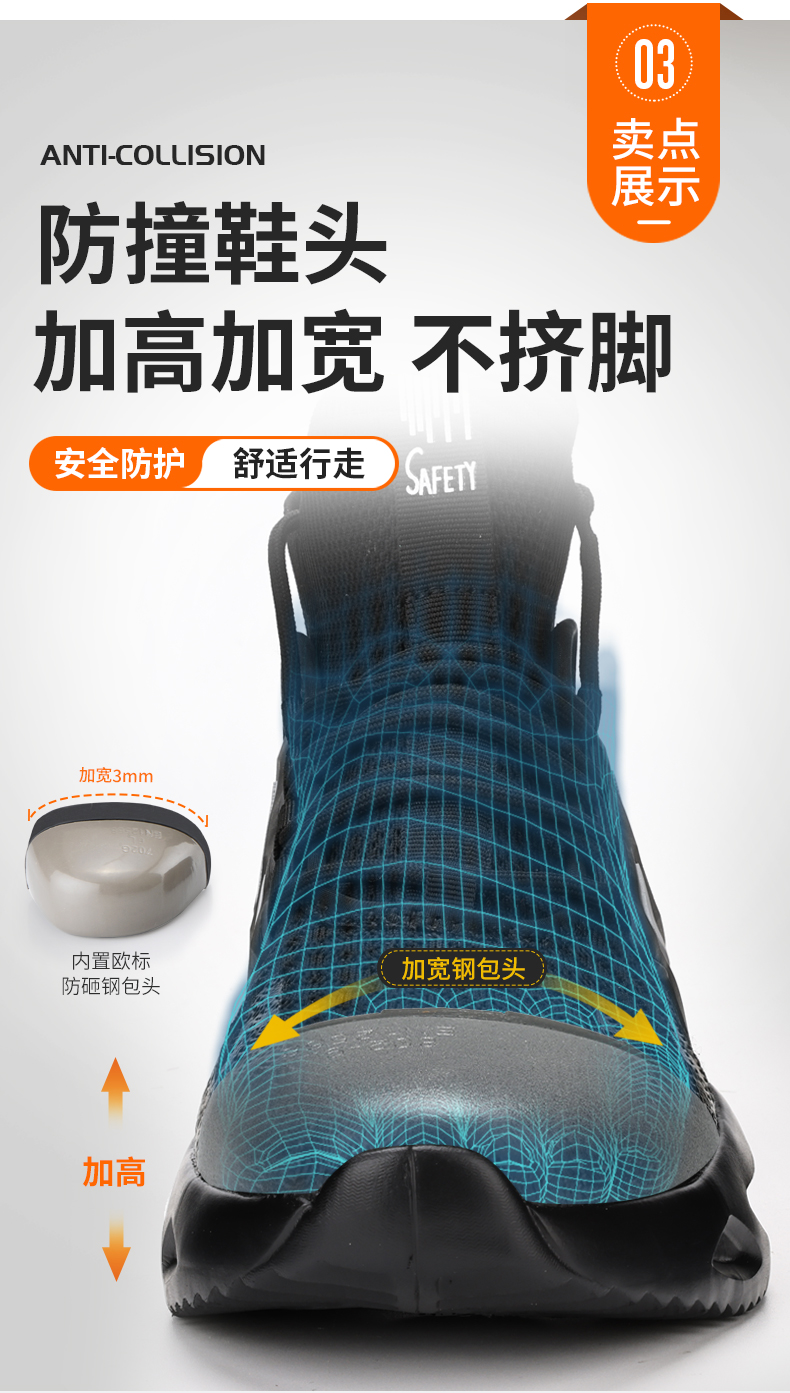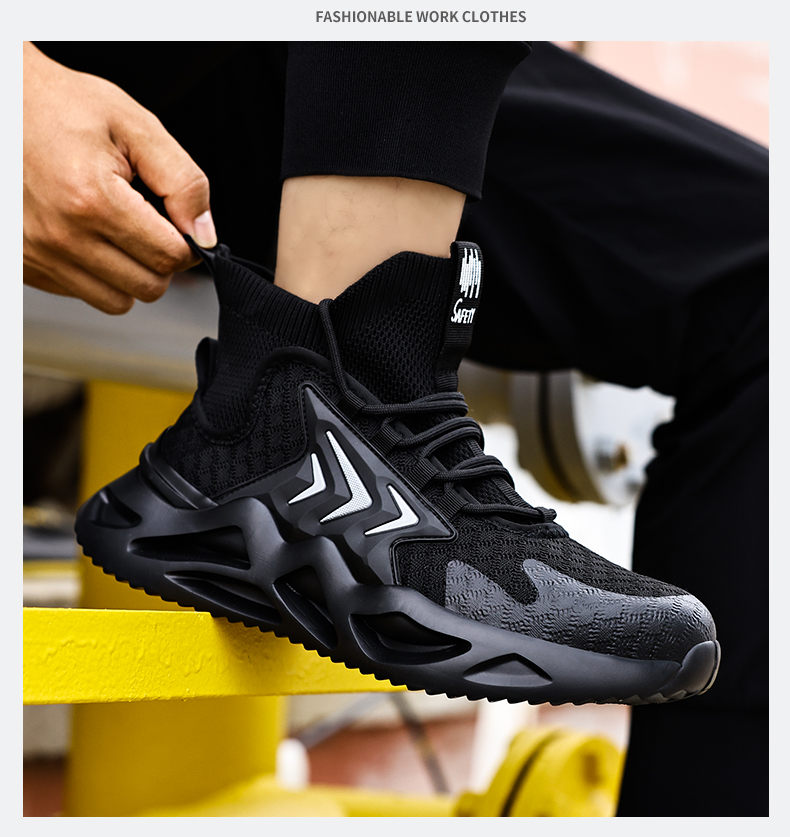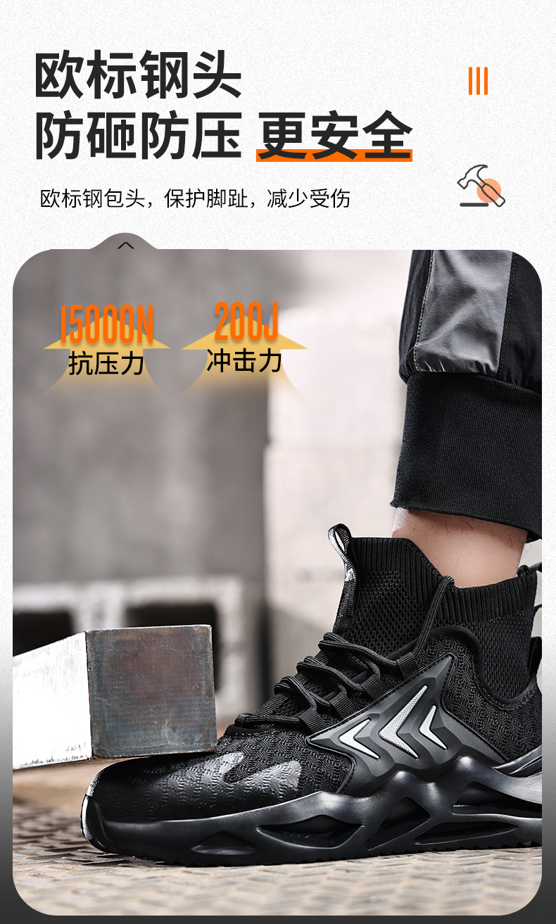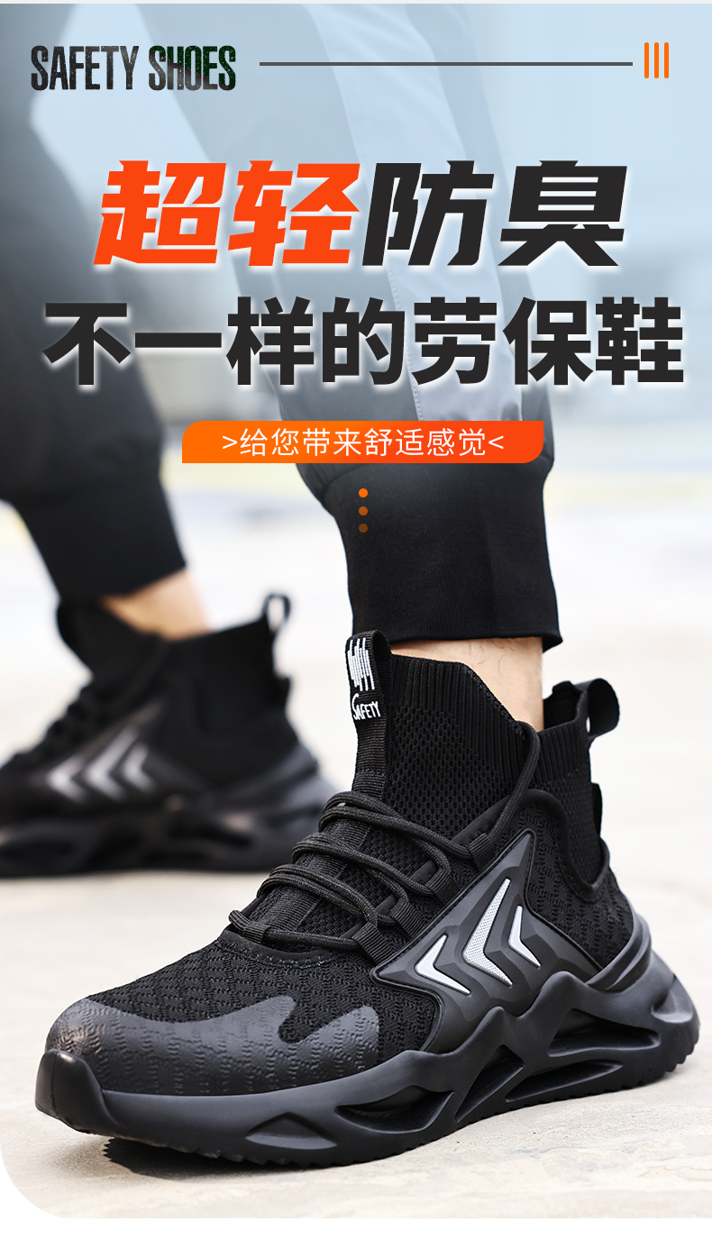 新品黑色四季款高帮透气轻便劳保鞋男防砸防刺网布工地安全鞋