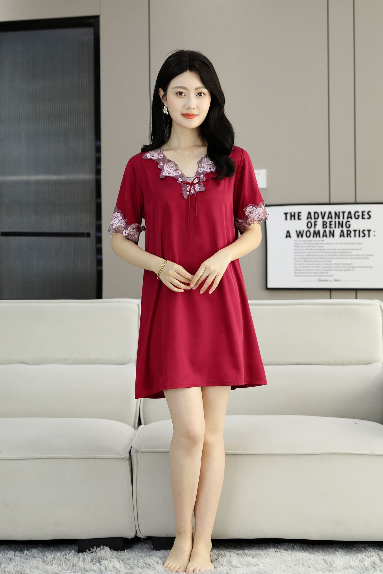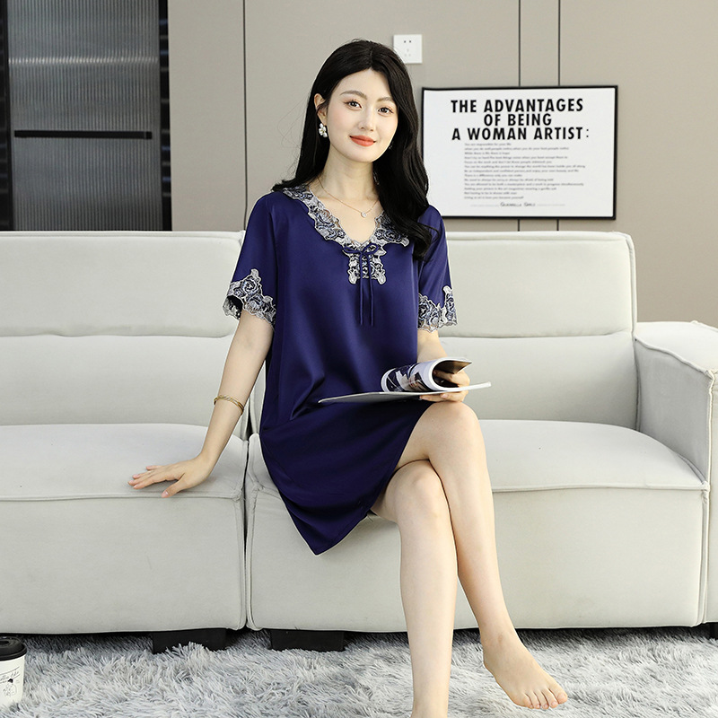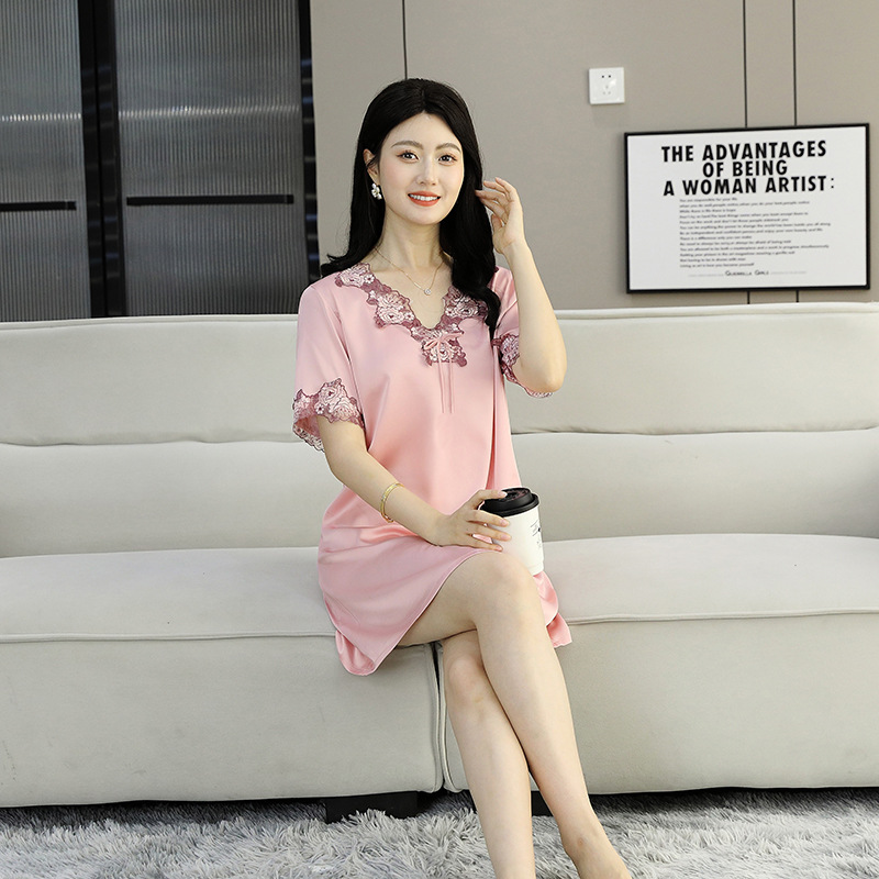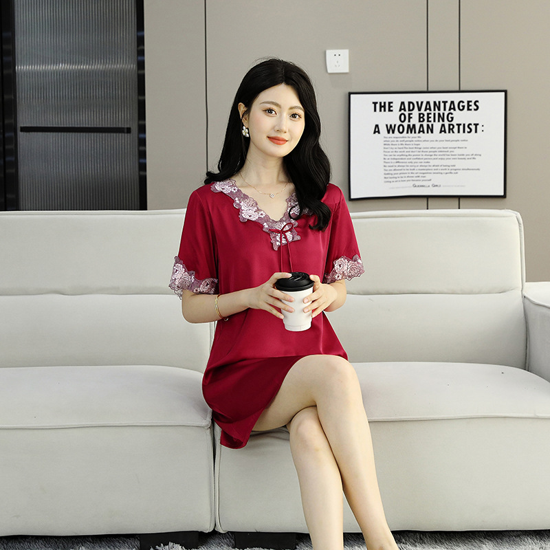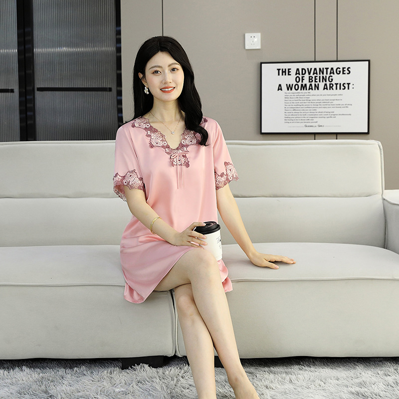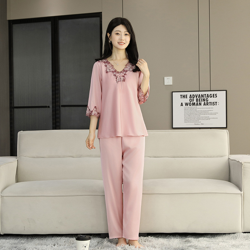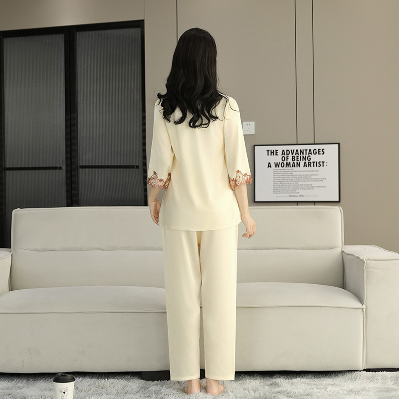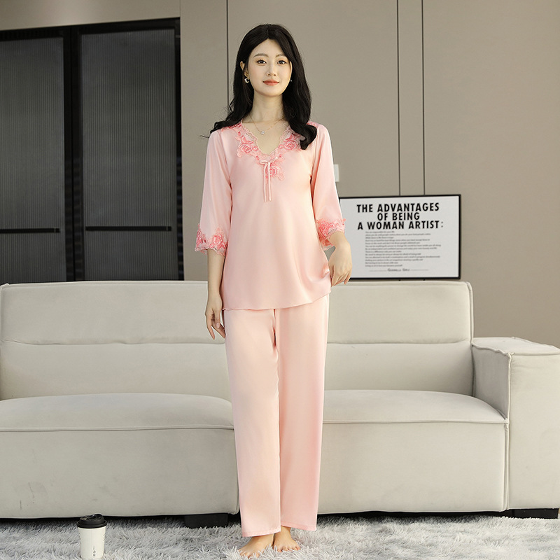 TZW-缎面睡衣女款高级感蕾丝边睡裙冰丝夏季薄款长裤套装可外穿家居服