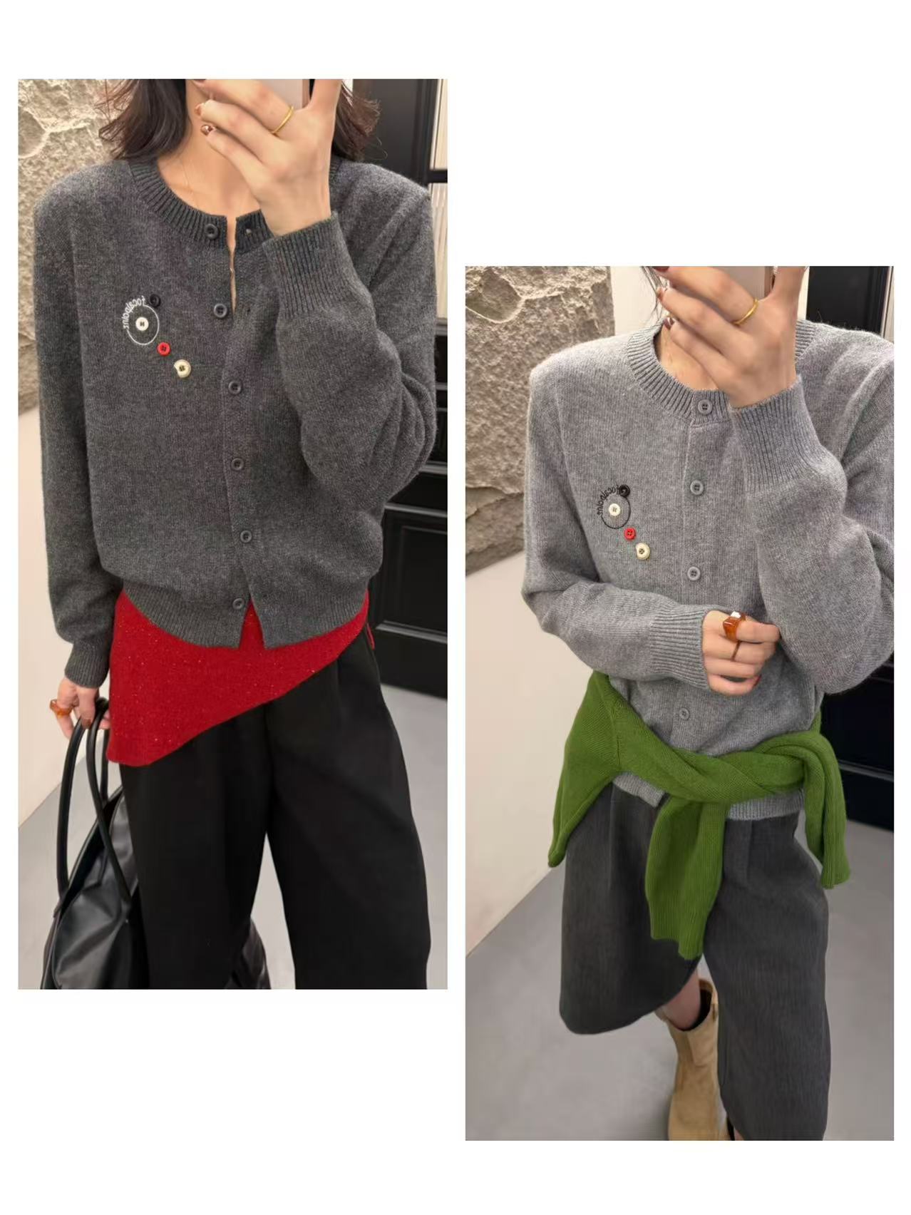 浣熊绒,比普通毛衣软和暖→系列慵懒风刺绣纽扣 设计感宽松开衫毛衣-喜出