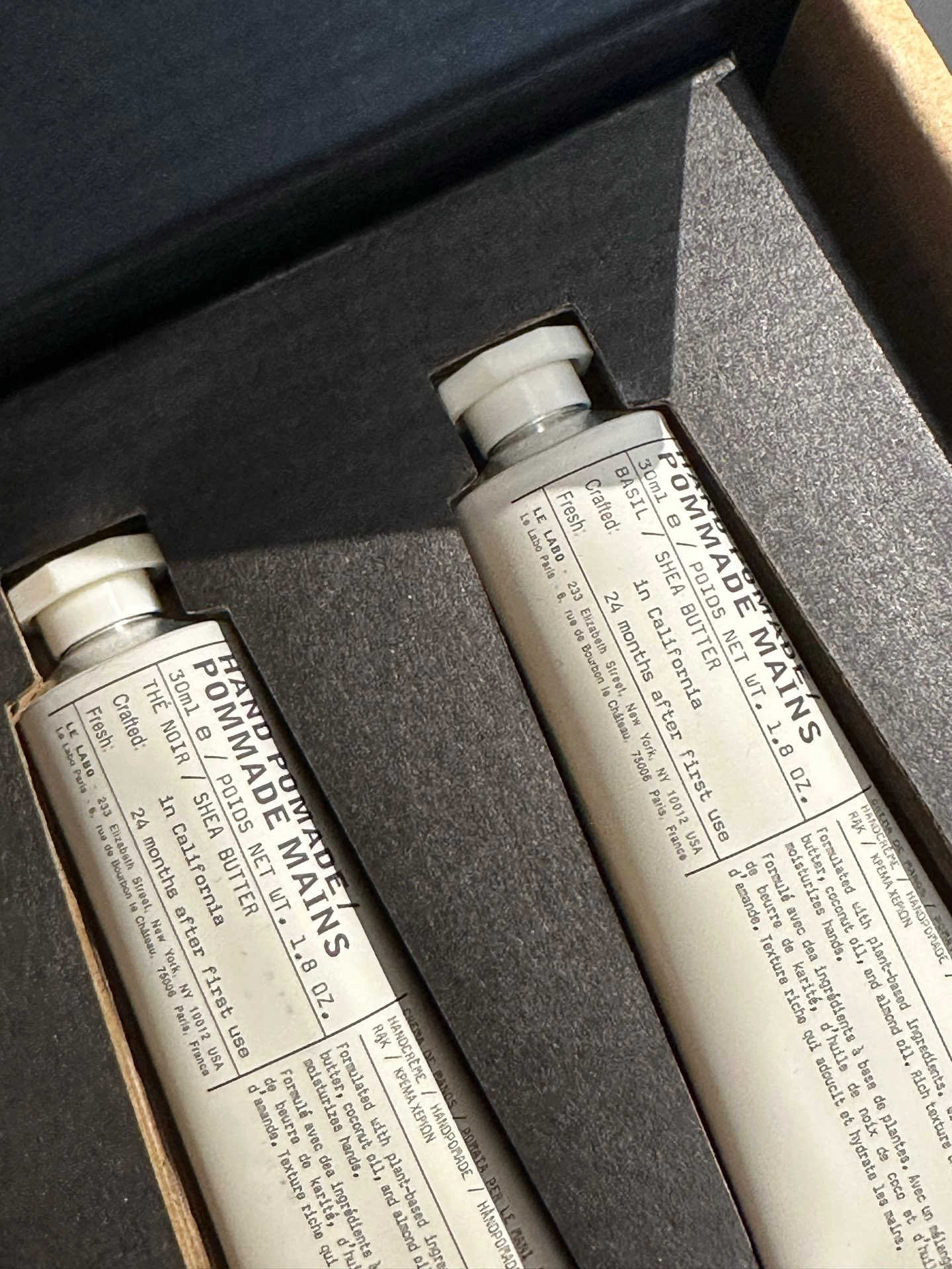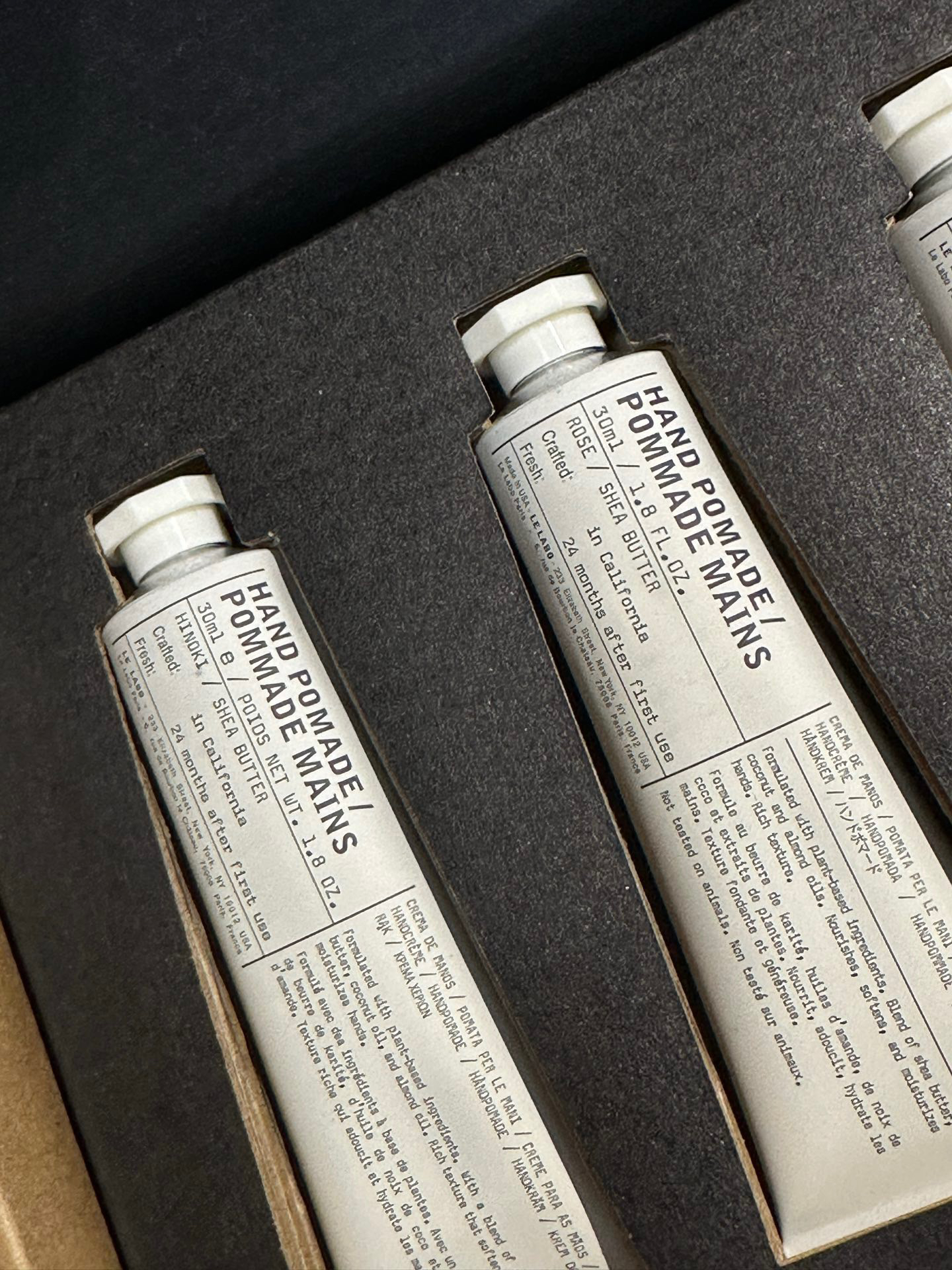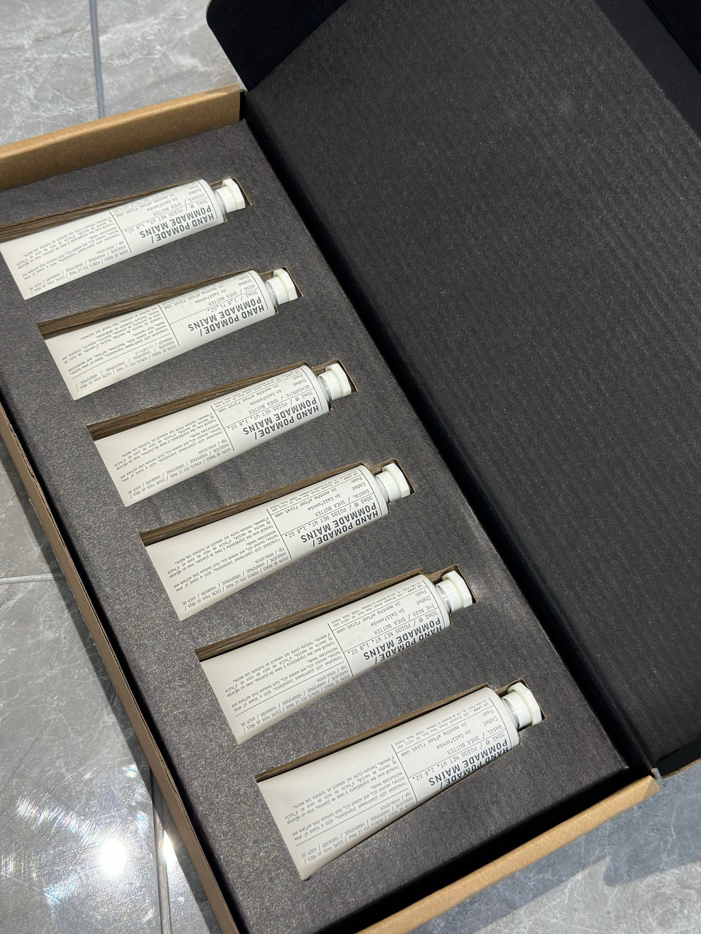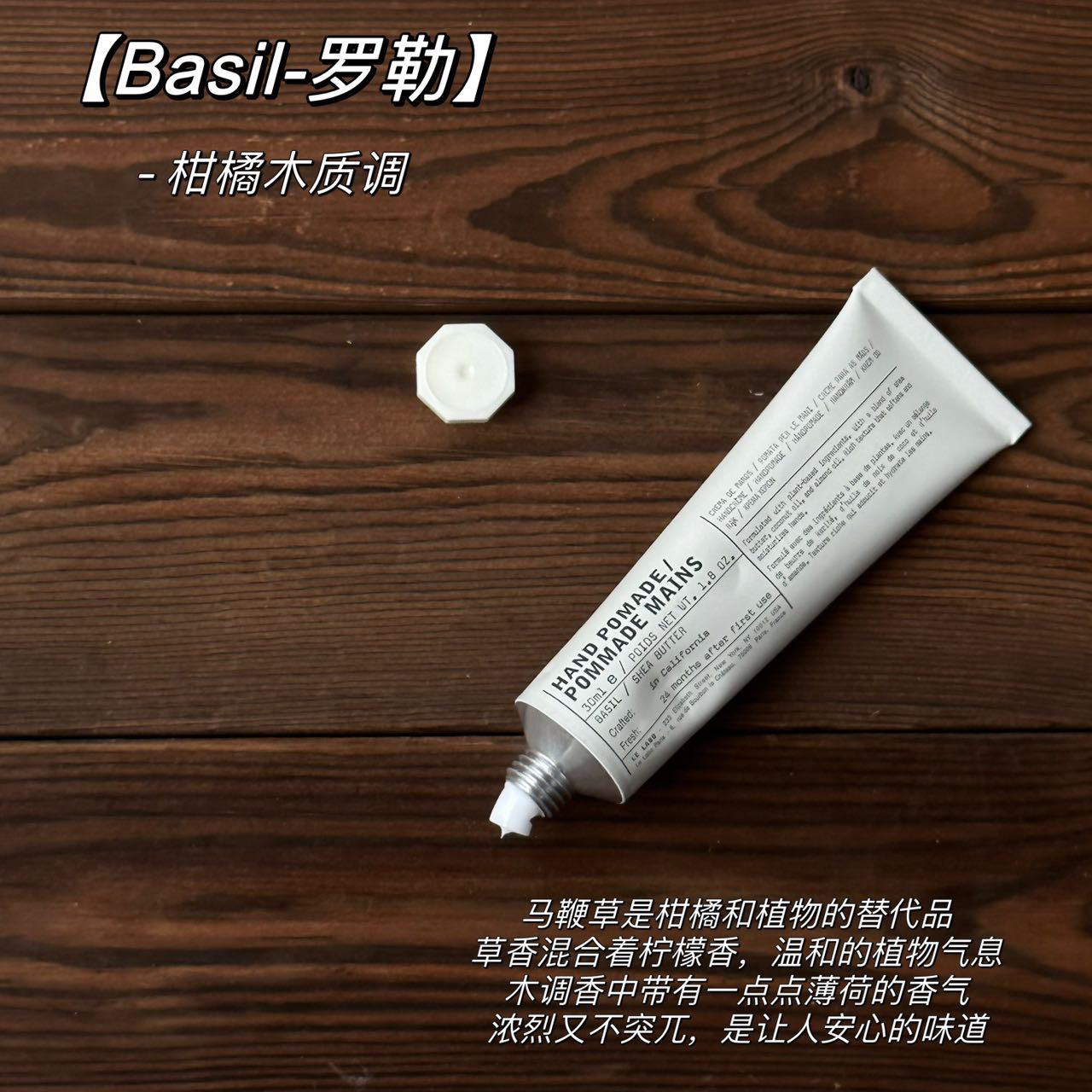 【内含香型】Hinoki-桧木;Basil-罗勒;Santal 33-檀木Rose 31-玫瑰;Thé Noir 29-红茶;Bergamote 22-佛手柑工业风铝管设计搭配环保个性包装6款限定香型,是男生也会爱上的宝藏护手霜