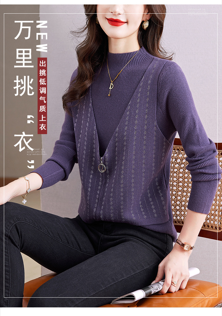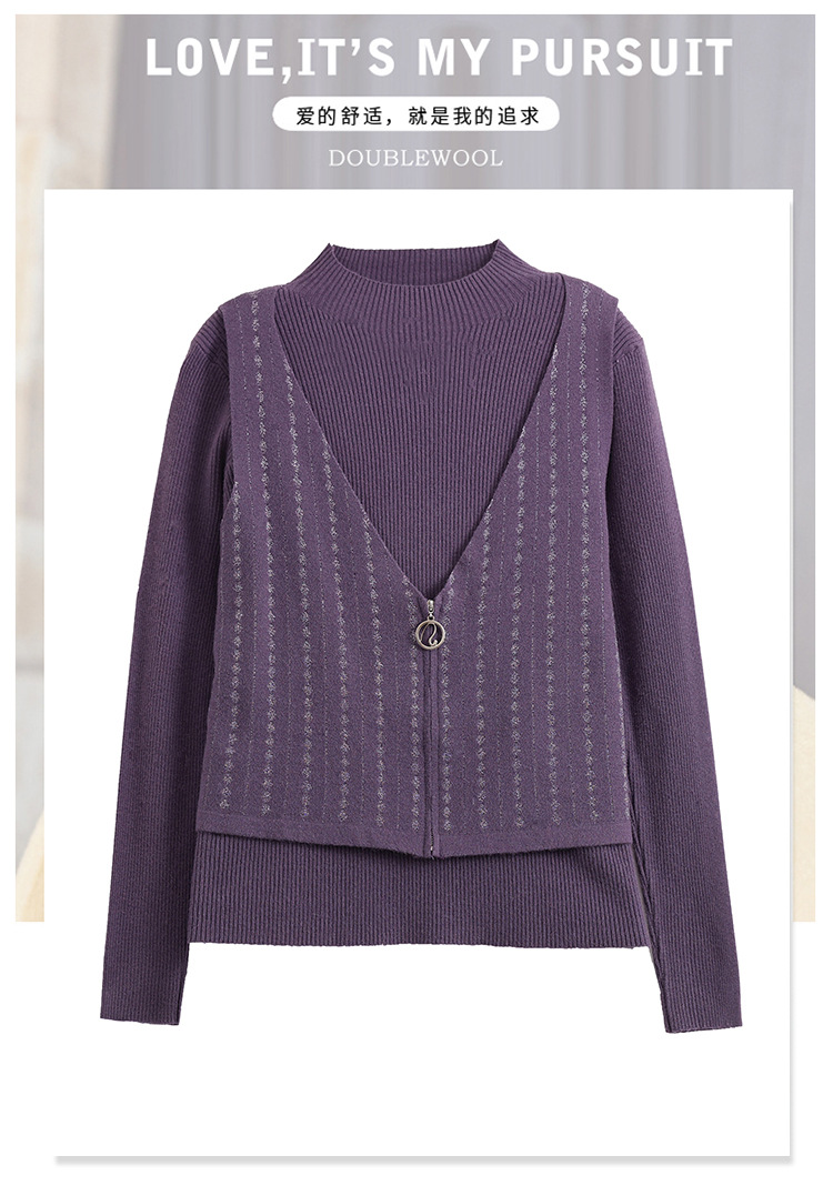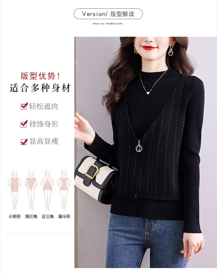 KQL E231N3289小众设计轻奢减龄假两件显瘦上衣
