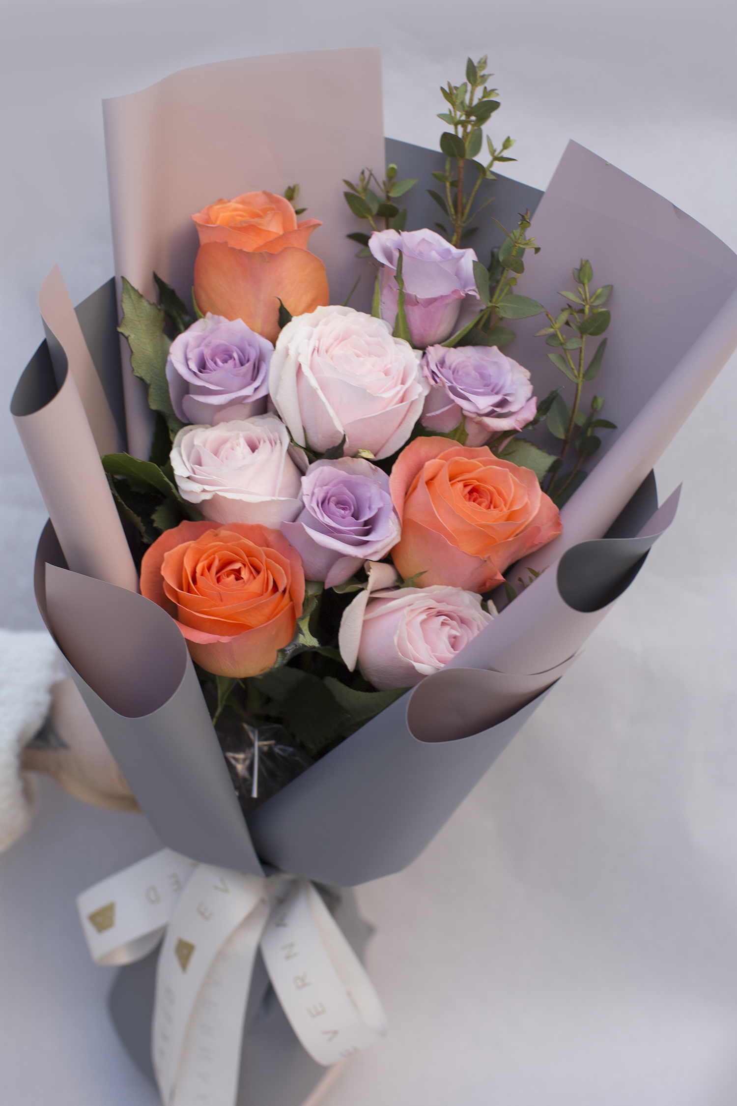 粉雪山(粉玫瑰)、海洋之歌(紫玫瑰)、香妃玫瑰、尤加利叶