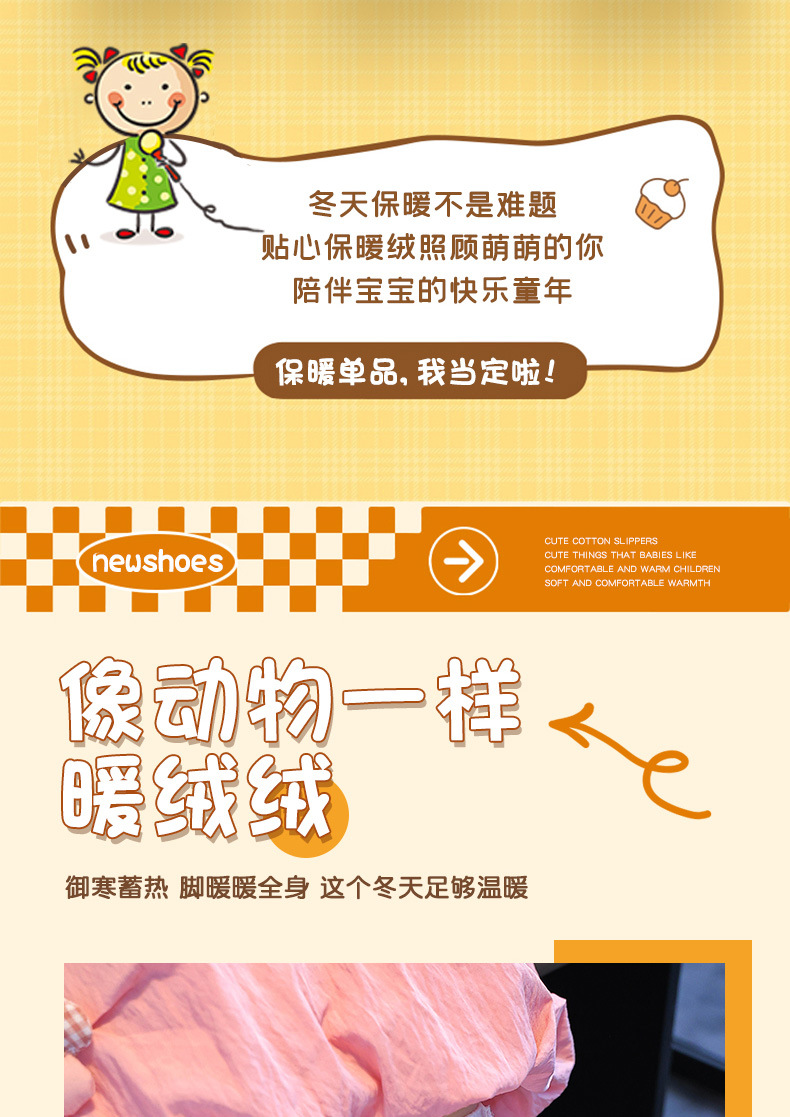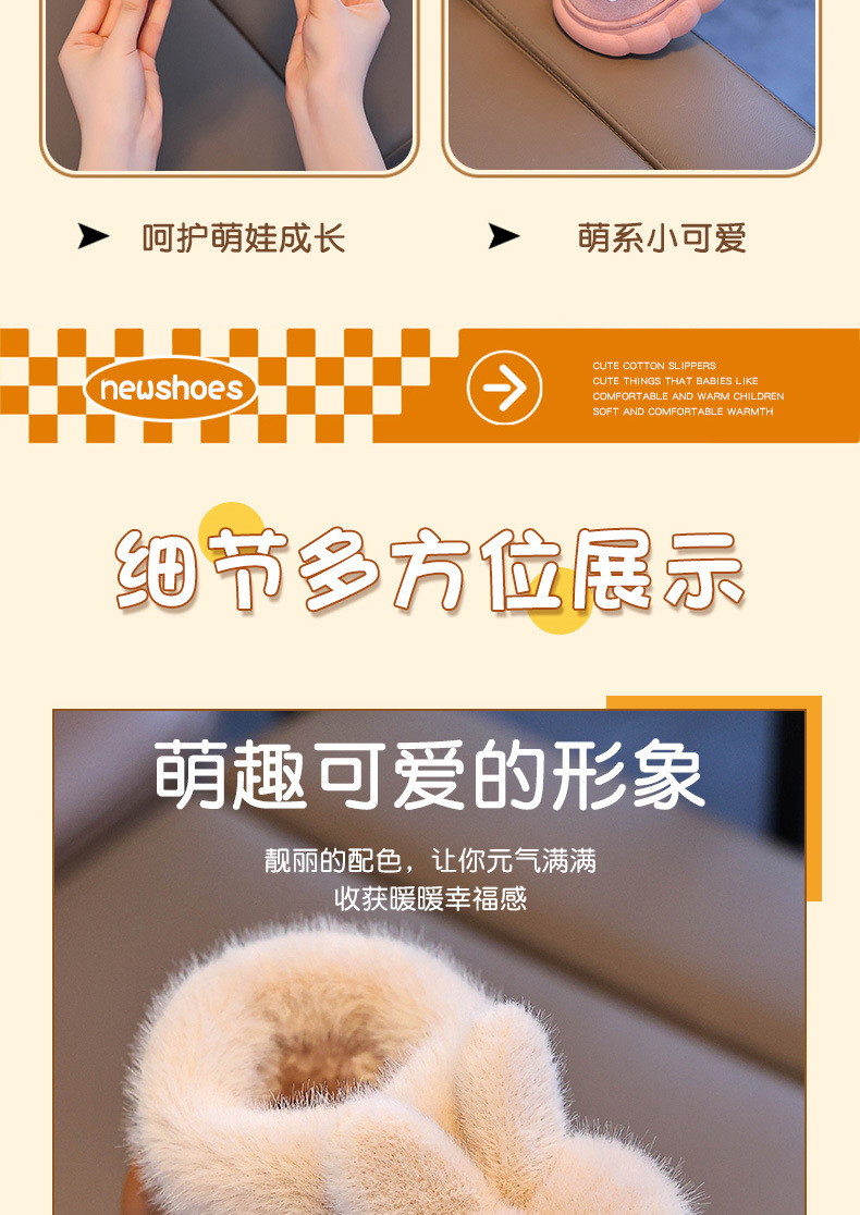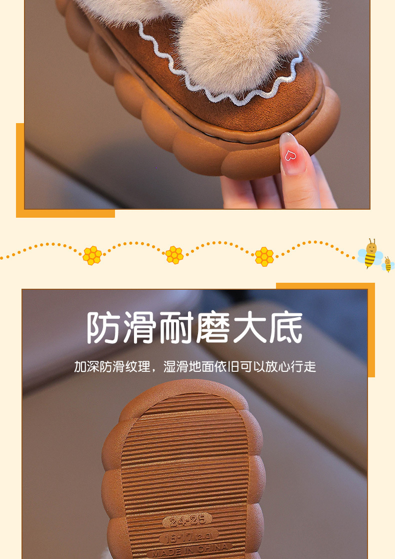 【冬日居家好物单品,时刻温暖舒适~】儿童棉拖鞋冬季 男童女童室内家居防滑保暖包跟 毛毛绒小孩宝宝棉鞋。hb