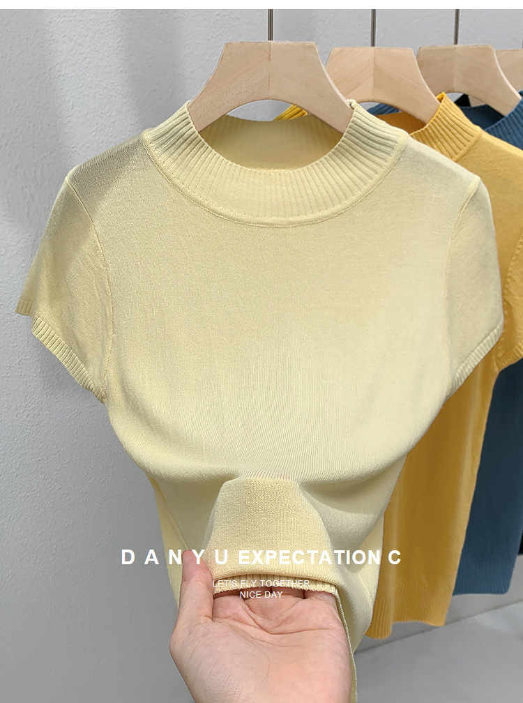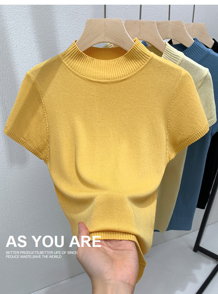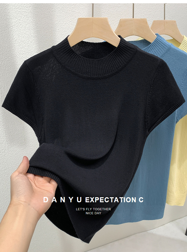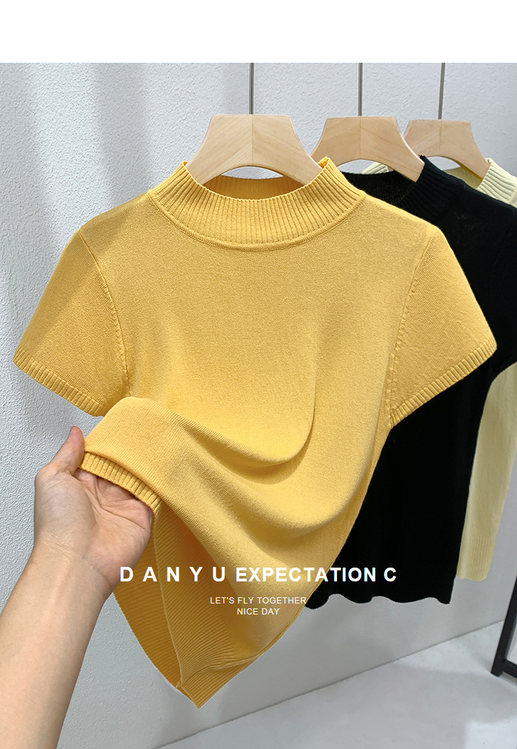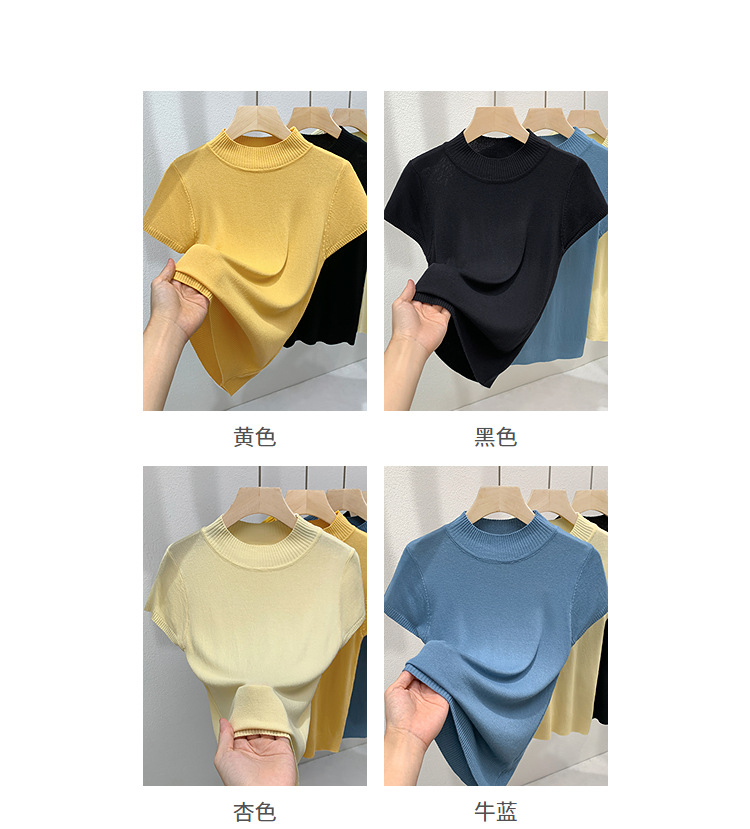 I5Q2601-WJX针织打底衫女短袖2025新款欧货女装气质高领套头毛衣显瘦内搭上衣