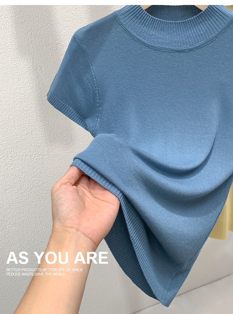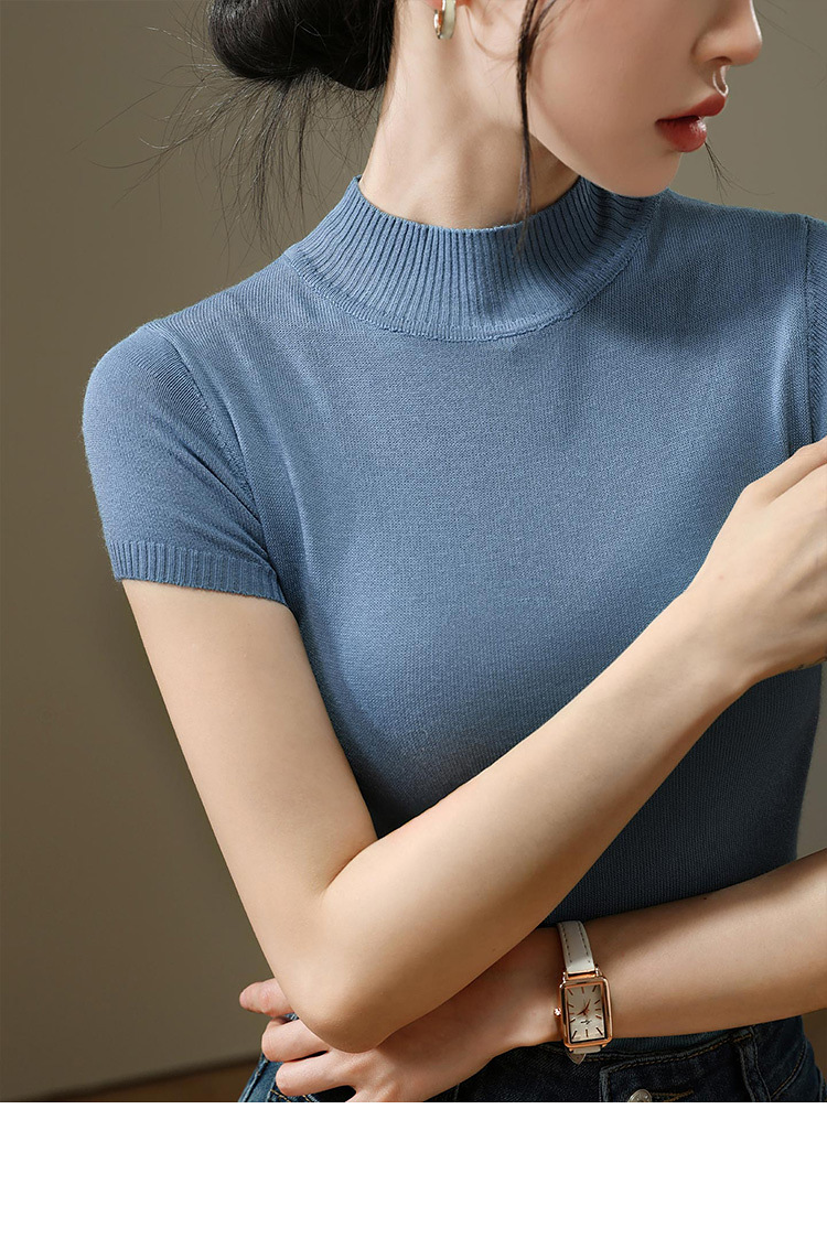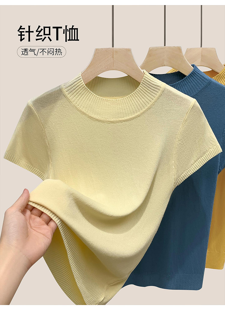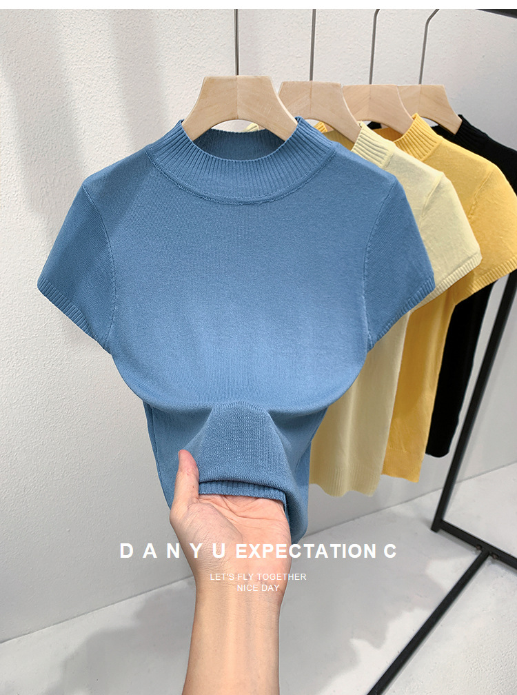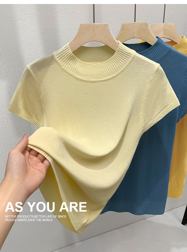 I5Q2601-WJX针织打底衫女短袖2025新款欧货女装气质高领套头毛衣显瘦内搭上衣