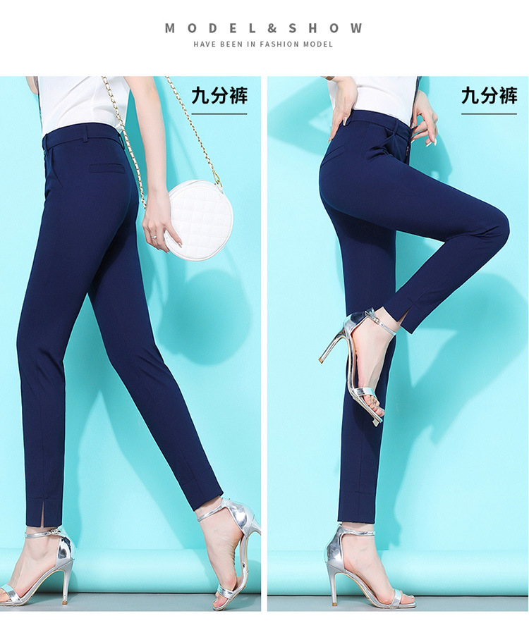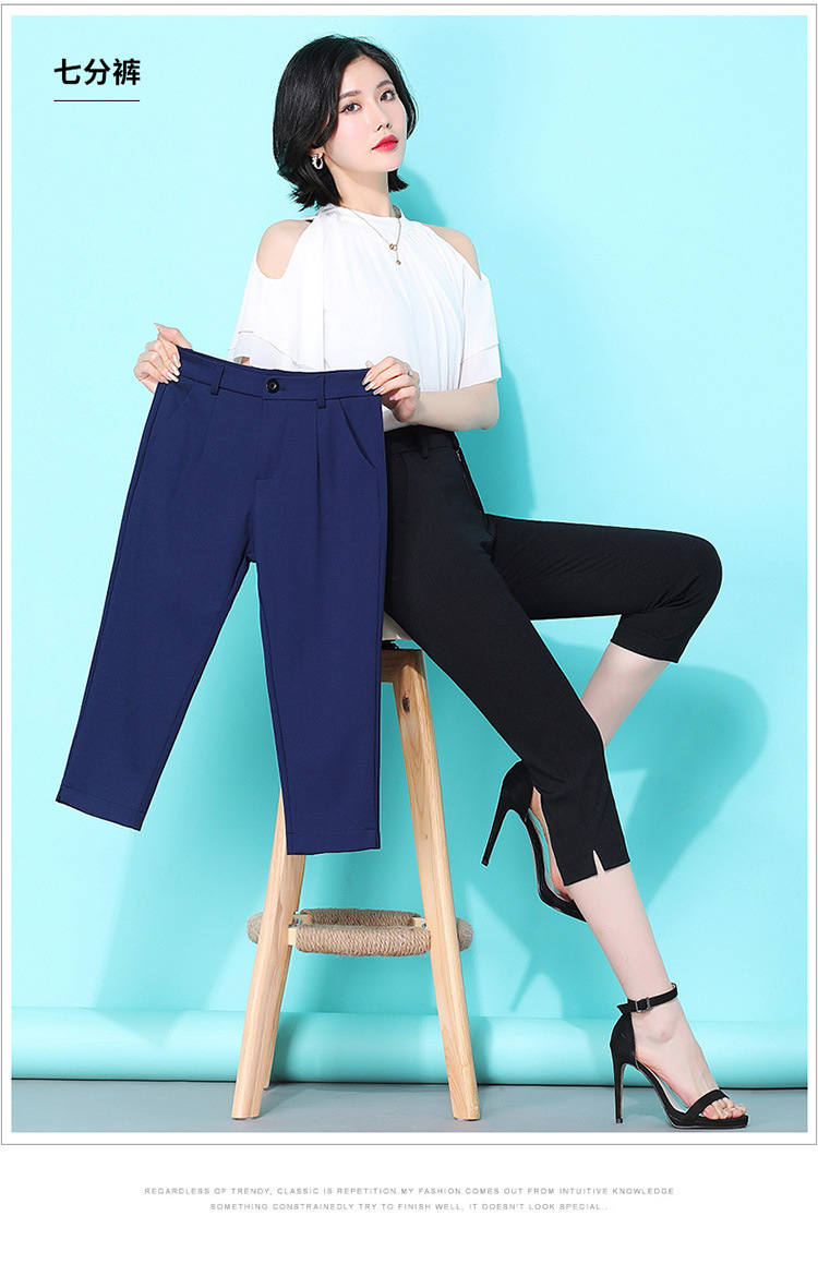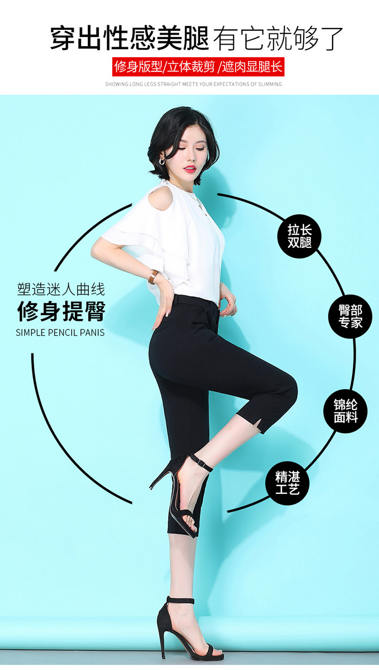 AHM-xas9995新品薄款九分开叉直筒时尚小个子修身小脚裤