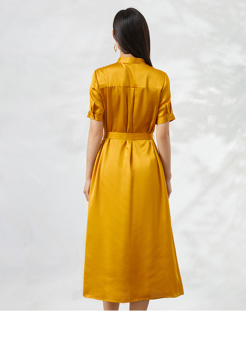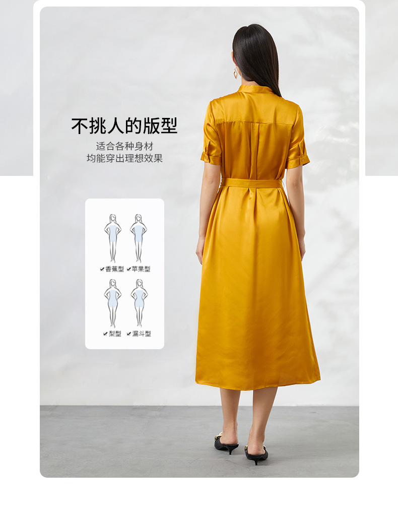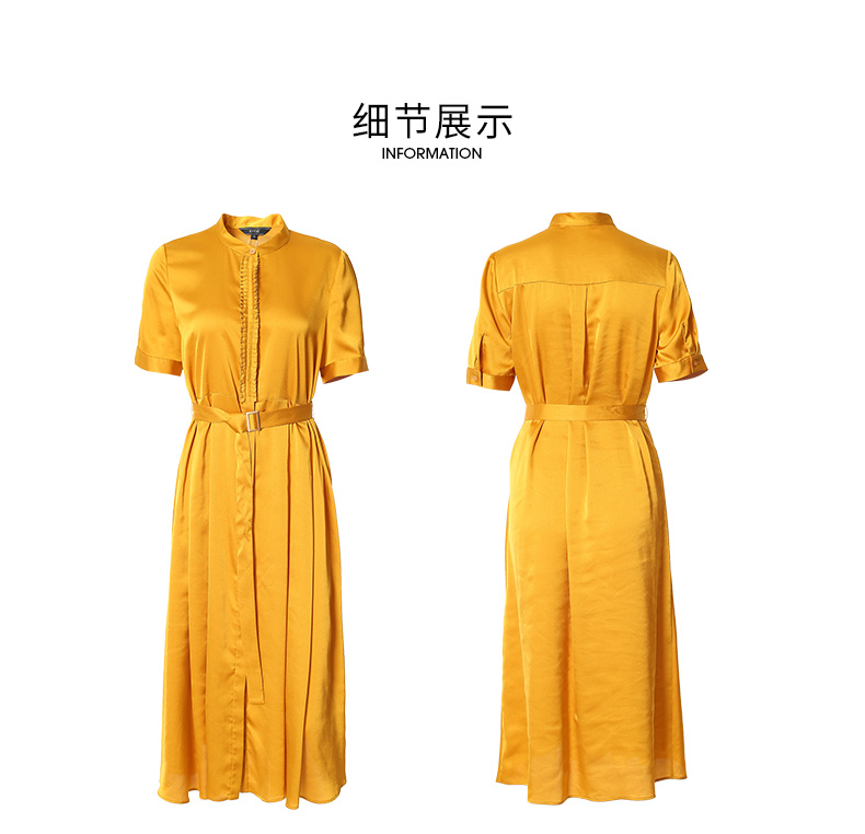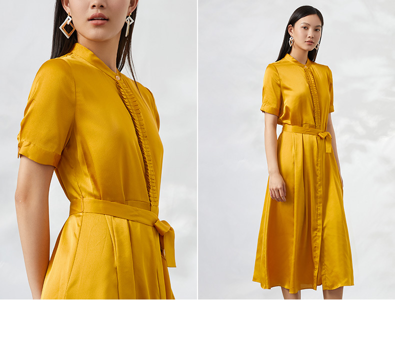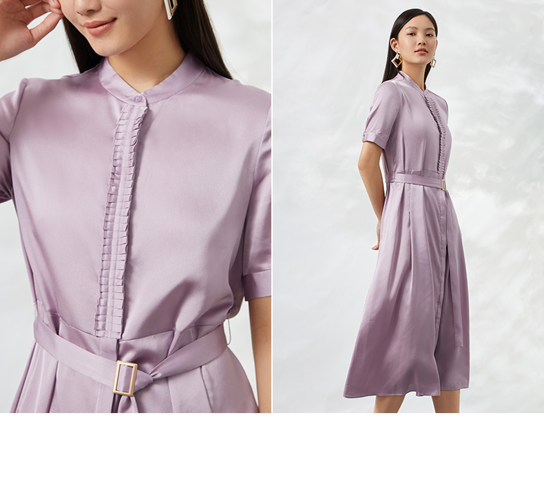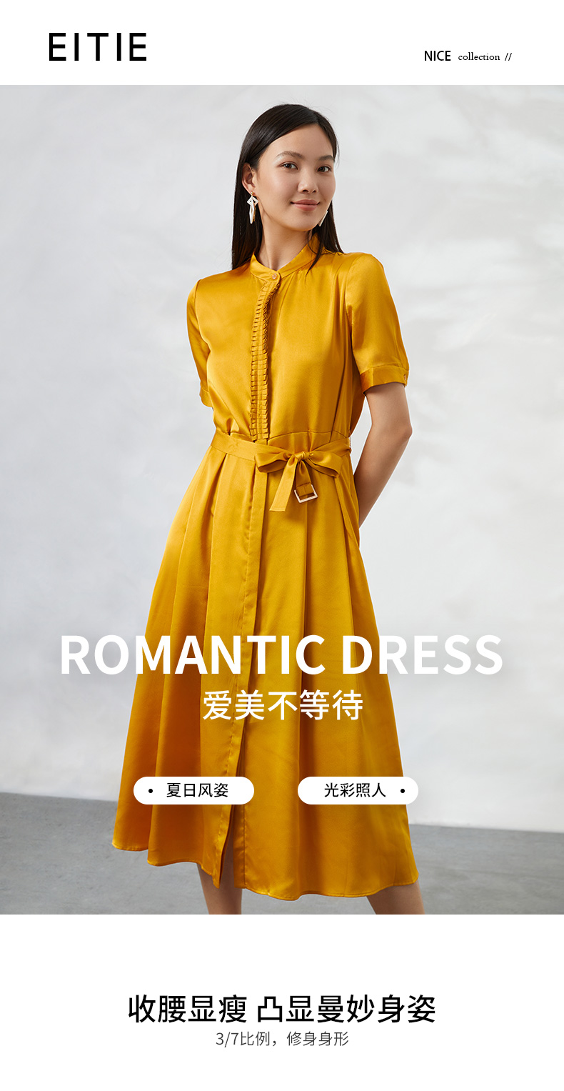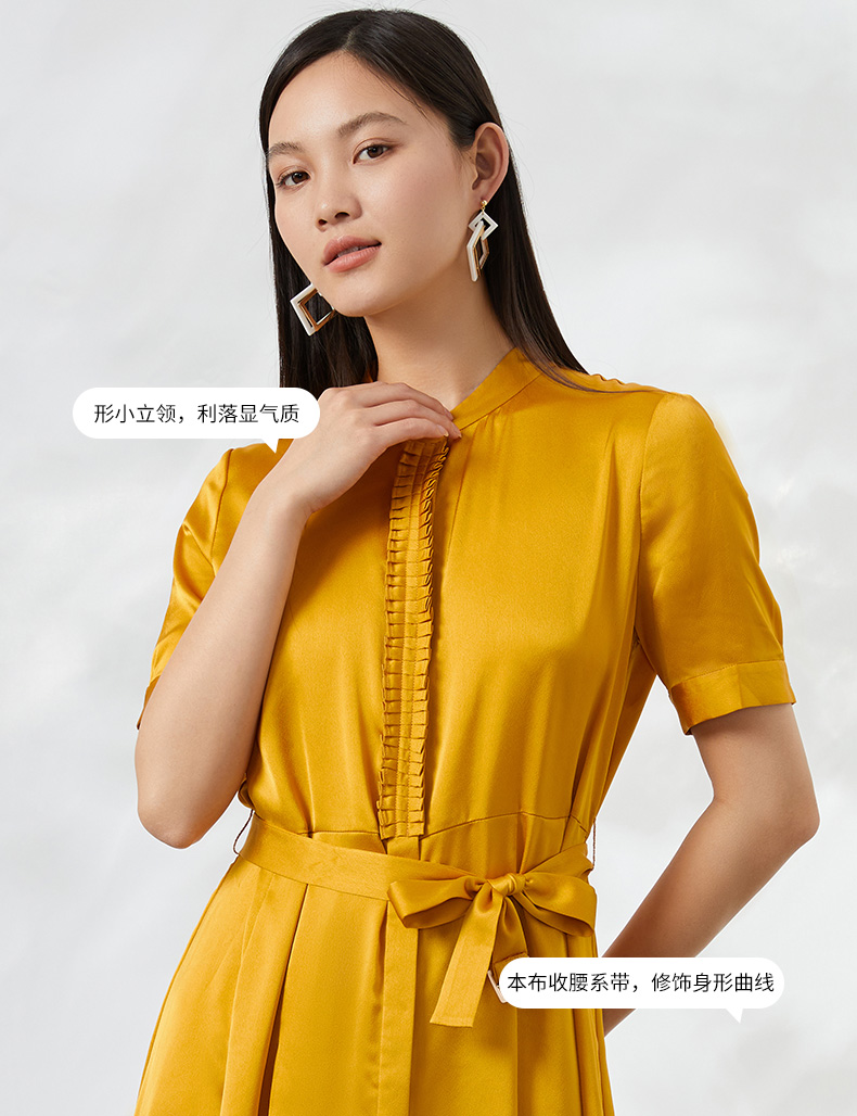 EITIE爱特爱通勤立领收腰显瘦百褶裙摆中长裙连衣裙6607326