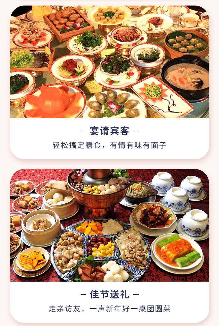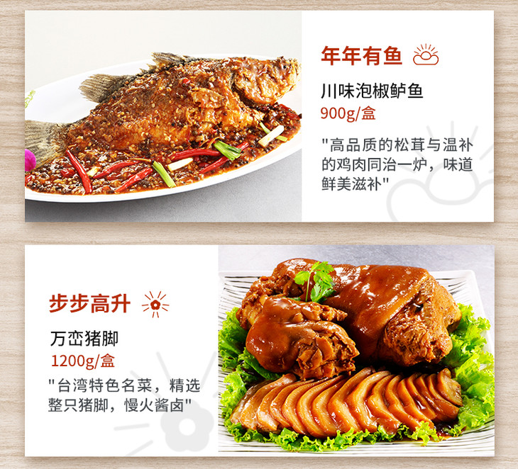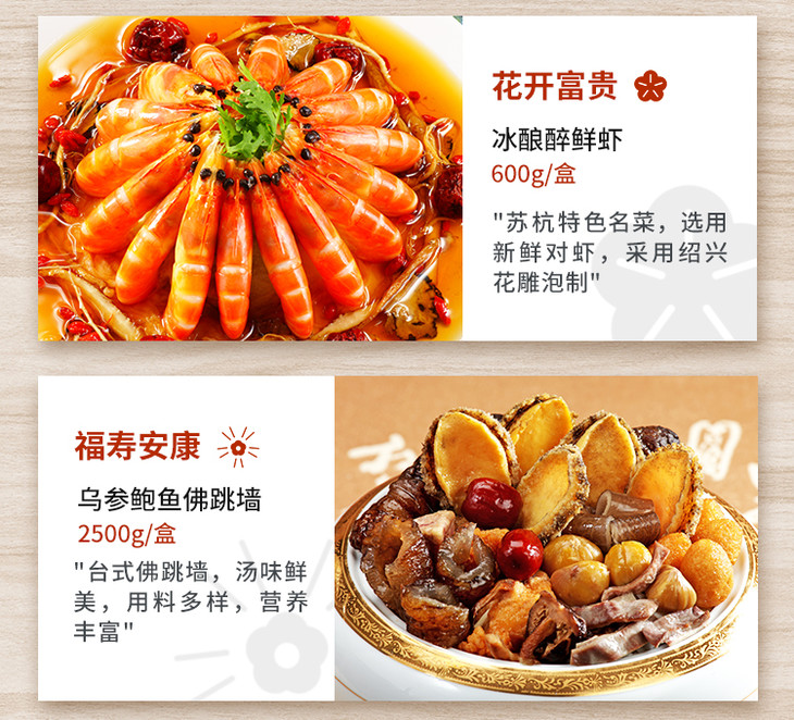 富贵吉祥年菜套餐组(松茸炖鸡、川香狮子头、川味泡椒鲈鱼、万峦猪脚、冰酿醉鲜虾、乌参鲍鱼佛跳墙、匈牙利皇家肋排、香芋紫米粥)