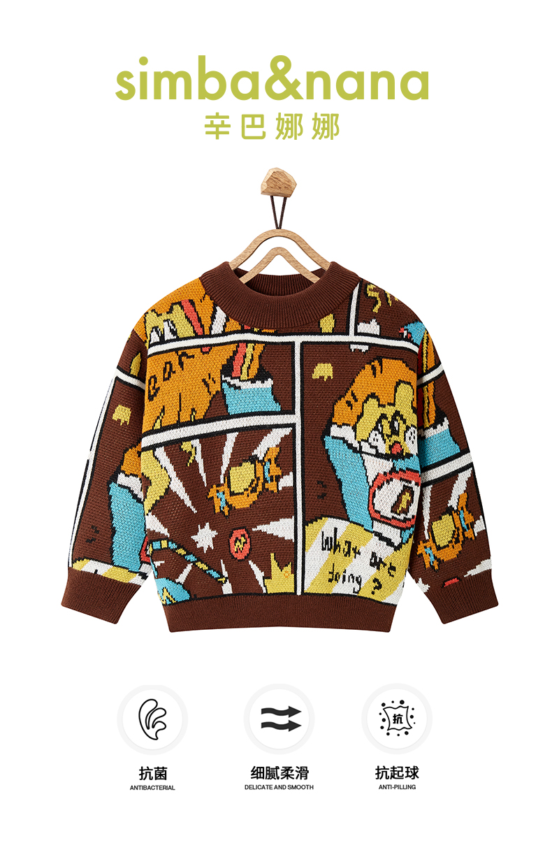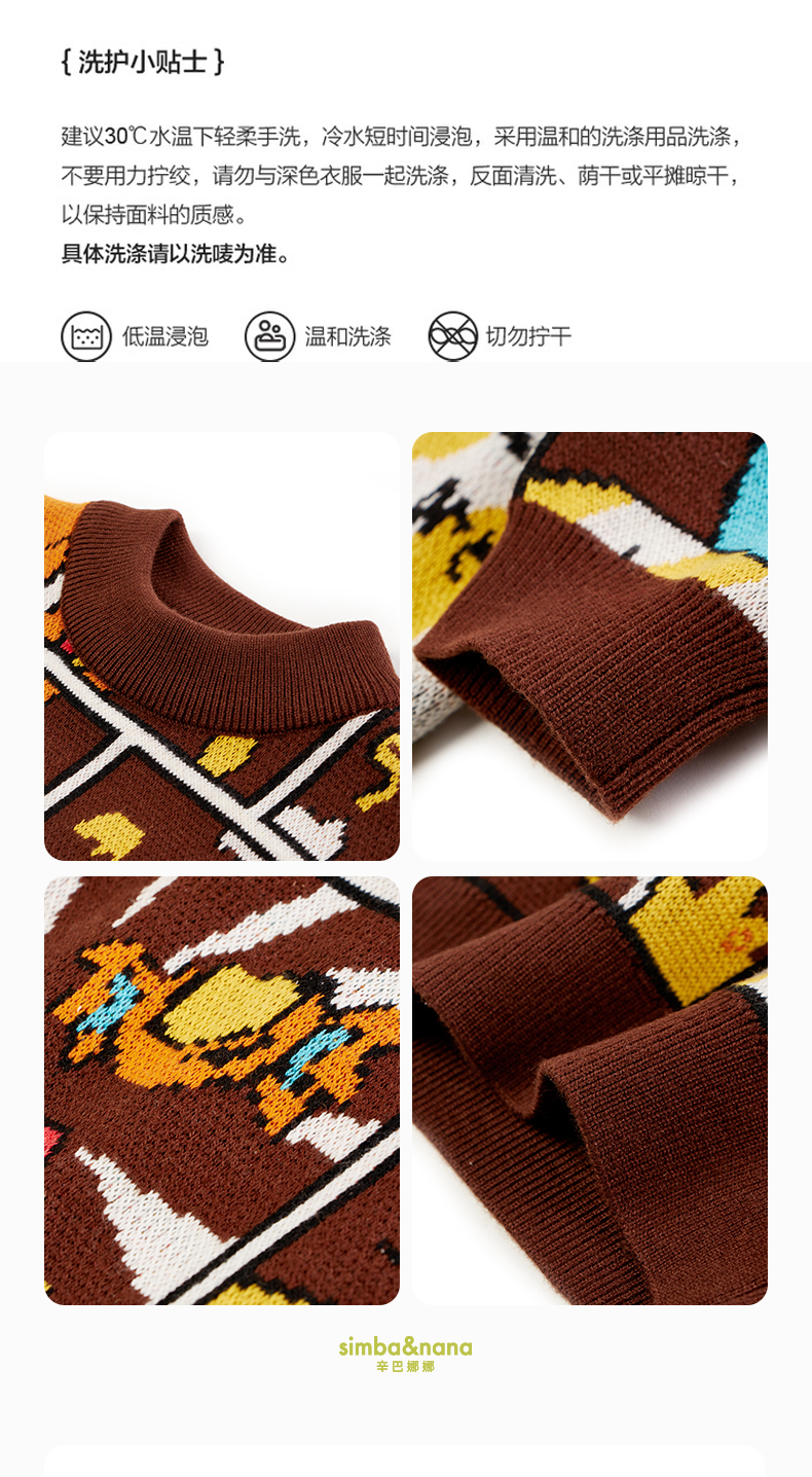 【辛巴娜娜】simbanana男童毛衣套头冬装宝宝满印男童打底针织衫