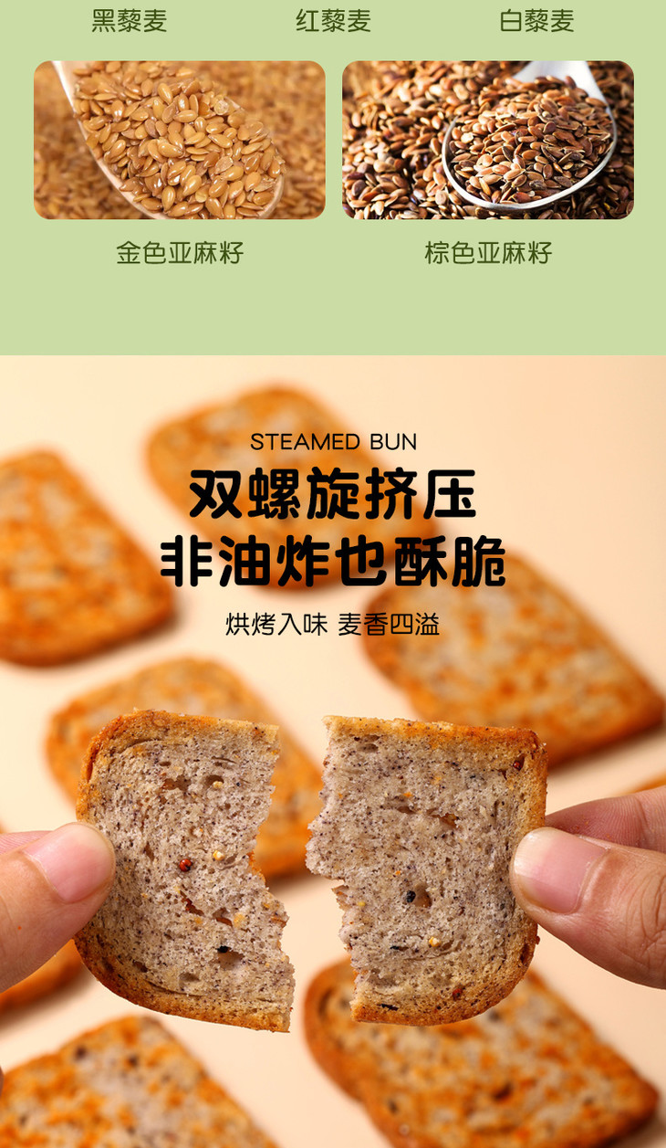 漠漠有礼粗粮烤馍片,一家人都可以吃的粗粮馍片 添加三色藜麦(黑藜麦、红藜麦、白藜麦)、双色亚麻籽≥19% 越嚼越香!!