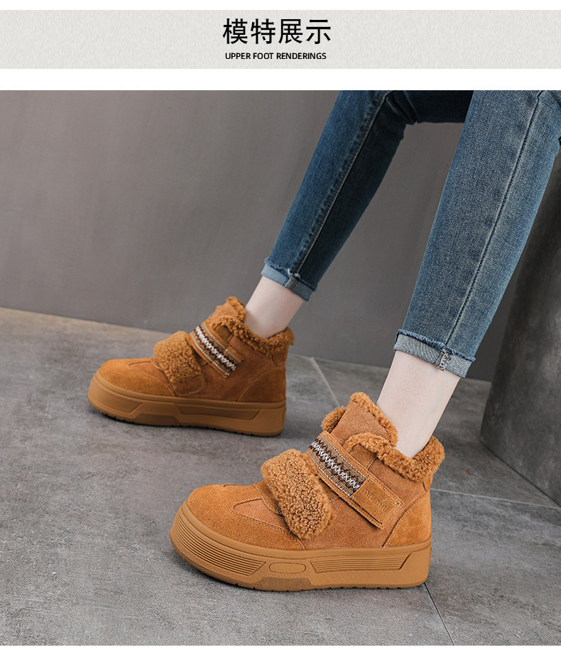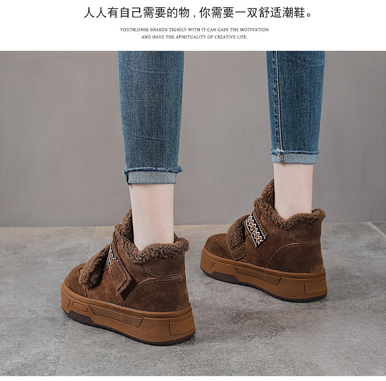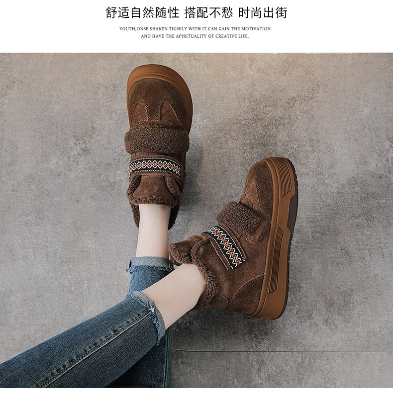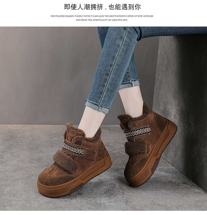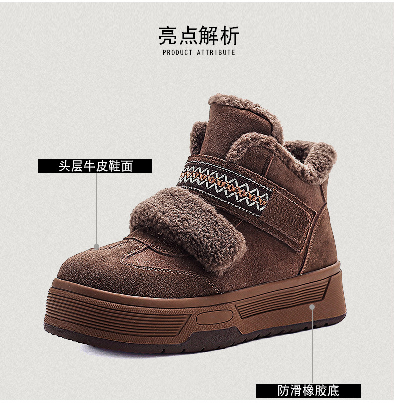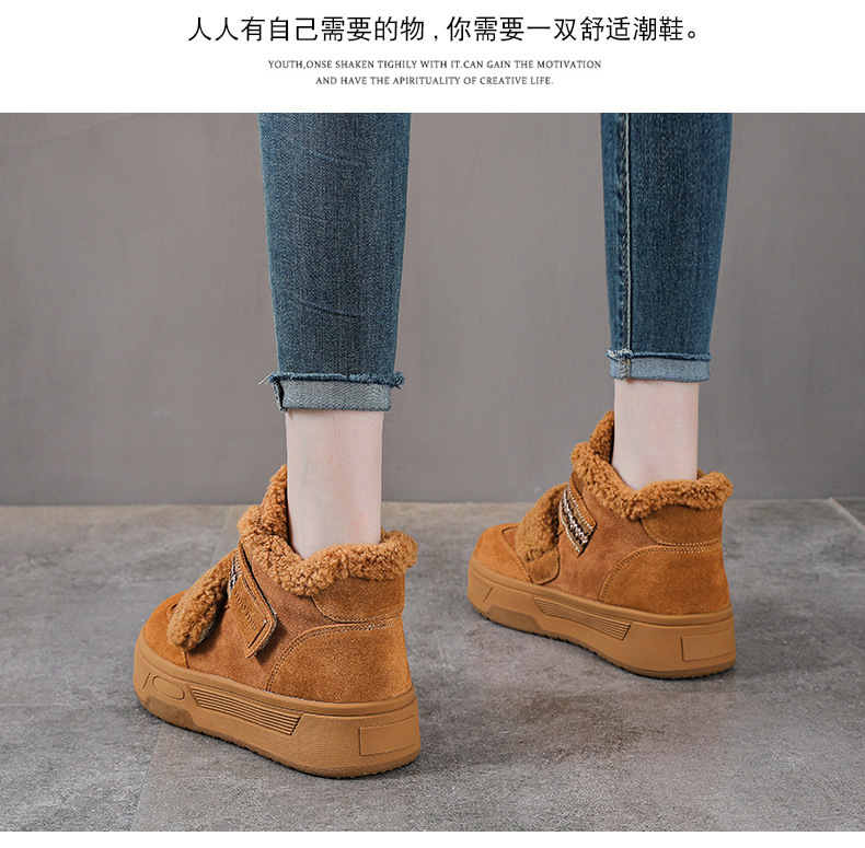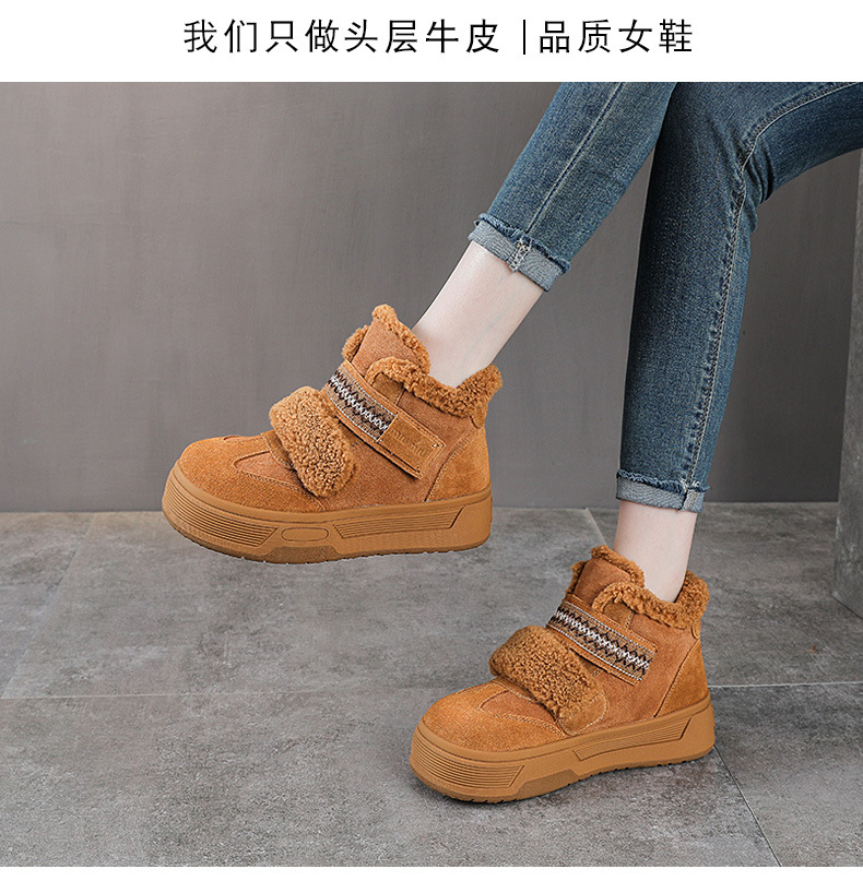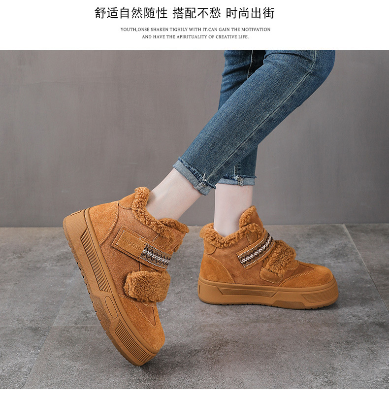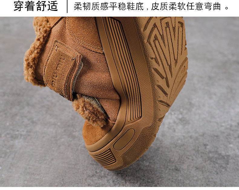 YR 2967魔术贴真皮加厚面包板鞋磨砂牛皮保暖短靴雪地靴