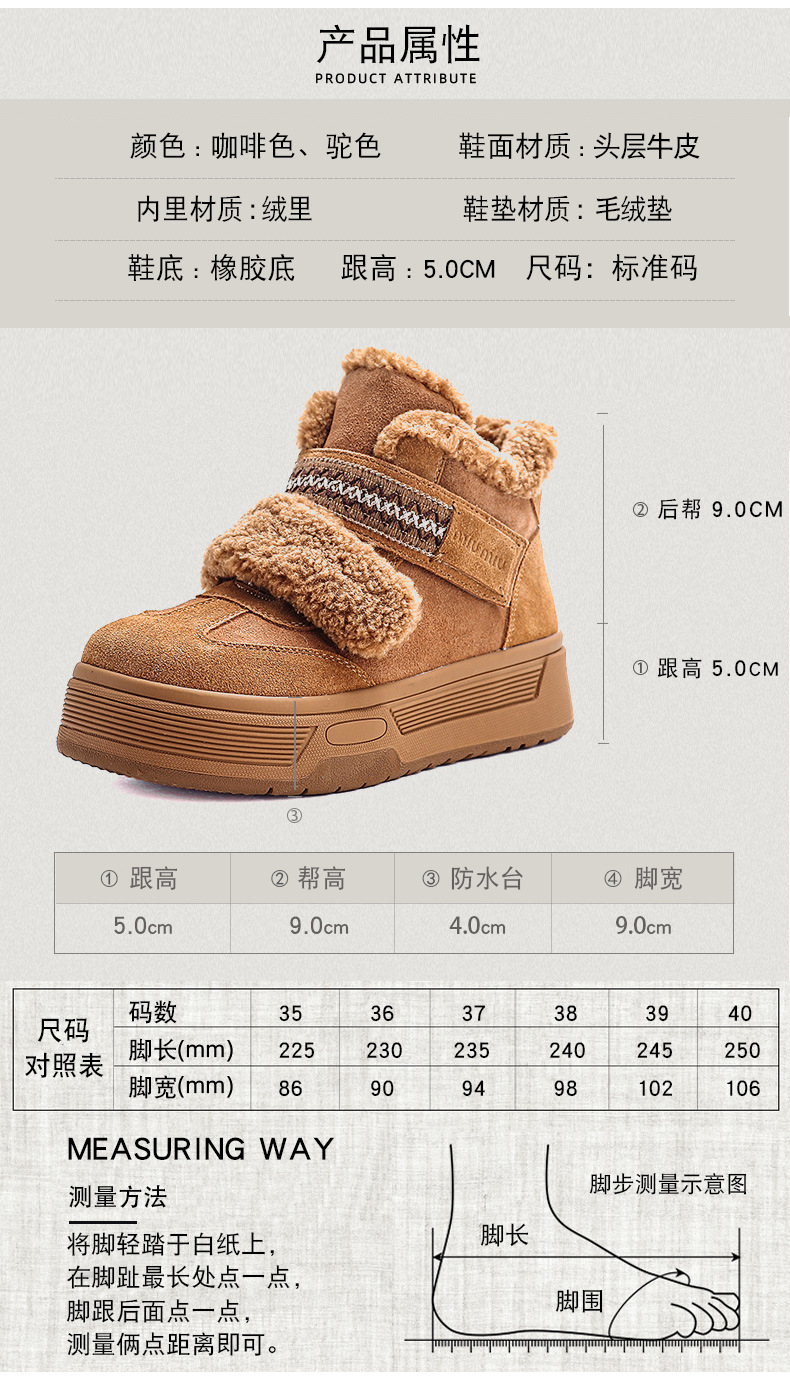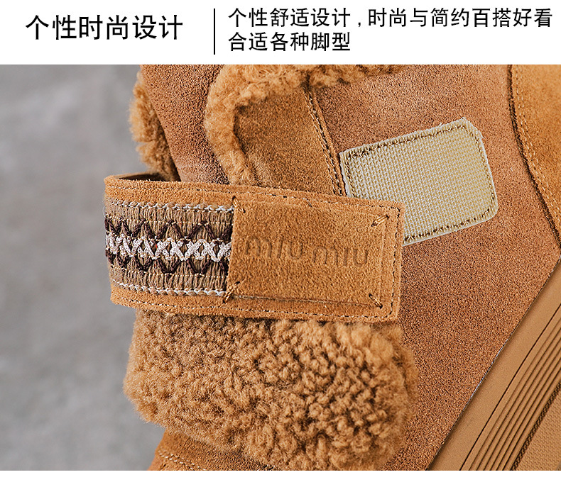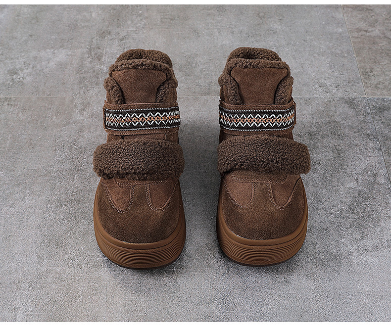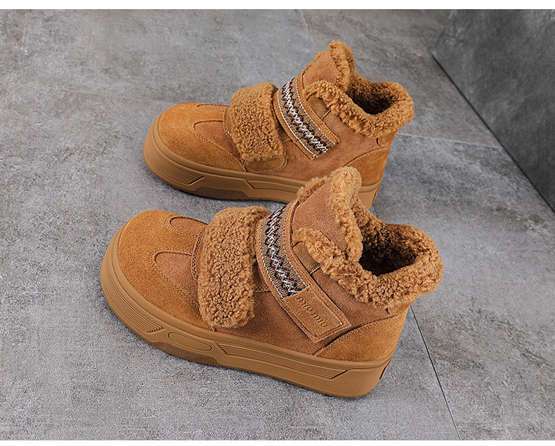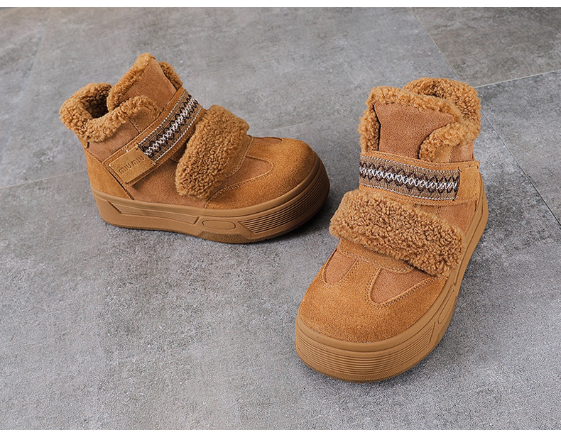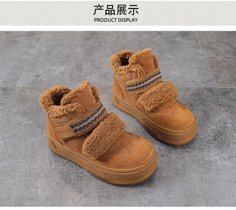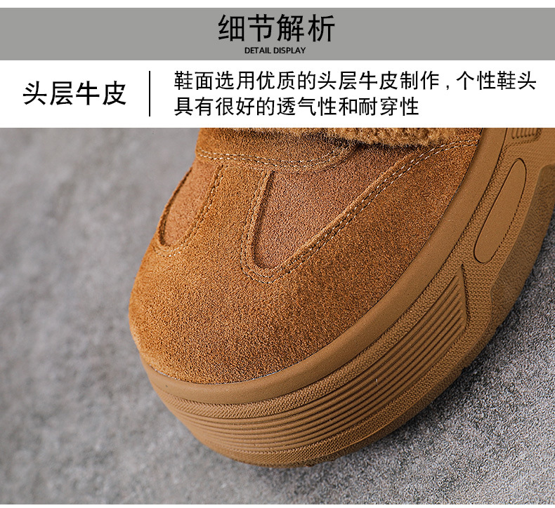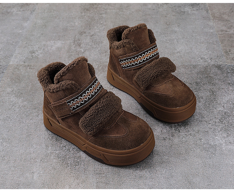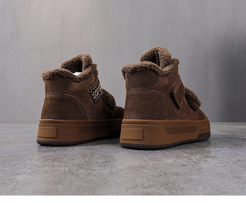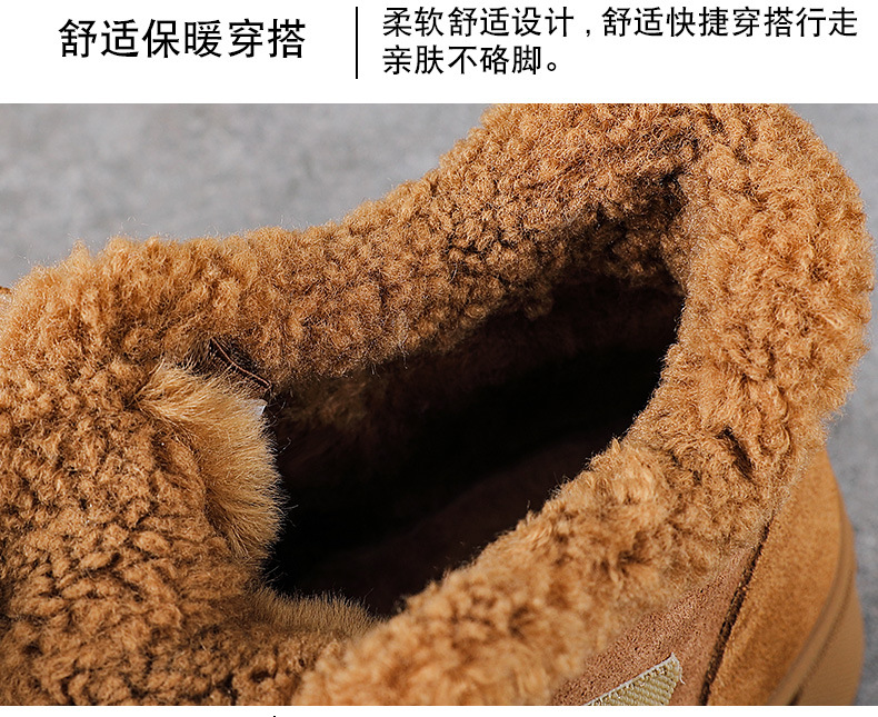 YR 2967魔术贴真皮加厚面包板鞋磨砂牛皮保暖短靴雪地靴