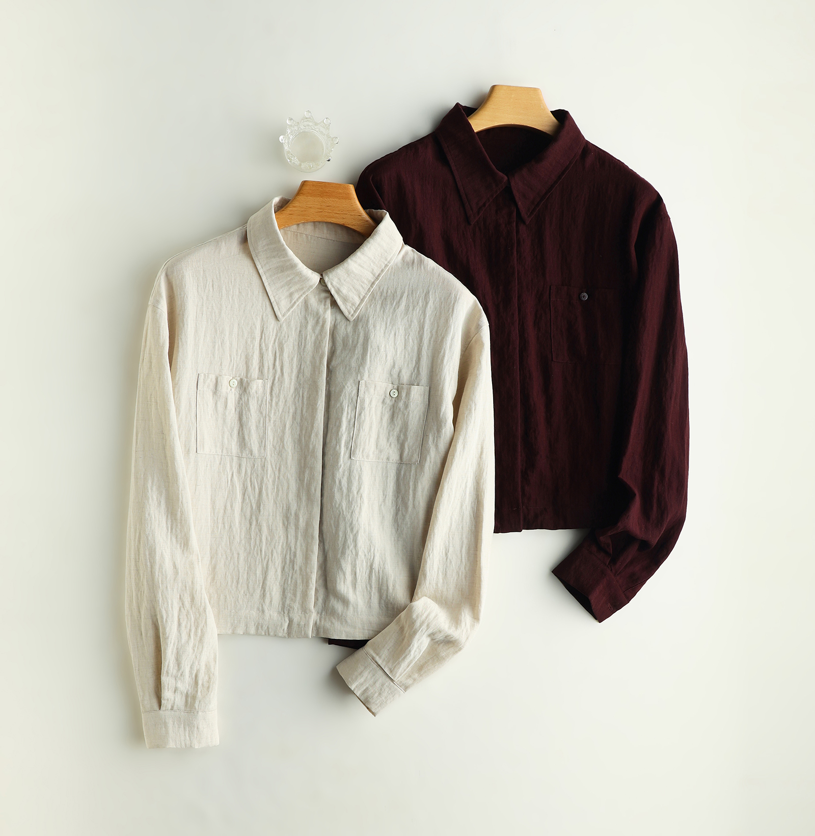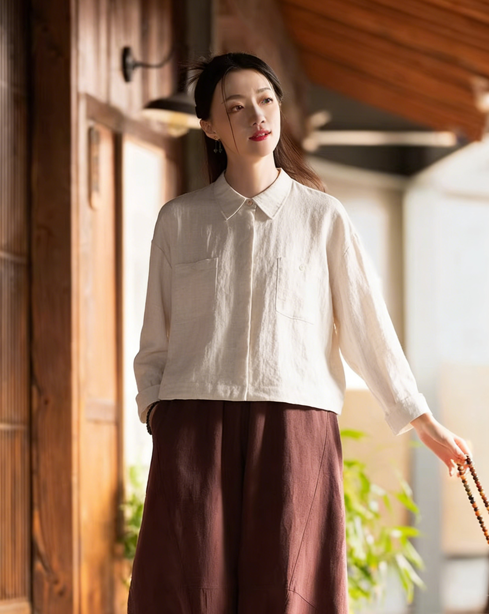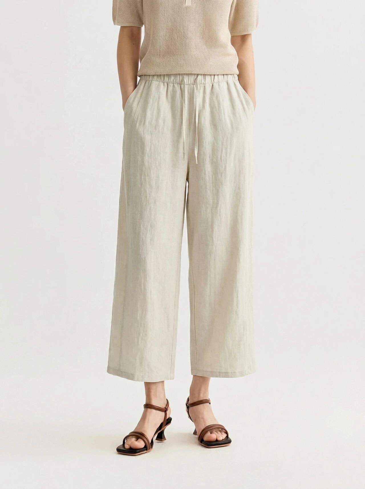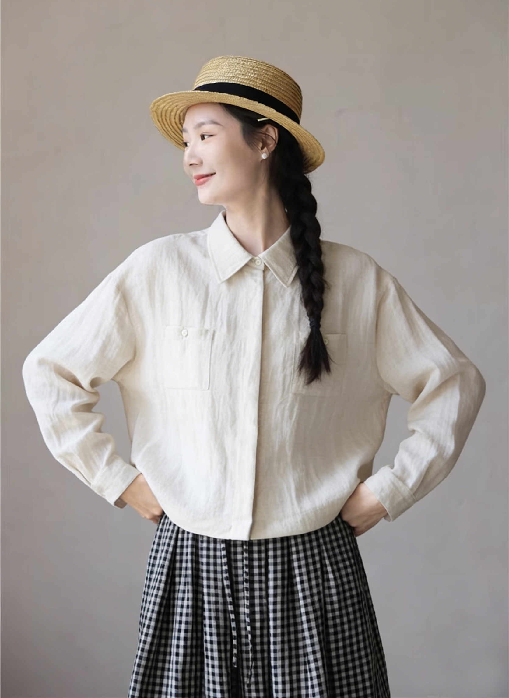 下单3-7天发货!Mylyis 雨露麻休闲短款衬衫/九分裤 短款衬衫翻领利落 双口袋点缀细节 搭配松紧腰九分裤 随性垂坠 适配日常通勤