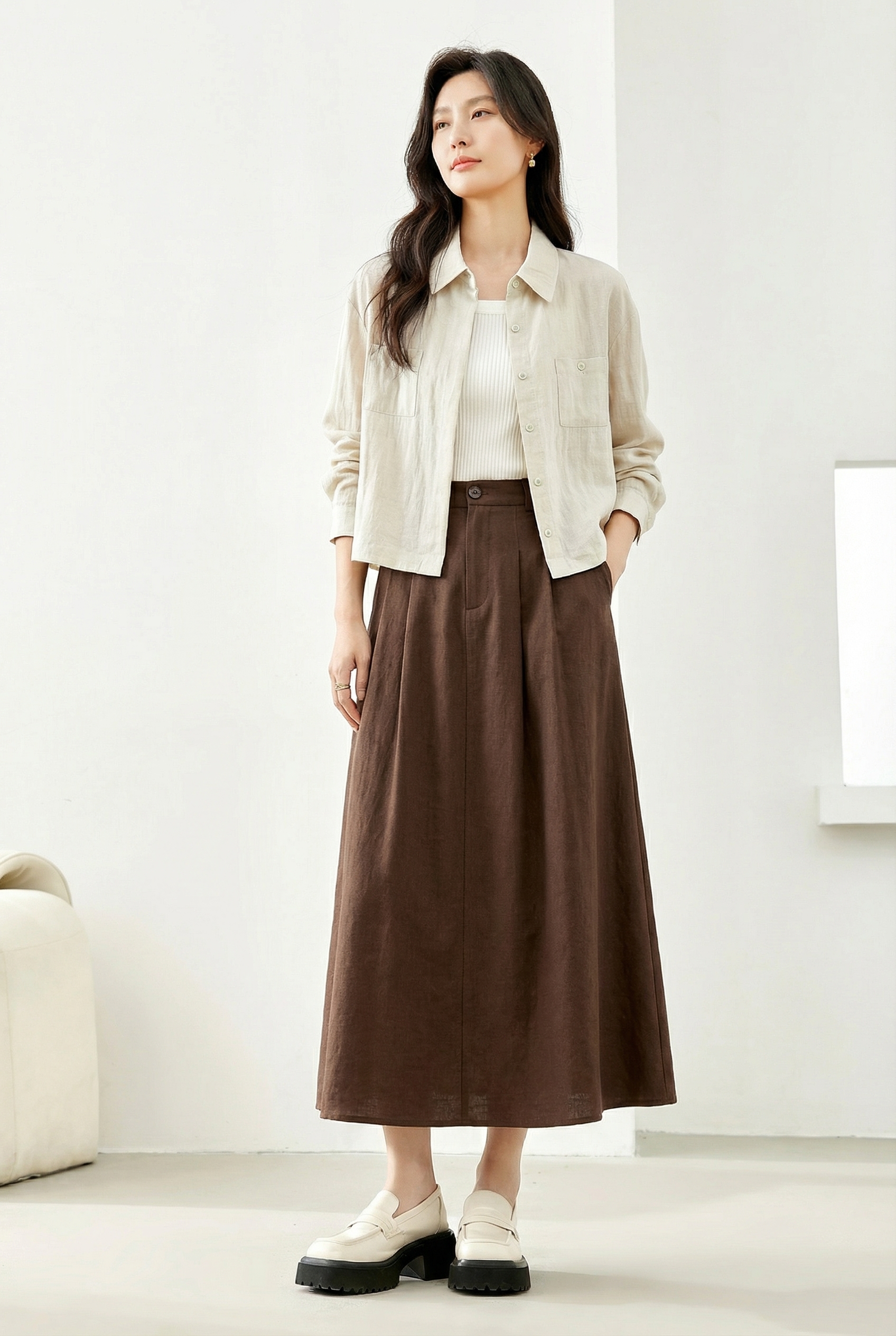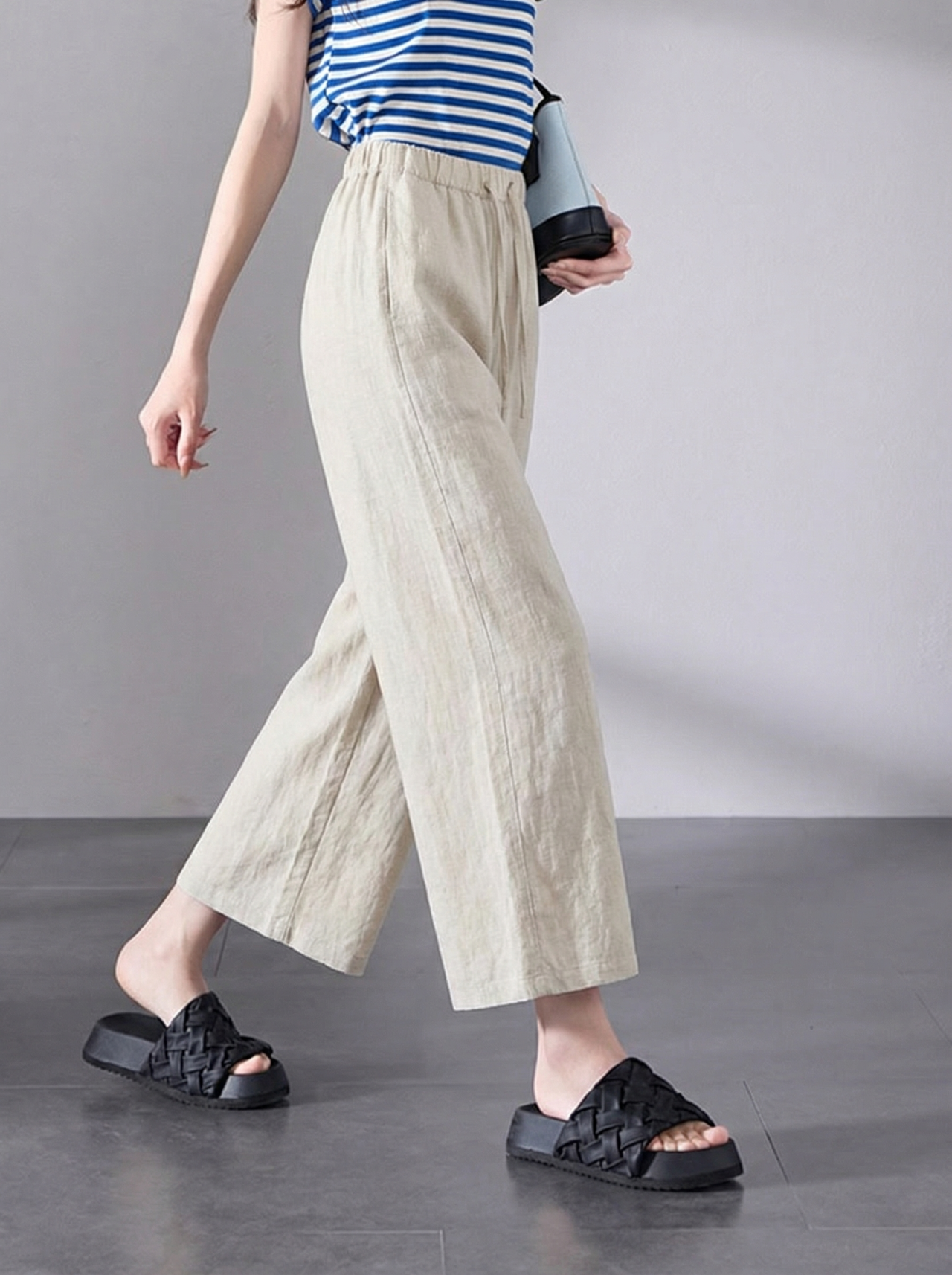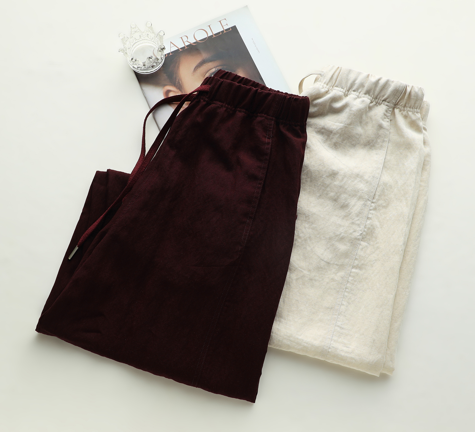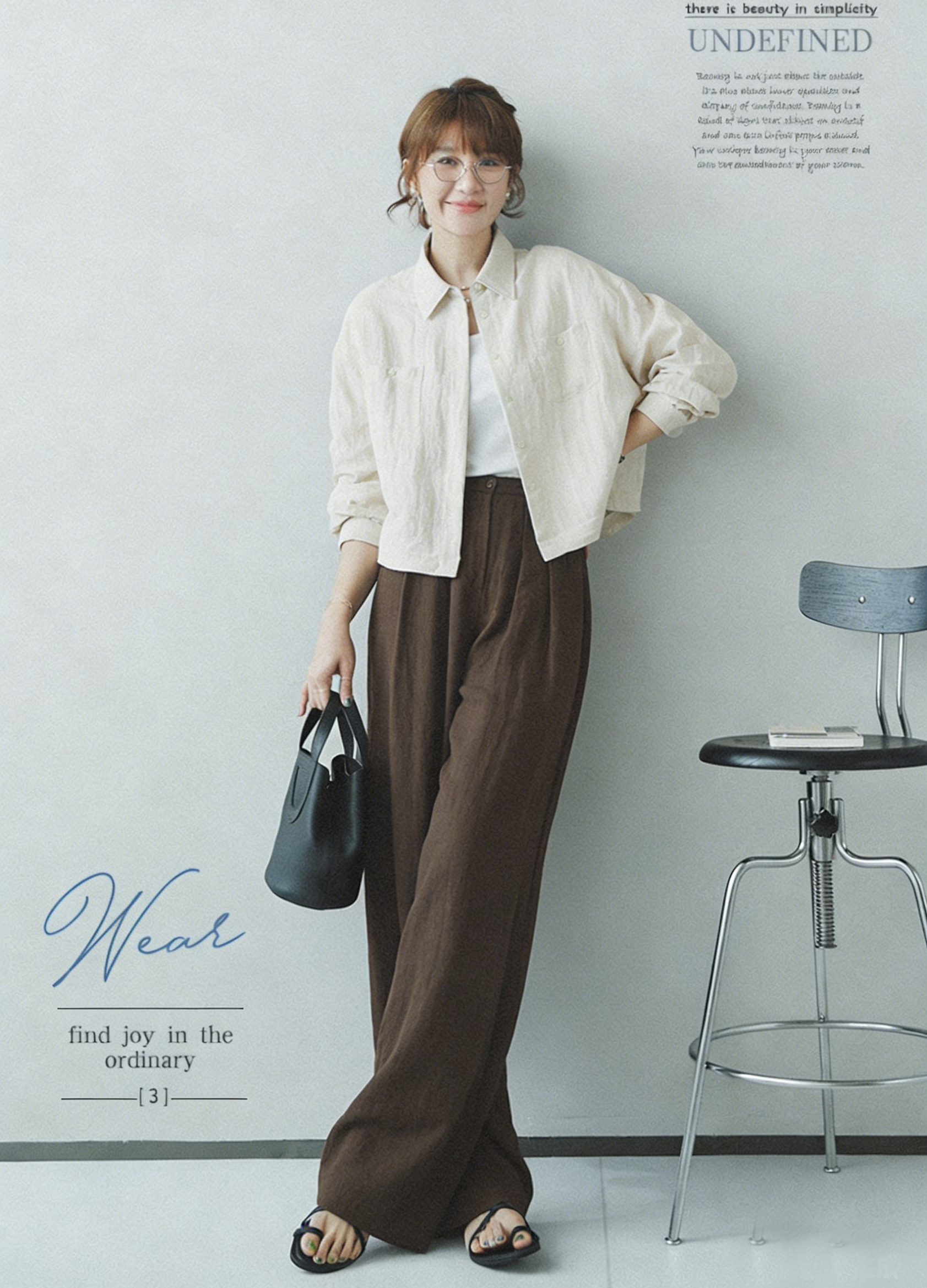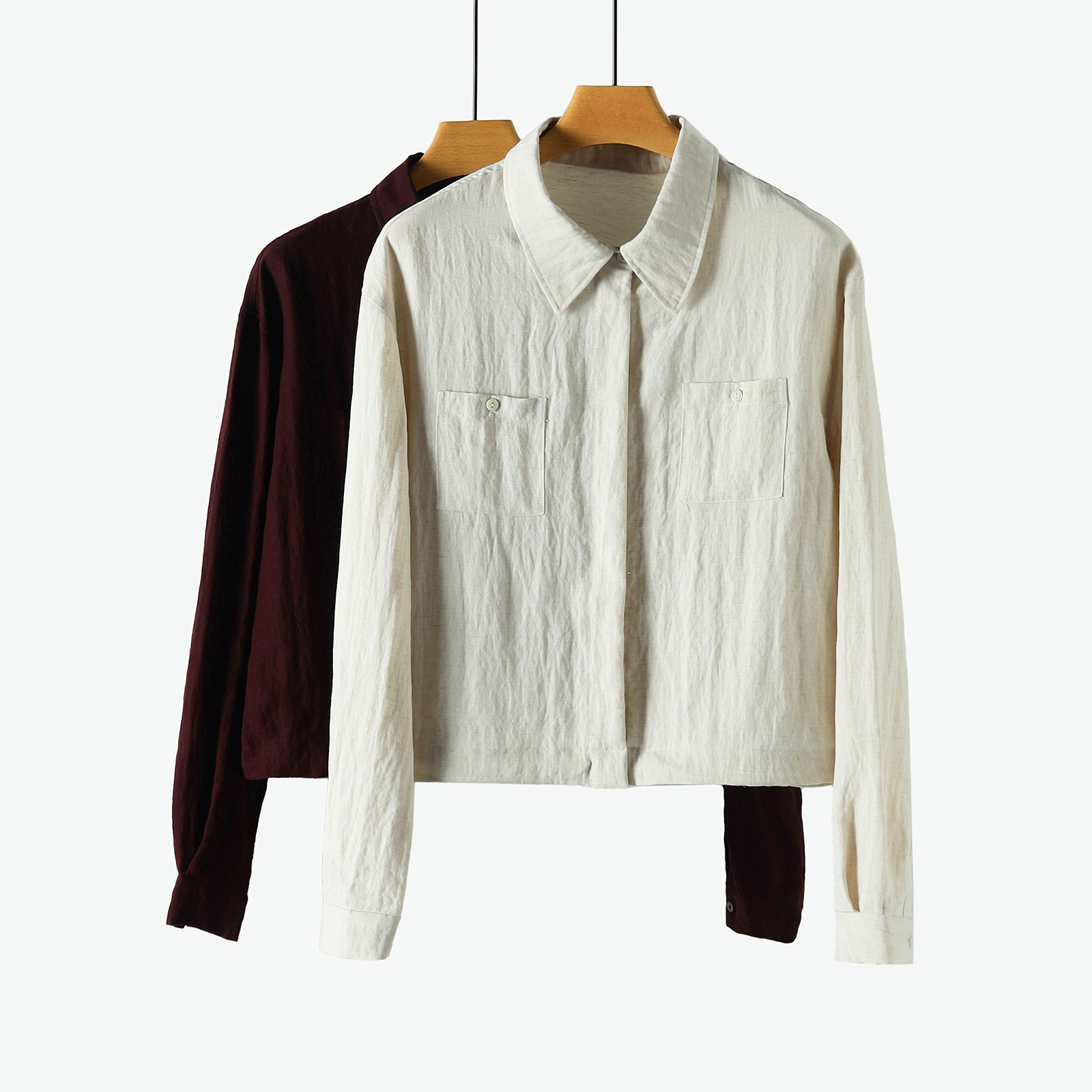 下单3-7天发货!Mylyis 雨露麻休闲短款衬衫/九分裤 短款衬衫翻领利落 双口袋点缀细节 搭配松紧腰九分裤 随性垂坠 适配日常通勤