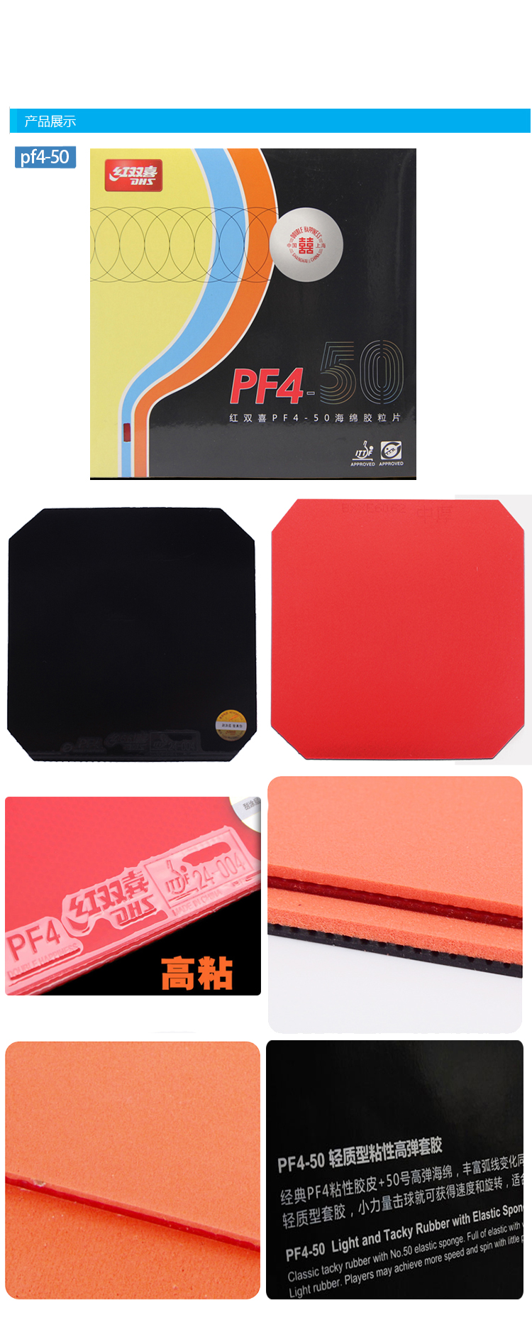 DHS红双喜 PF4/PF4-50 粘性反胶套胶小狂飙3