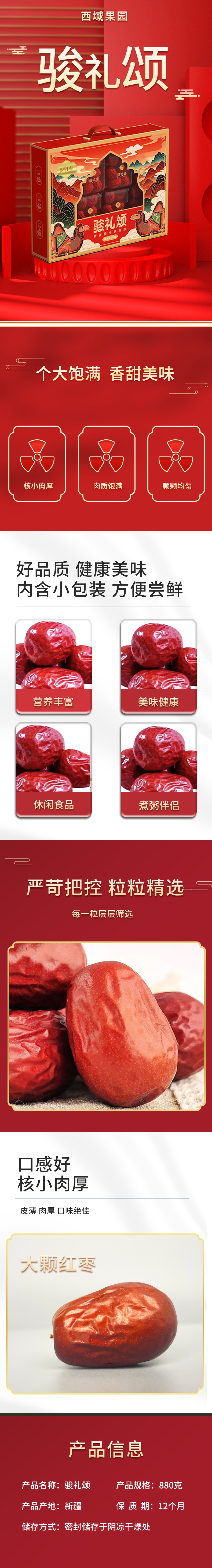 西域果园·骏礼颂新疆骏枣枣王礼盒-枣王880g 颗颗精选 果大肉厚 香甜滋补