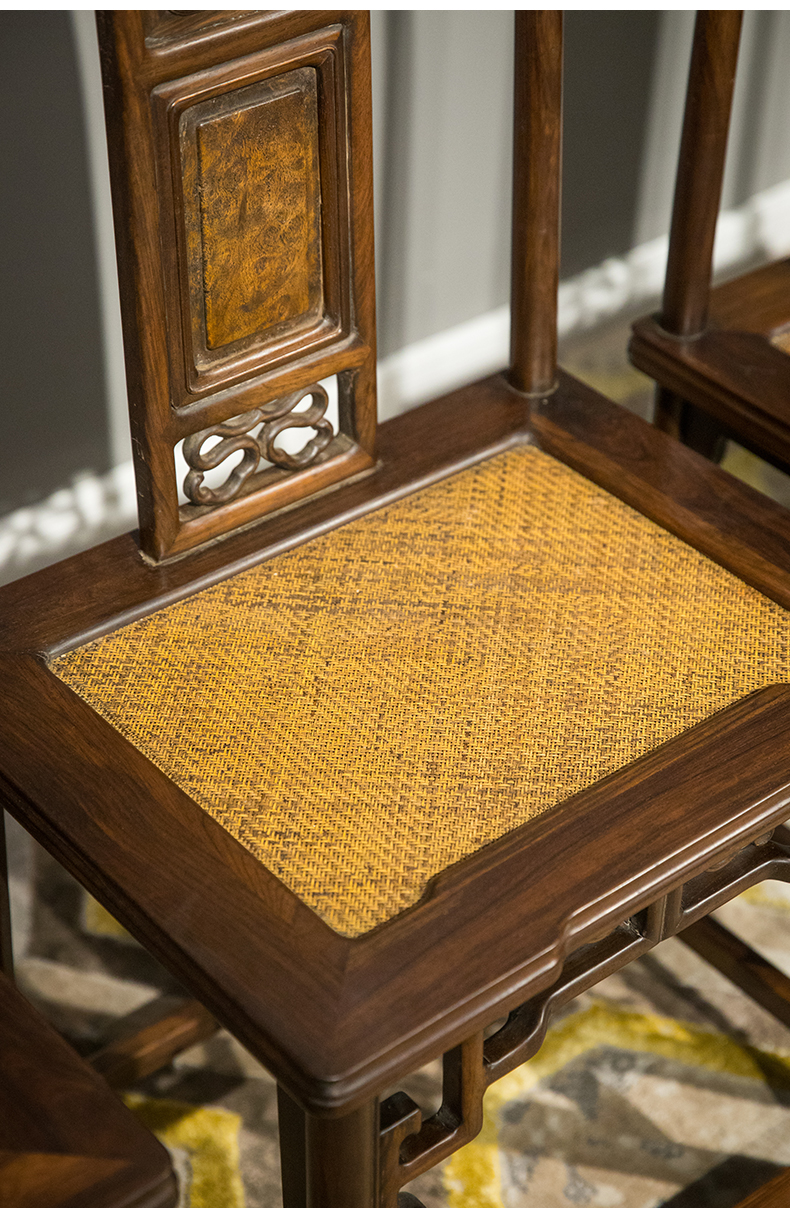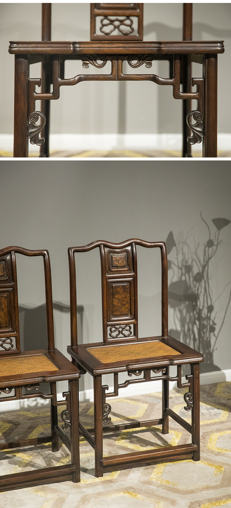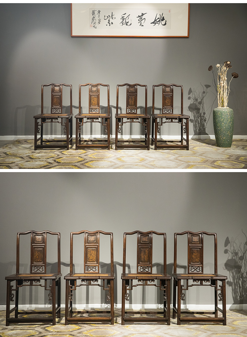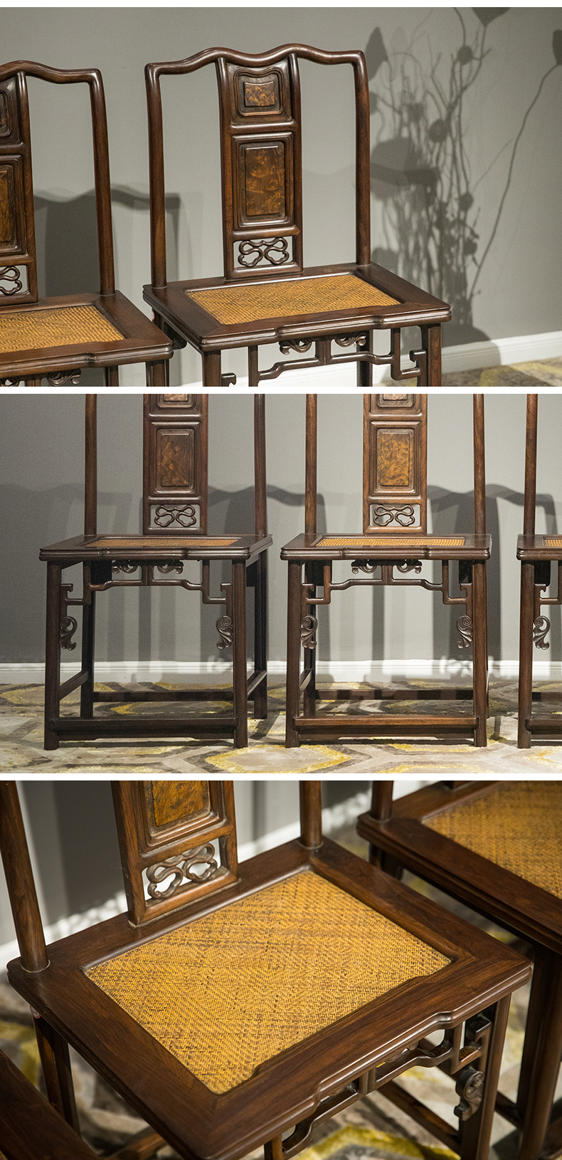 清 红木镶瘿木靠背椅成堂(一堂四只)