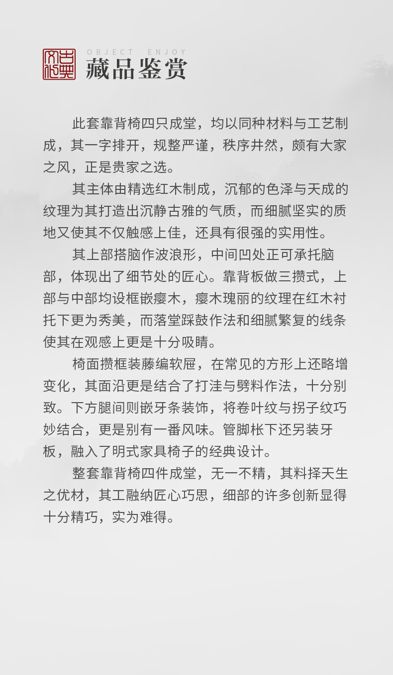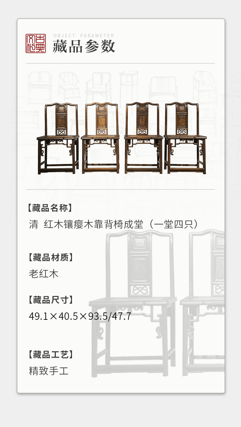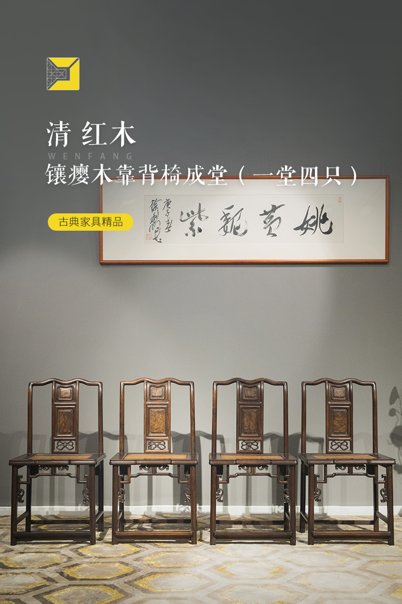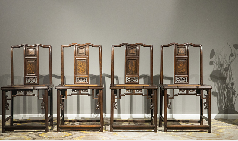 清 红木镶瘿木靠背椅成堂(一堂四只)