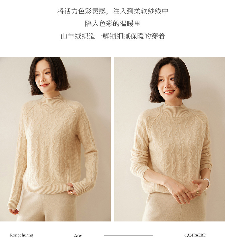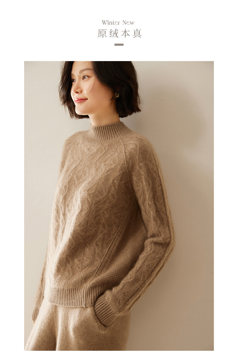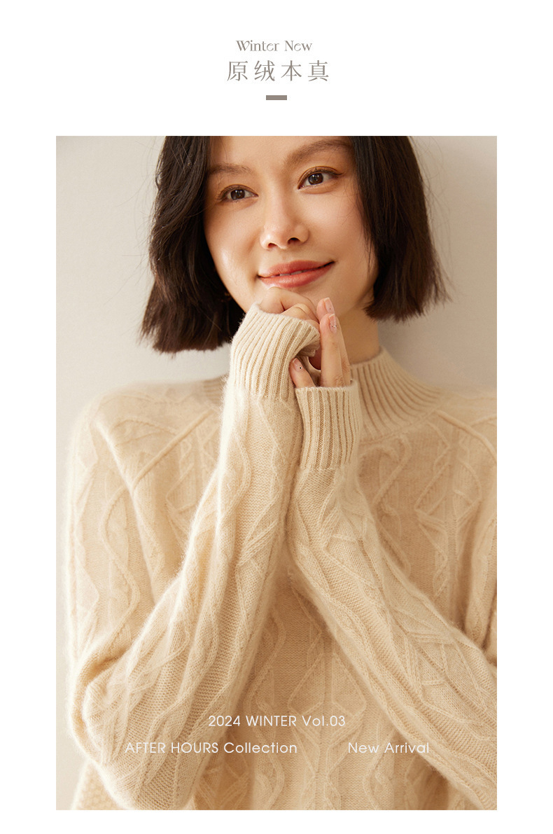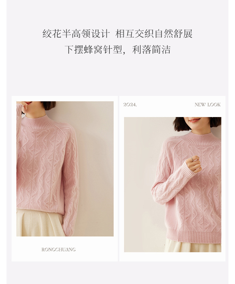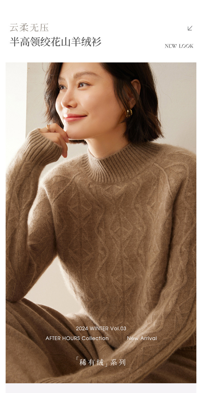 【自】全新升级【铂金会员514/天猫689/差价175】(11913) 洛诗琳双股加厚山羊绒衫24秋冬半高领绞花插肩显瘦羊毛衫