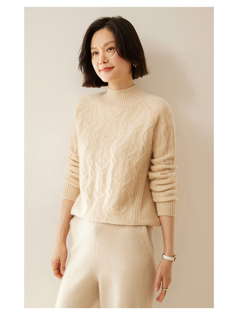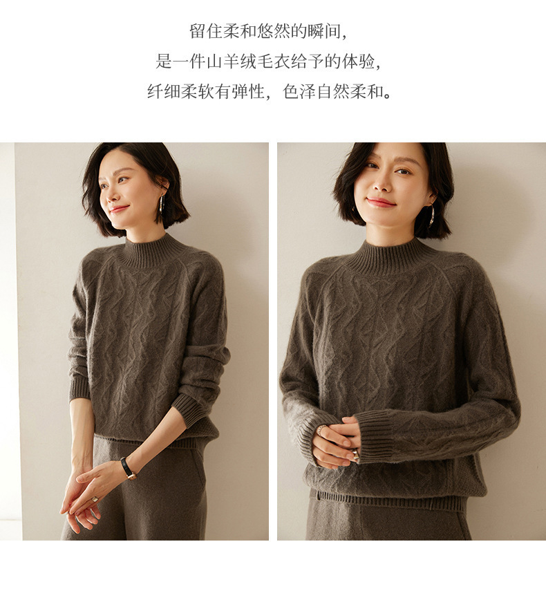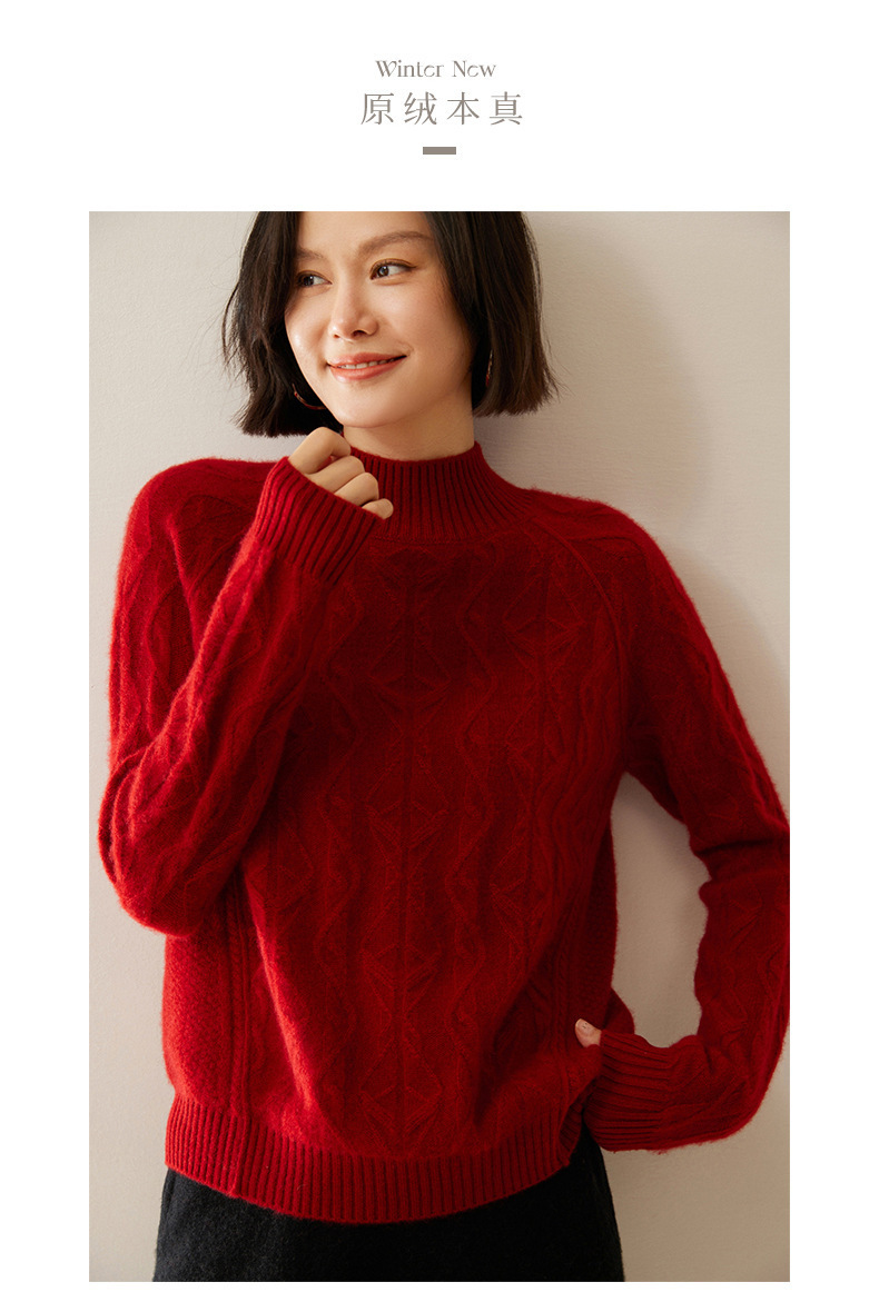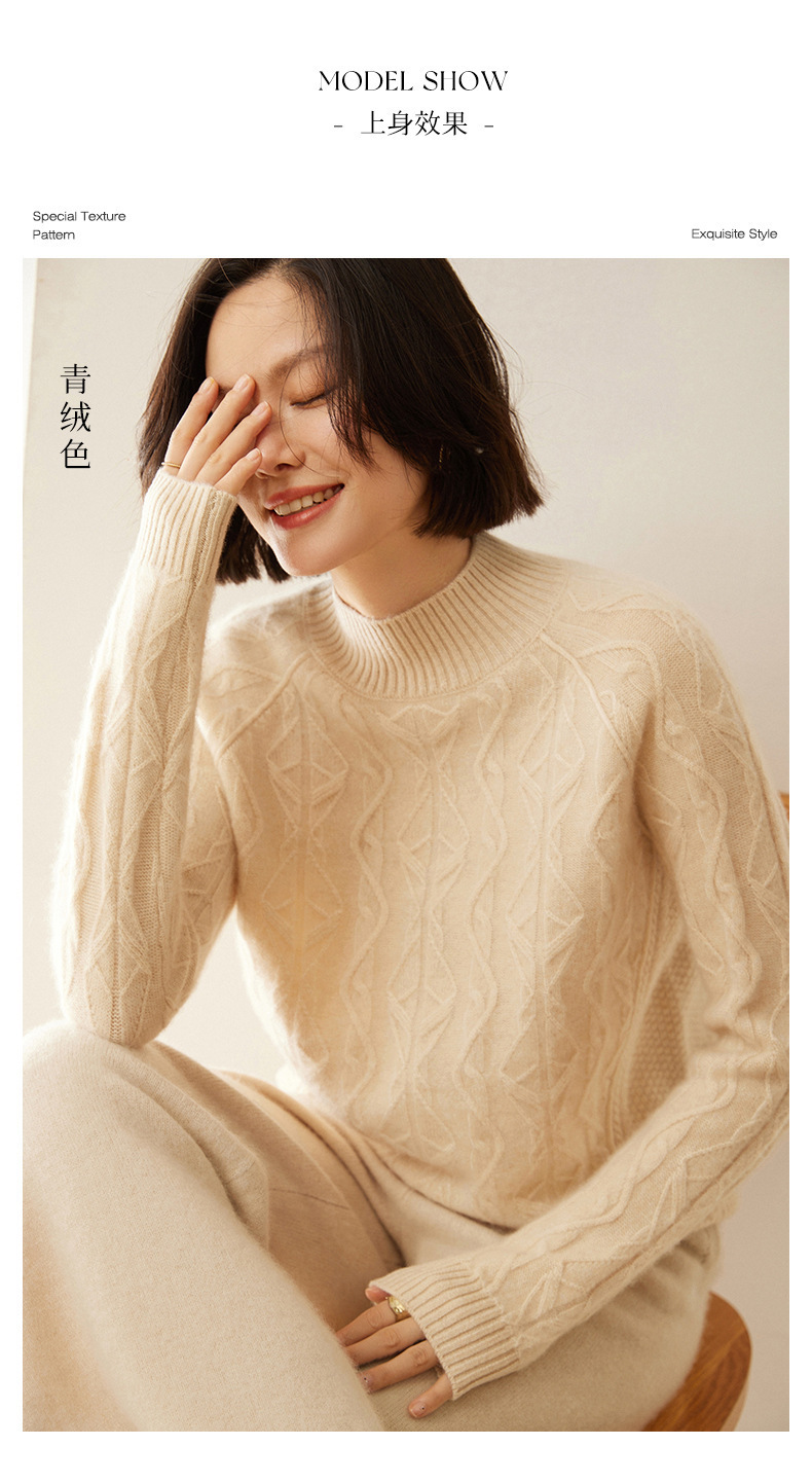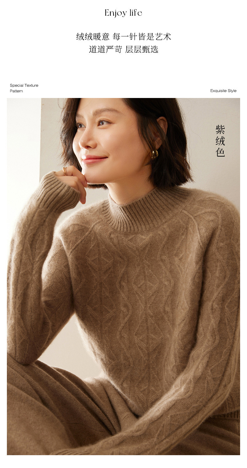 【自】全新升级【铂金会员514/天猫689/差价175】(11913) 洛诗琳双股加厚山羊绒衫24秋冬半高领绞花插肩显瘦羊毛衫
