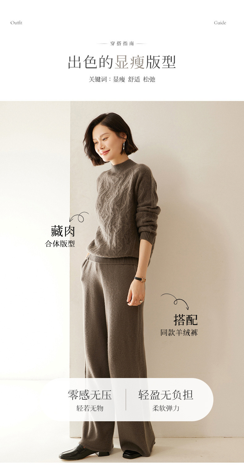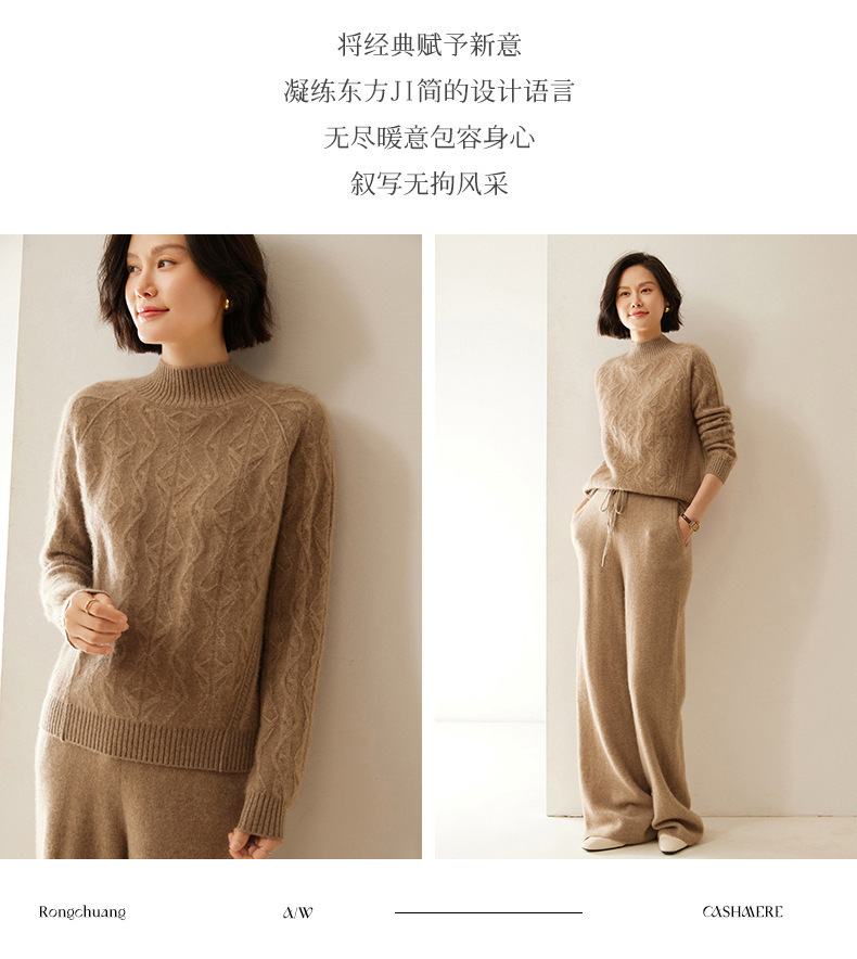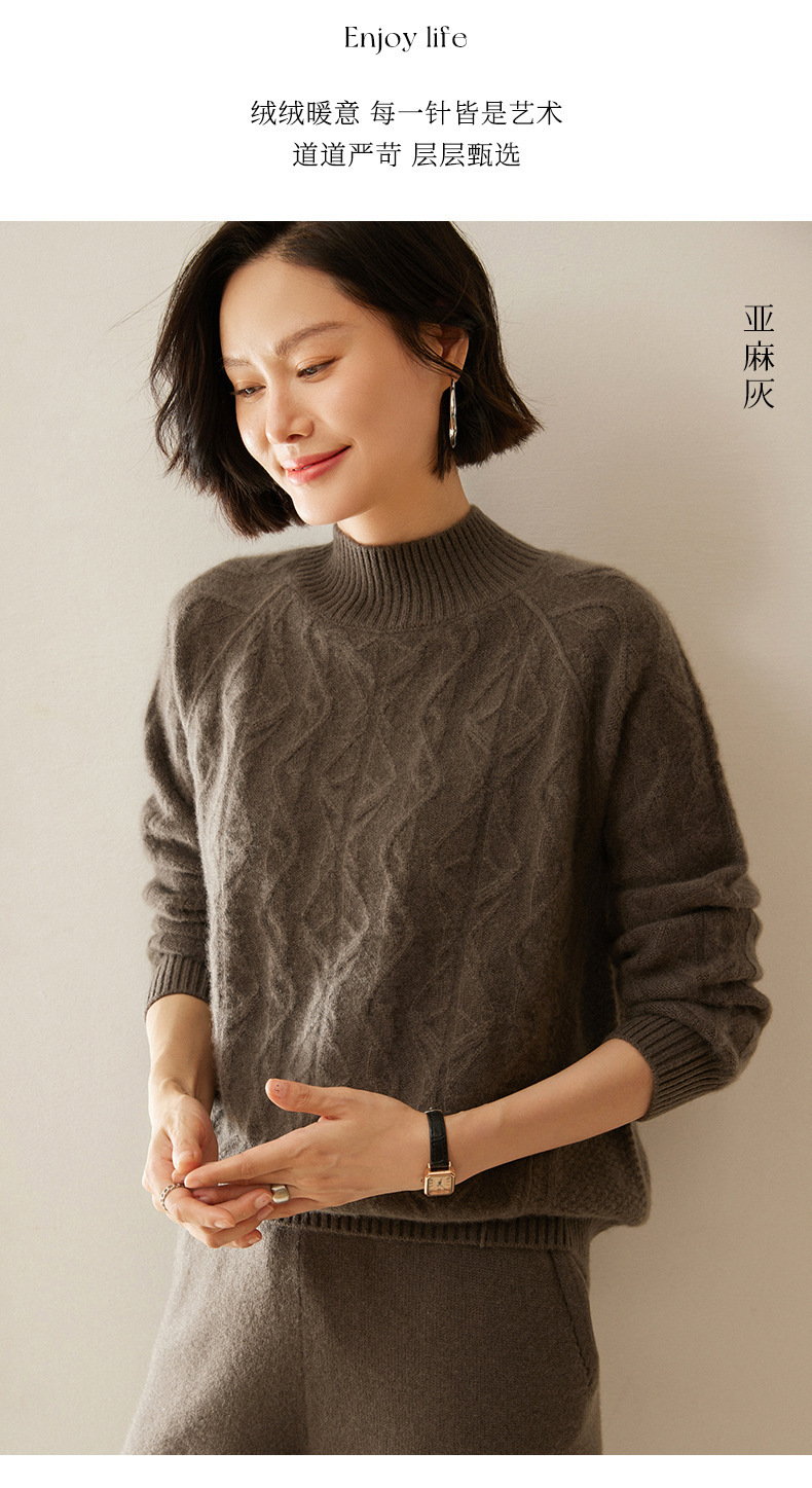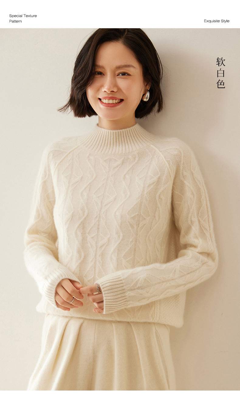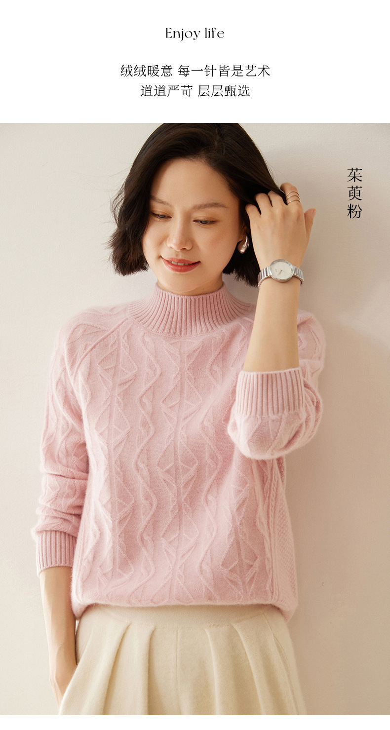【自】全新升级【铂金会员514/天猫689/差价175】(11913) 洛诗琳双股加厚山羊绒衫24秋冬半高领绞花插肩显瘦羊毛衫