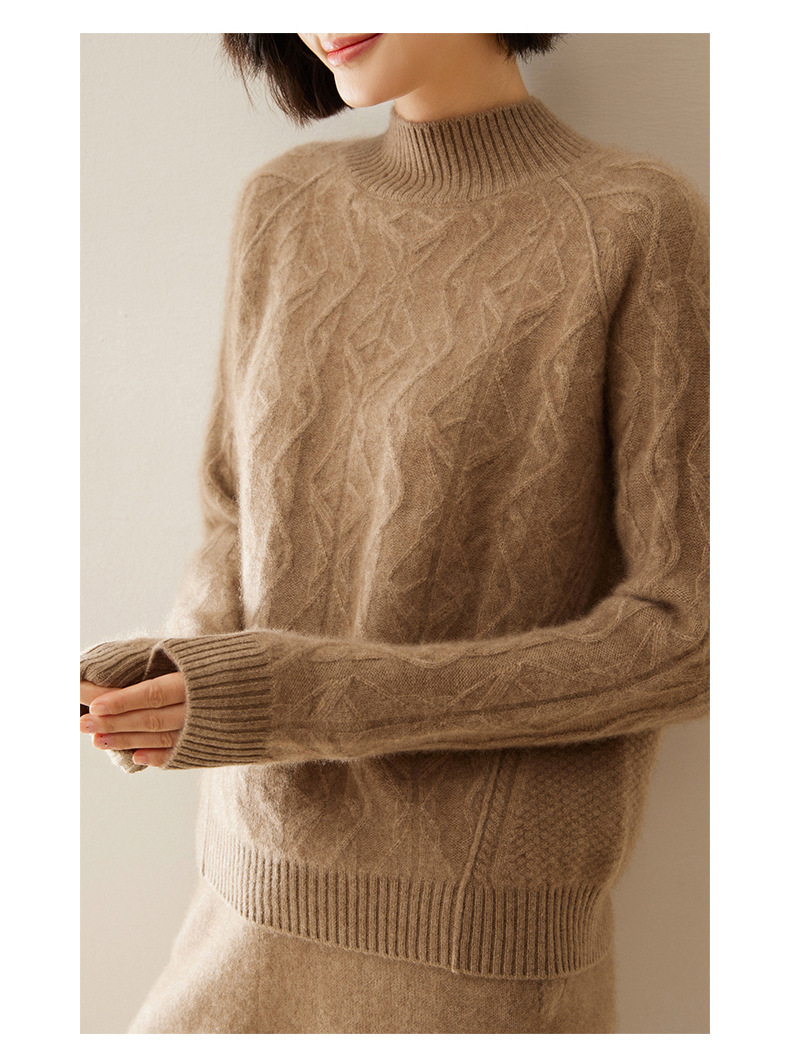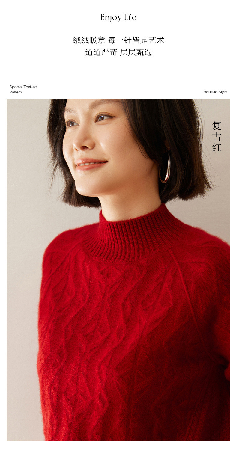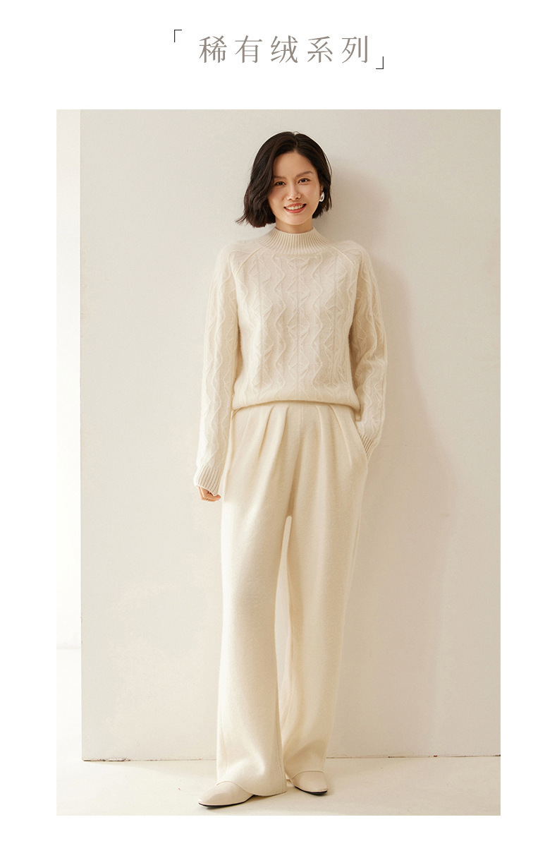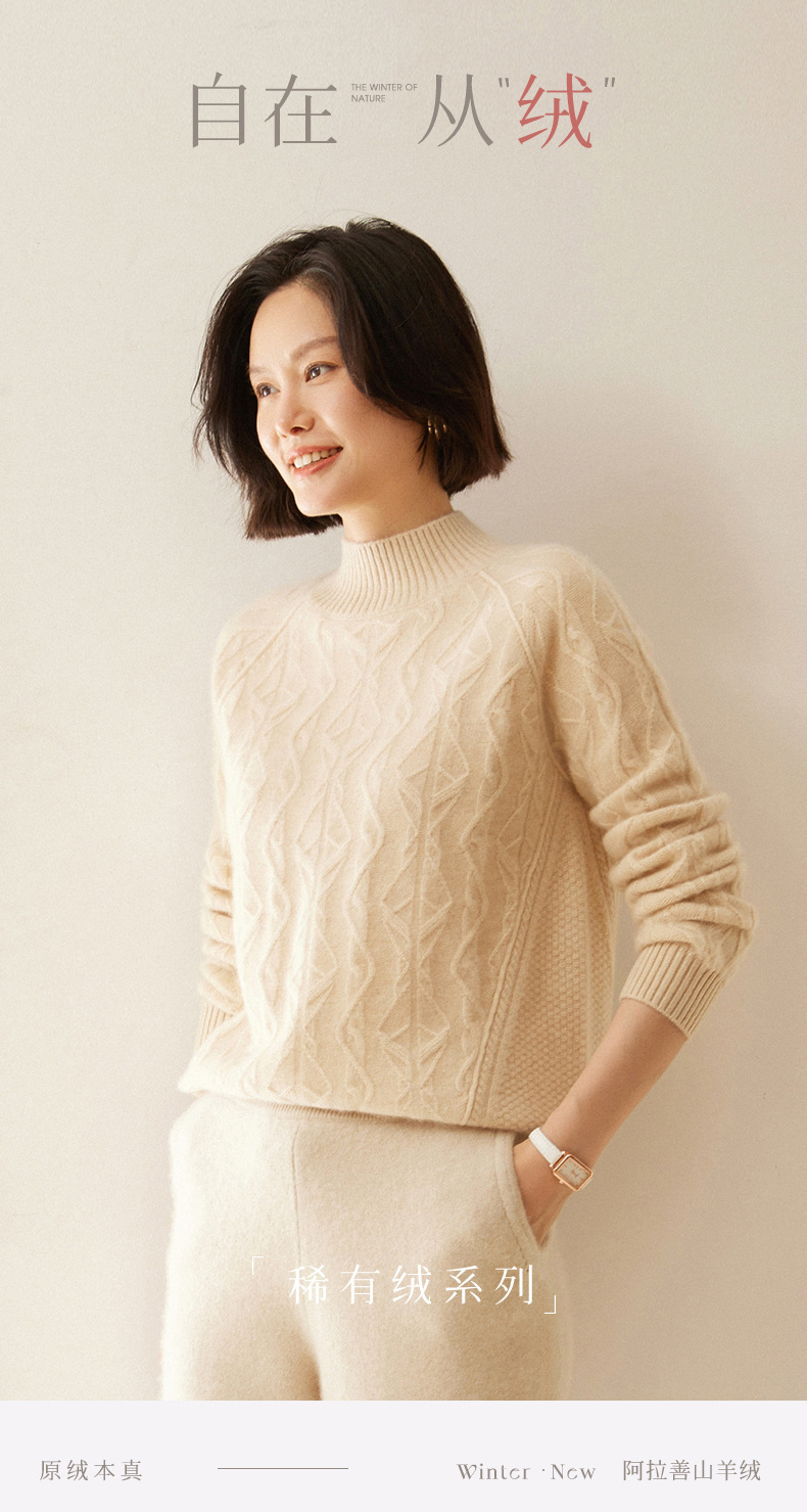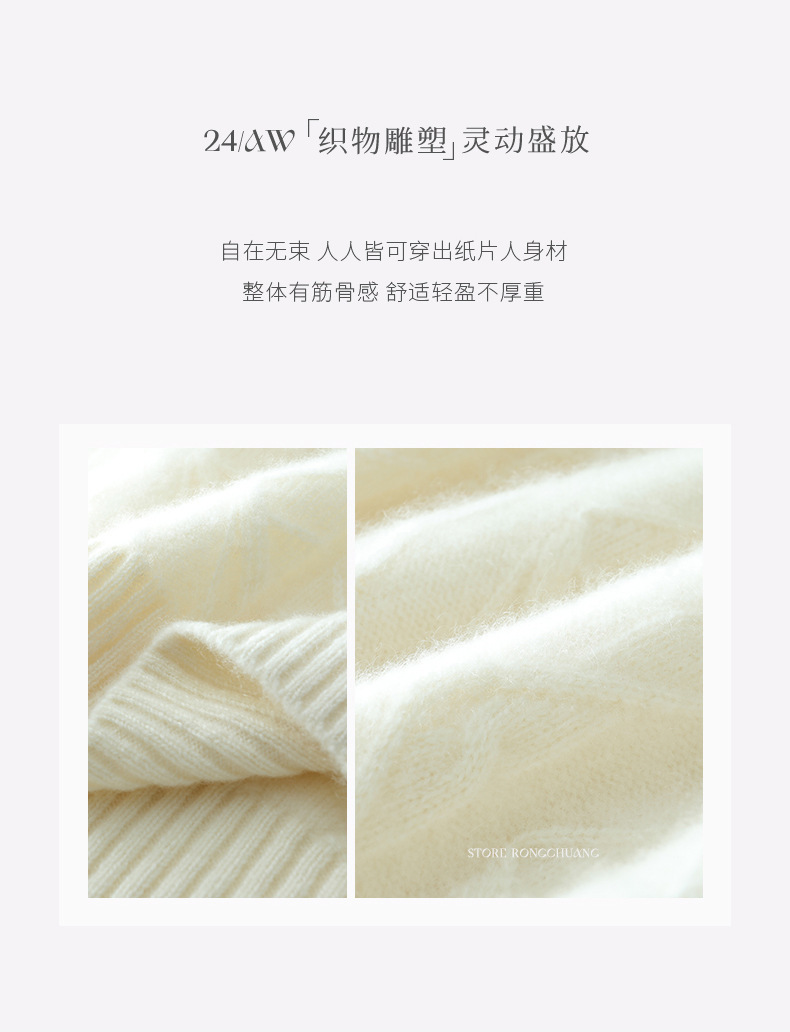 【自】全新升级【铂金会员514/天猫689/差价175】(11913) 洛诗琳双股加厚山羊绒衫24秋冬半高领绞花插肩显瘦羊毛衫