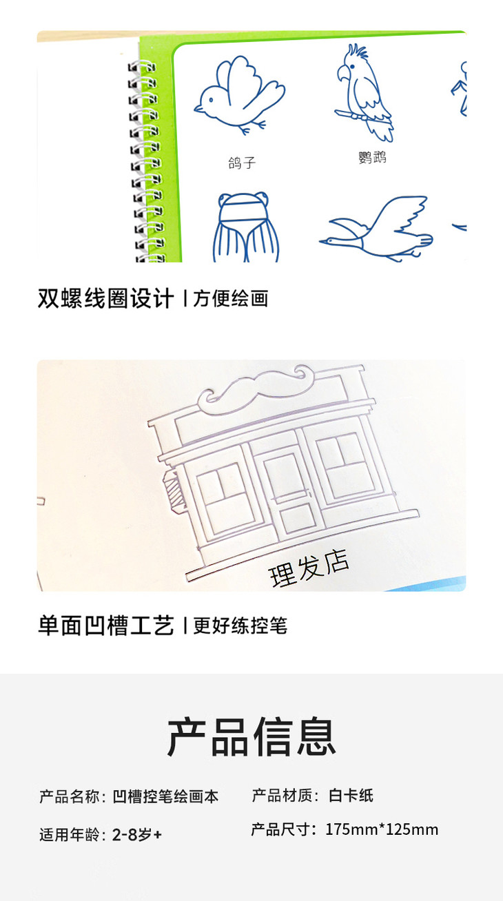 【商品名称】凹槽控笔绘画本 【发货时效】48h内发货 【物流说明】西藏、新疆、内蒙、不发货,上海北京+1元/单 【售后说明】1.商品非质量问题不支持退换;2.质量、缺件问题请签收后48小时内反馈,过期无法为您处理喔;3.快递送货外观有严重破损的请拒收;4.随机赠品不在售后范围内。 特别提醒:物流异常问题,比如无信息更新、退件等,请于发货后1个月内反馈,超过1个月不做处理!