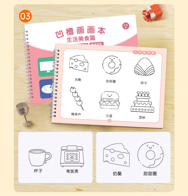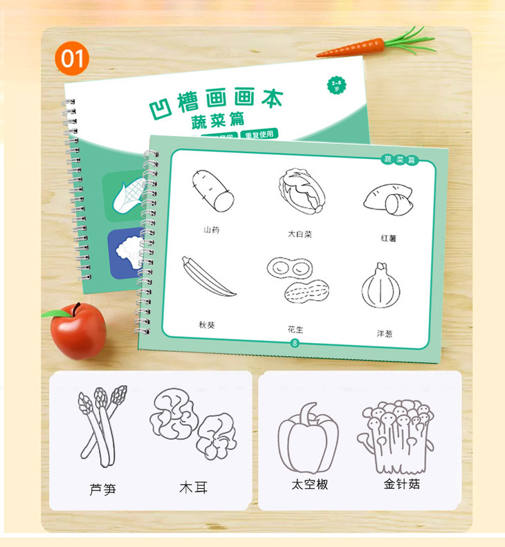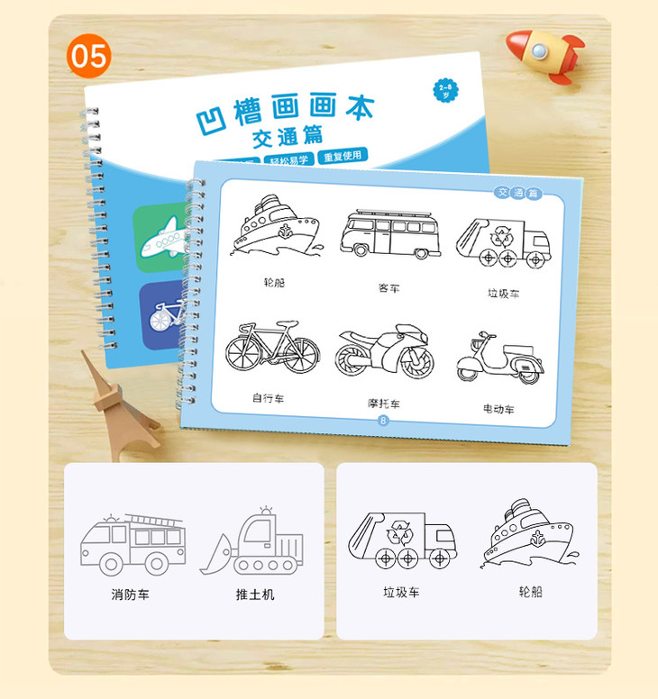 一共八大主题🔥🔥 蔬菜、建筑、服饰、动物、生活美食、交通、人物、水果 涵盖生活方方面面,让孩子们的绘画学习更加丰富多彩。 从动物、植物到交通工具、日常用品,各种主题应有尽有, 让孩子们的绘画世界更加完整 不仅能让宝宝学画画,同时也锻炼控笔 还帮助宝宝认识各种图案🔥 🌹宝宝的观察力和手眼协调能力可以得到有效提升