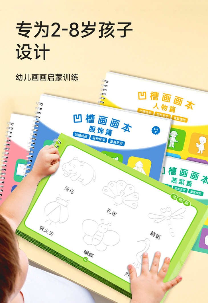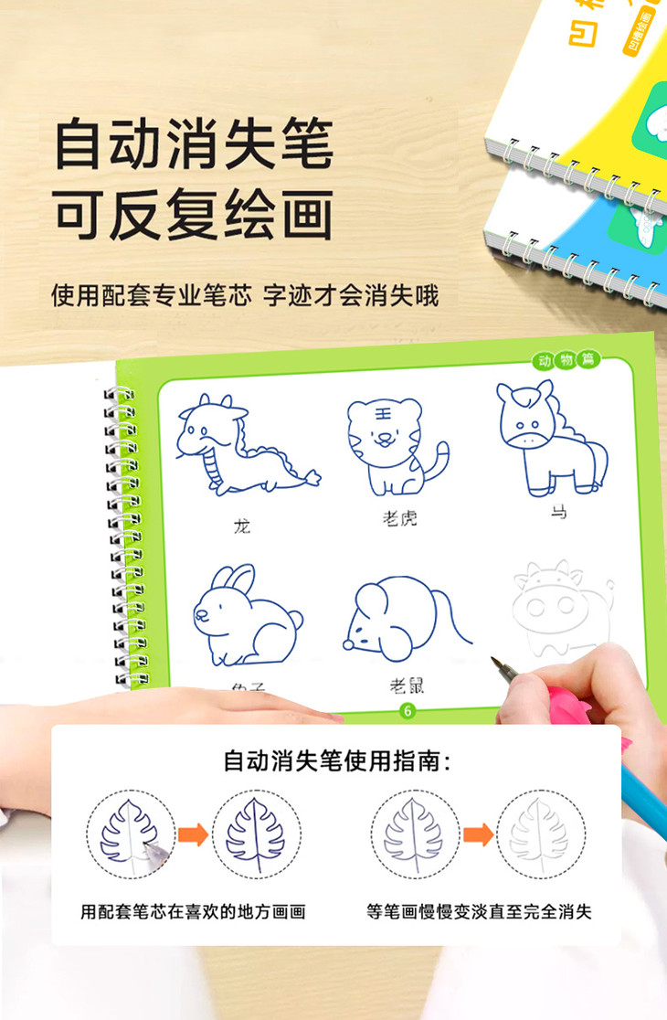 既能练控笔,又能培养孩子画画! 还能认识八大类的几百种不同的事物! 到手整整八本,墨水笔迹半小时自动消失,可以无数次反复练习!
