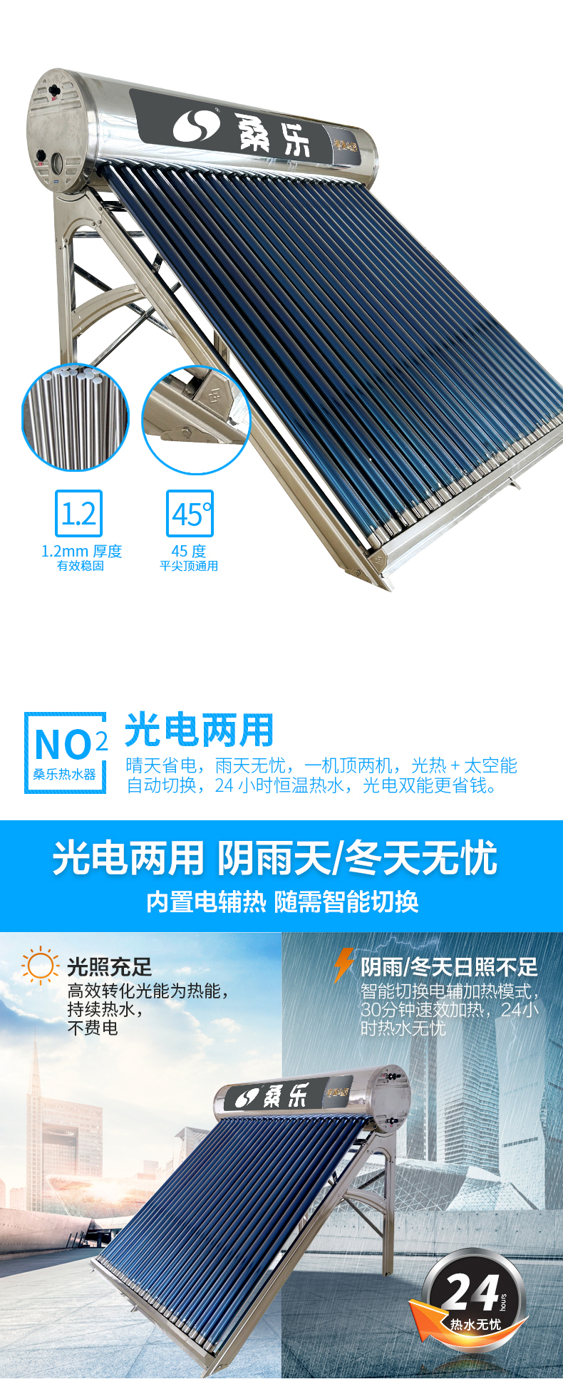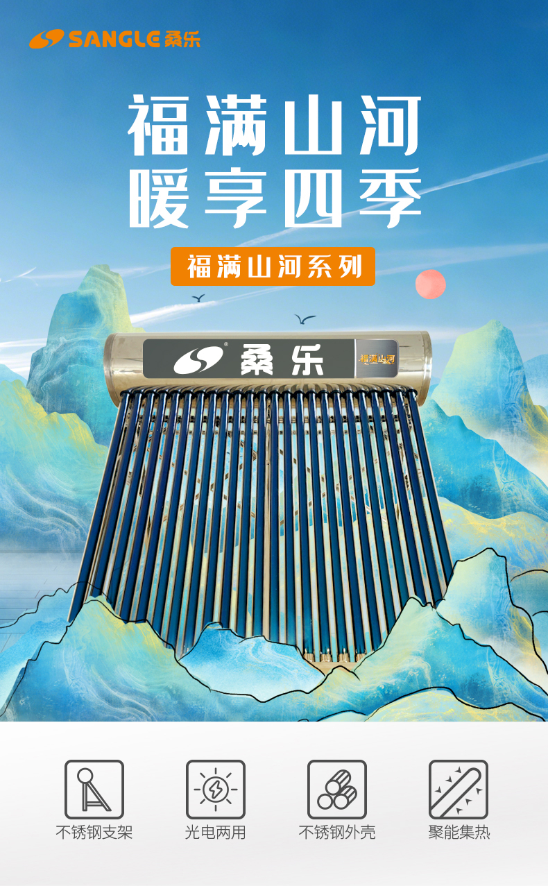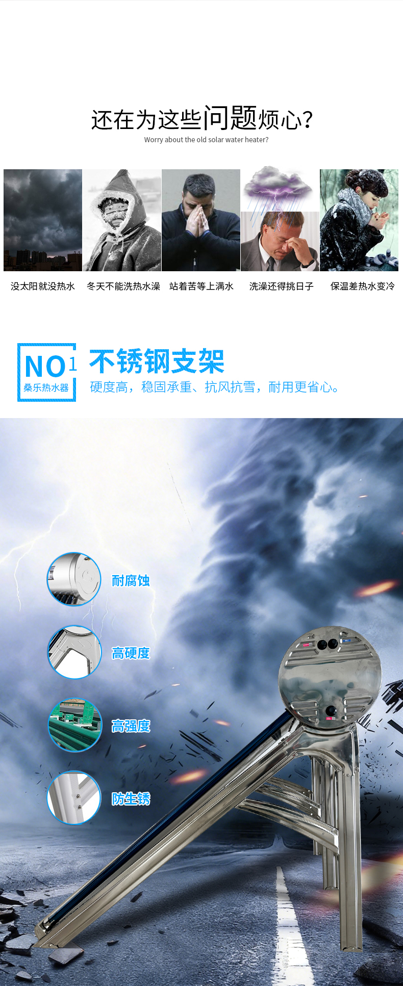 桑乐(SANGLE)太阳能热水器家用 花开似锦 一体辊压成型专利技术 多靶高效集热