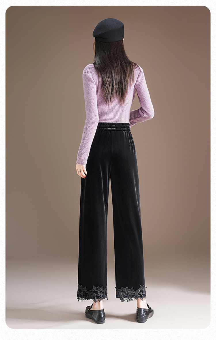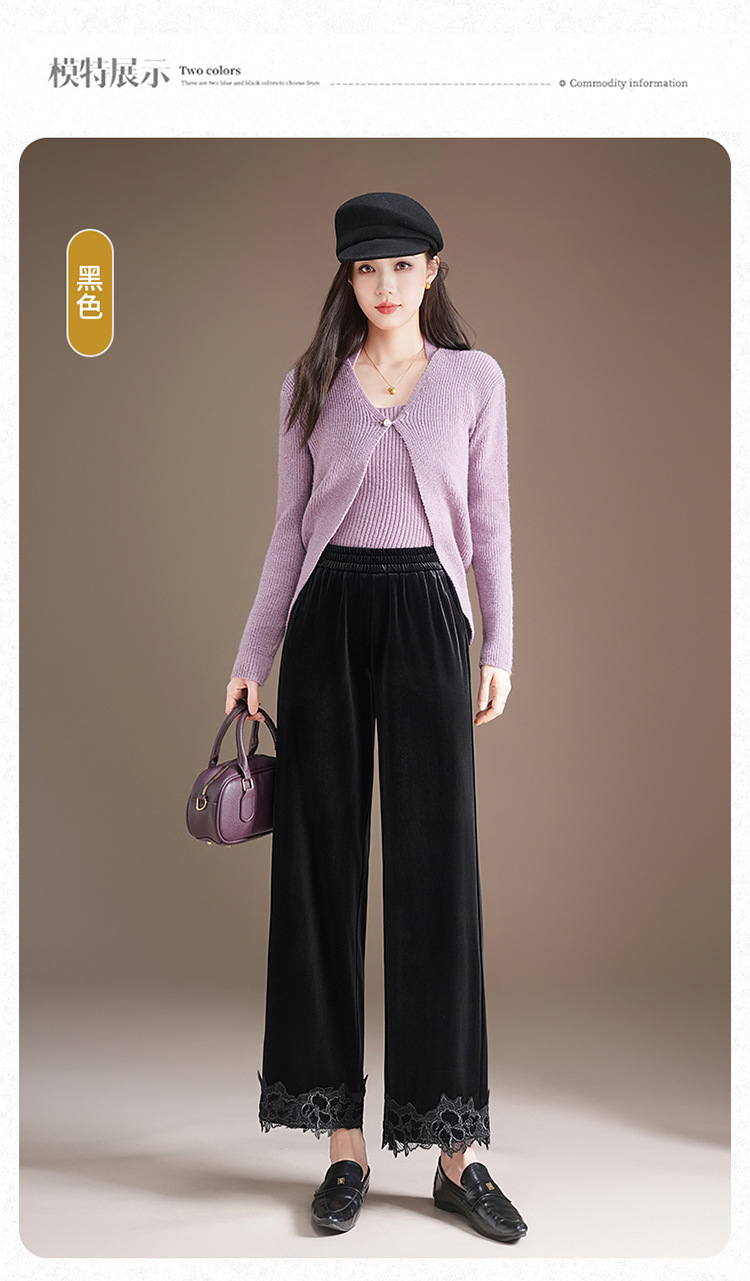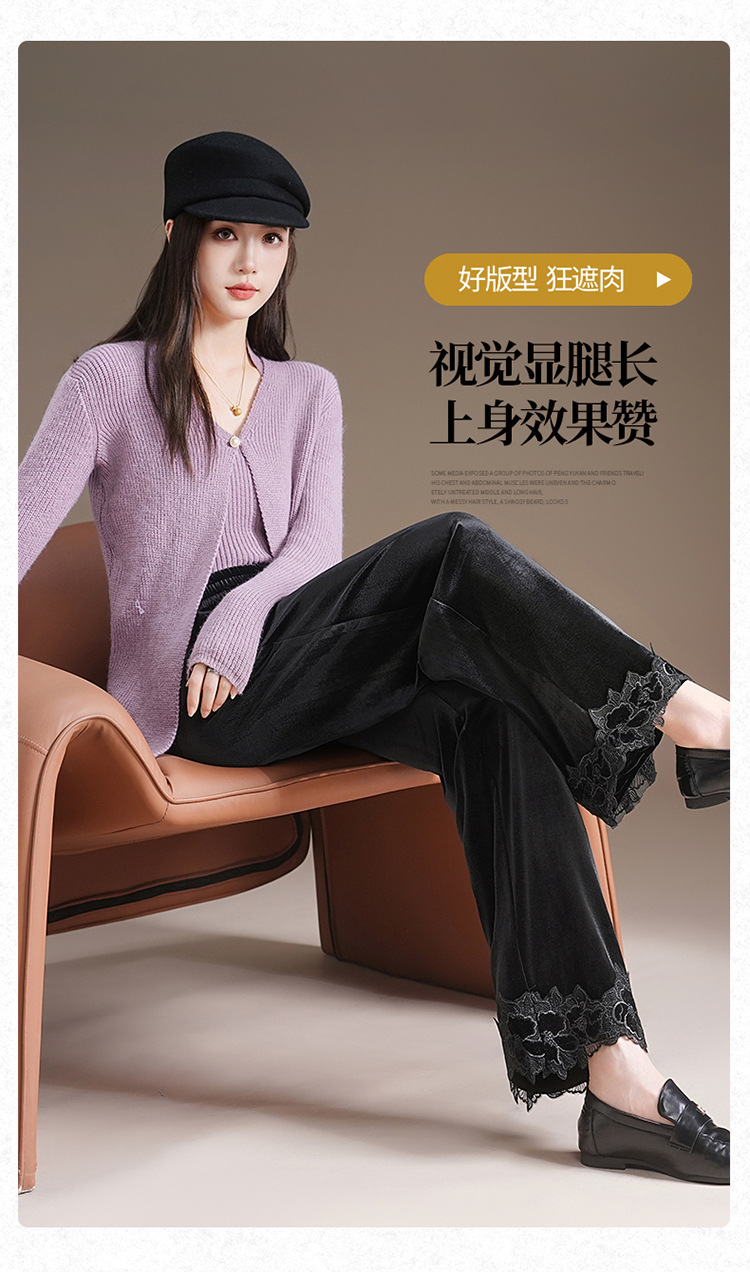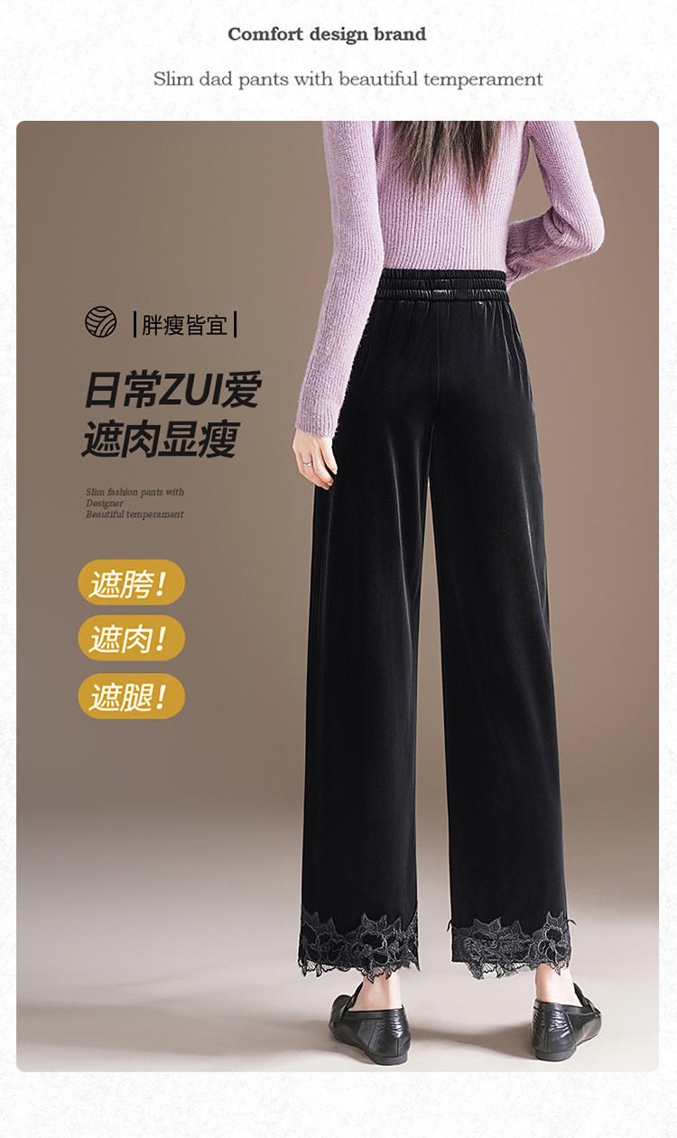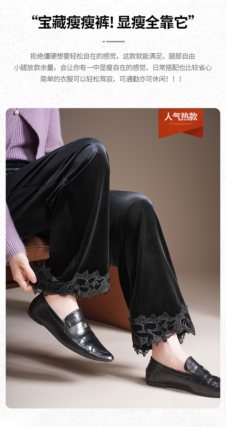 MYX蕾丝拼接垂感修身直筒裤松紧腰小个子九分裤2025年秋款洋气直筒裤