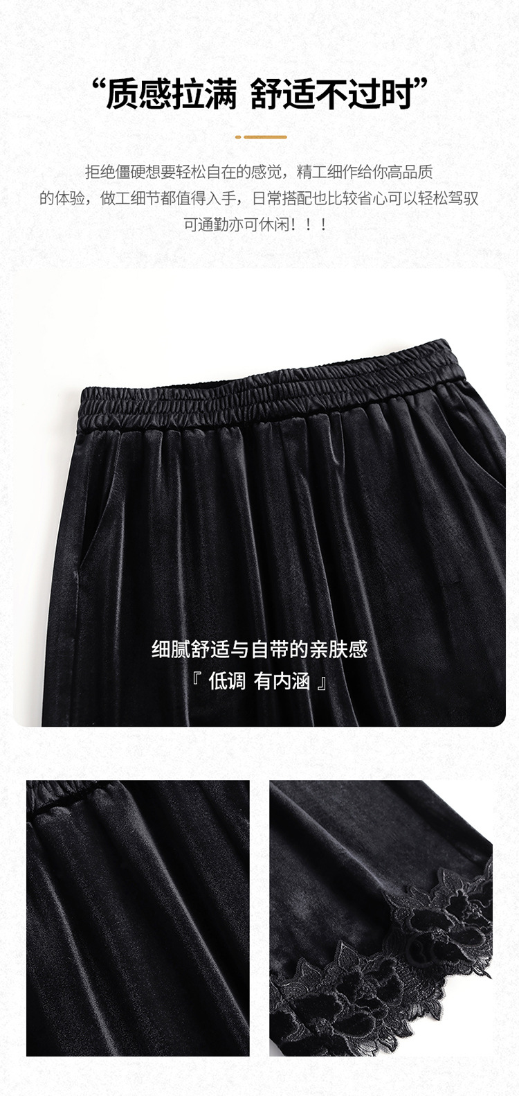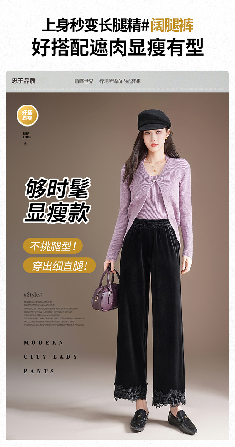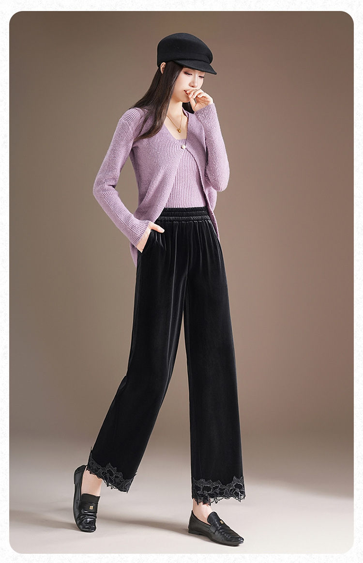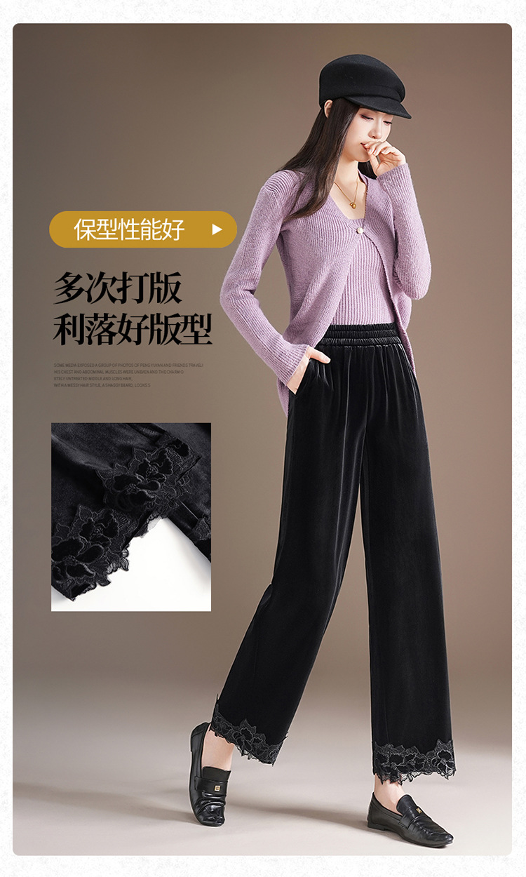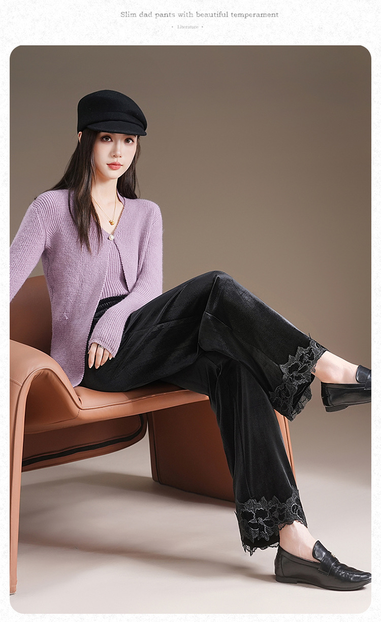 MYX蕾丝拼接垂感修身直筒裤松紧腰小个子九分裤2025年秋款洋气直筒裤