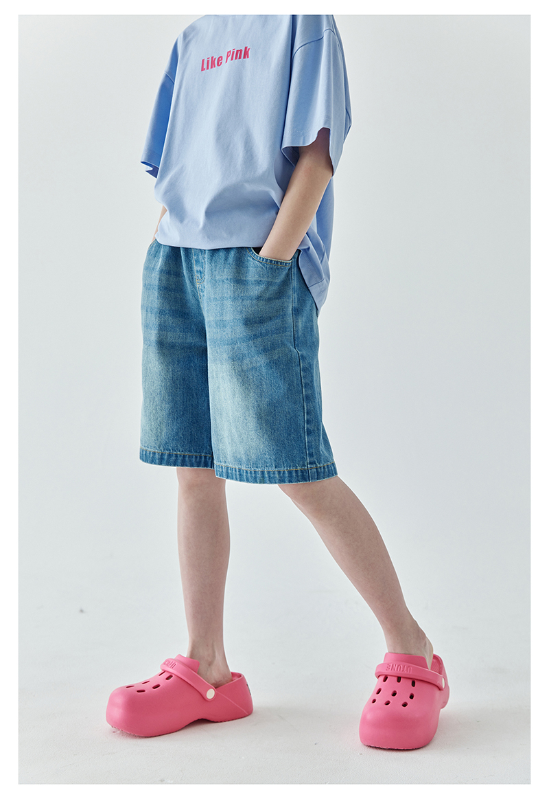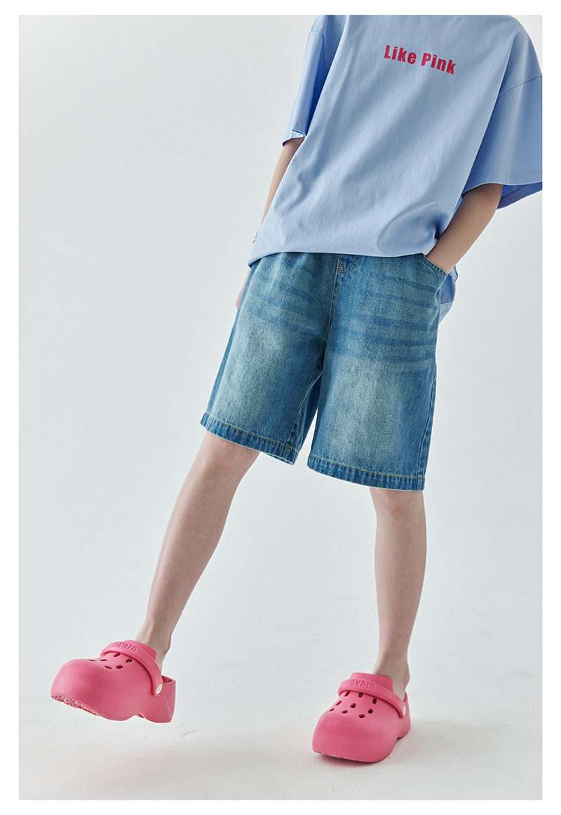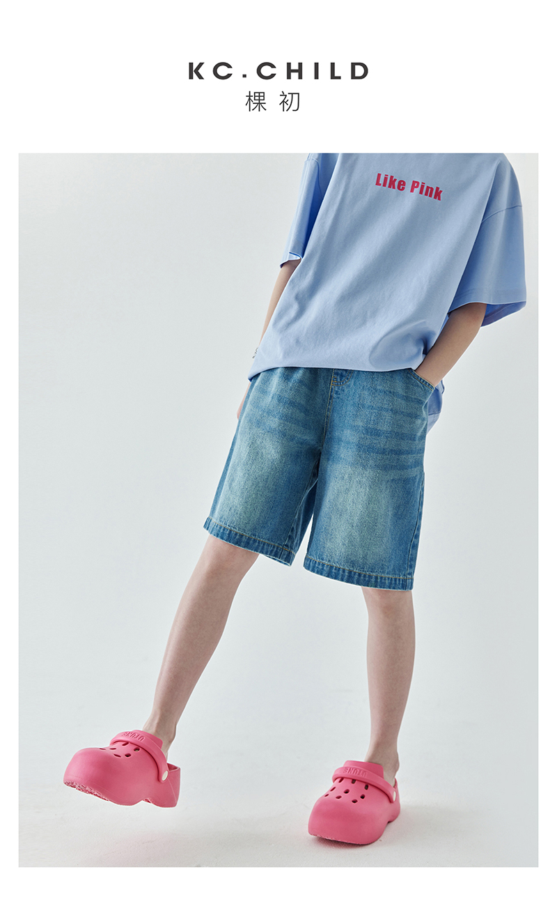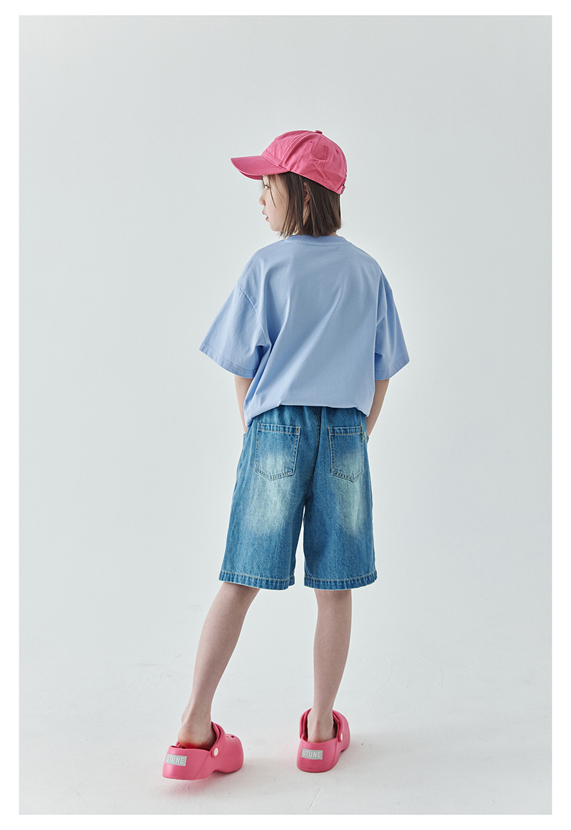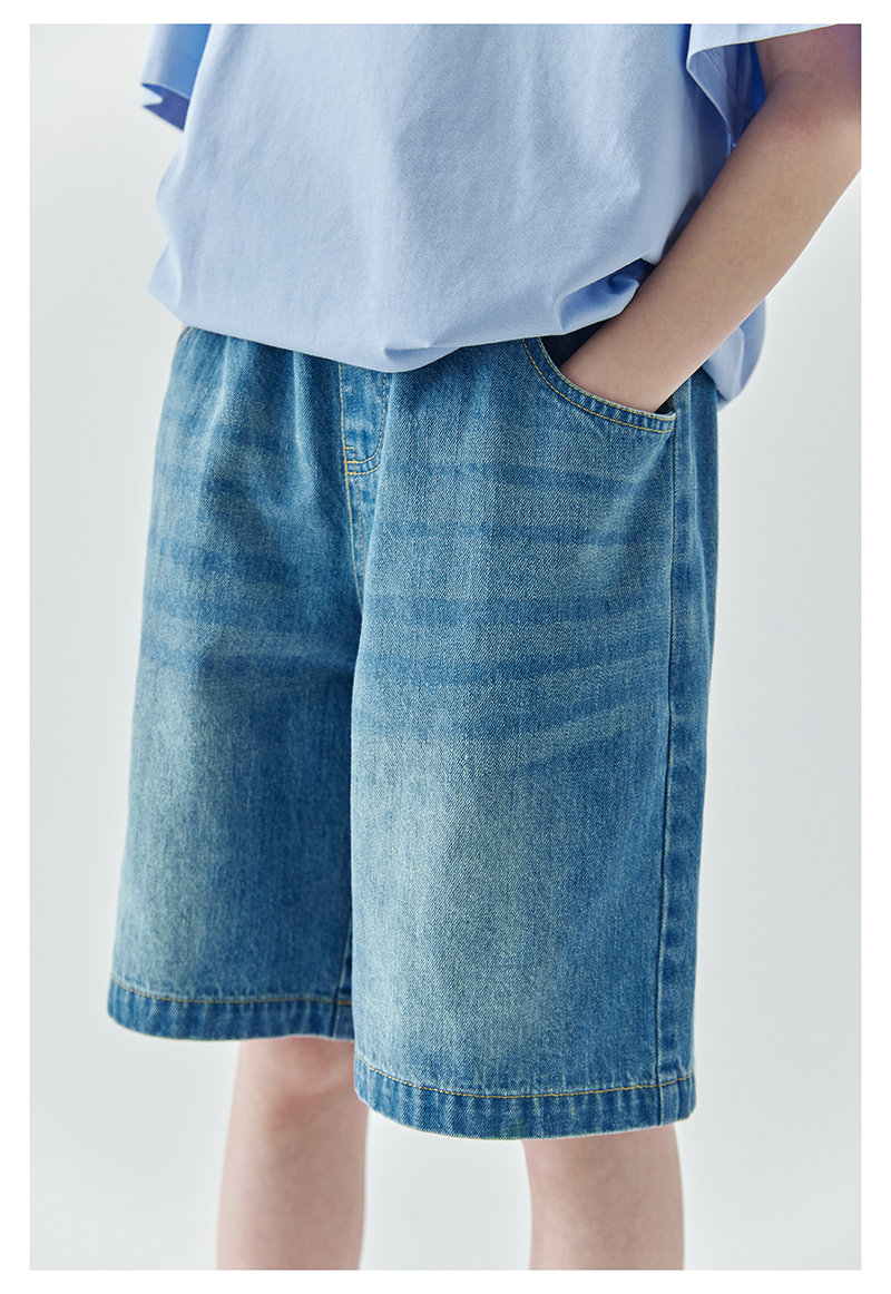 棵初夏季新品亲子款水洗牛仔短裤中大童百搭蓝色休闲五分裤