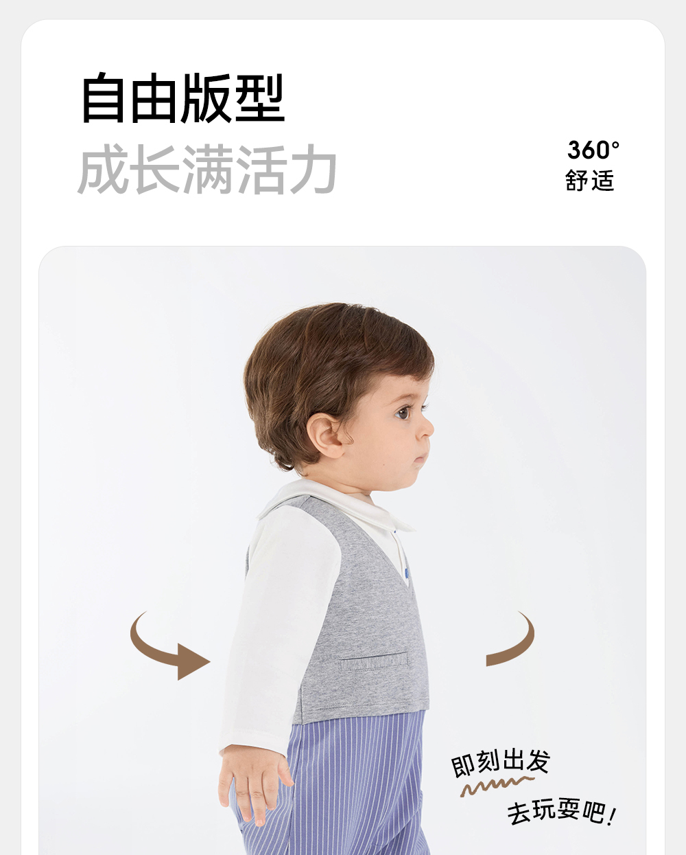 【商场同款】英氏婴儿连体衣秋季男童外出连身衣新款宝宝衣服