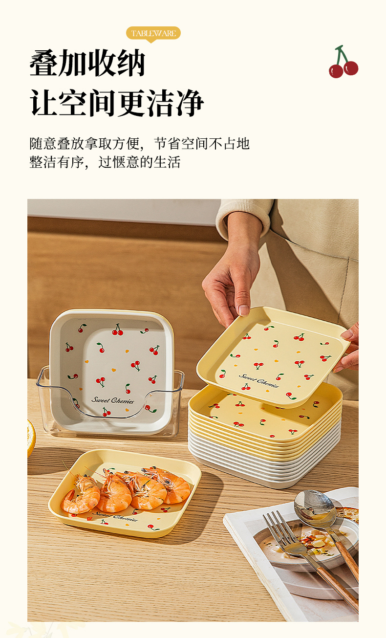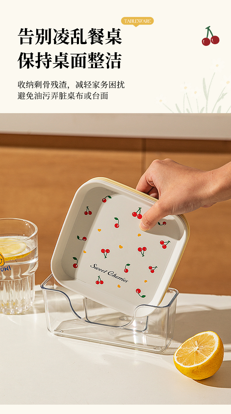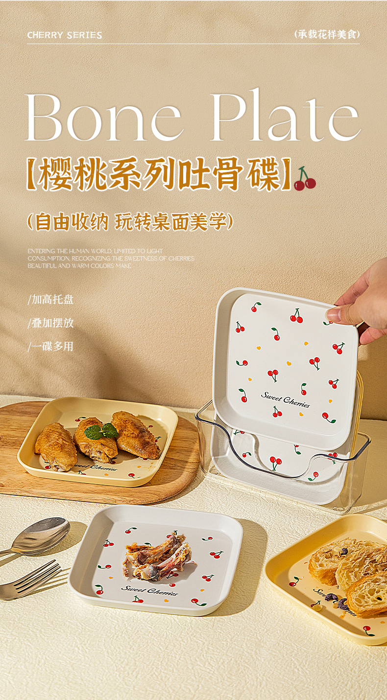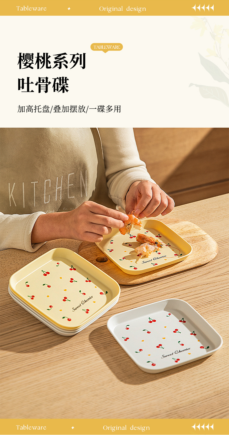 摩登主妇樱桃吐骨碟家用新款高颜值餐桌垃圾盘塑料吐骨头盘碟渣盘