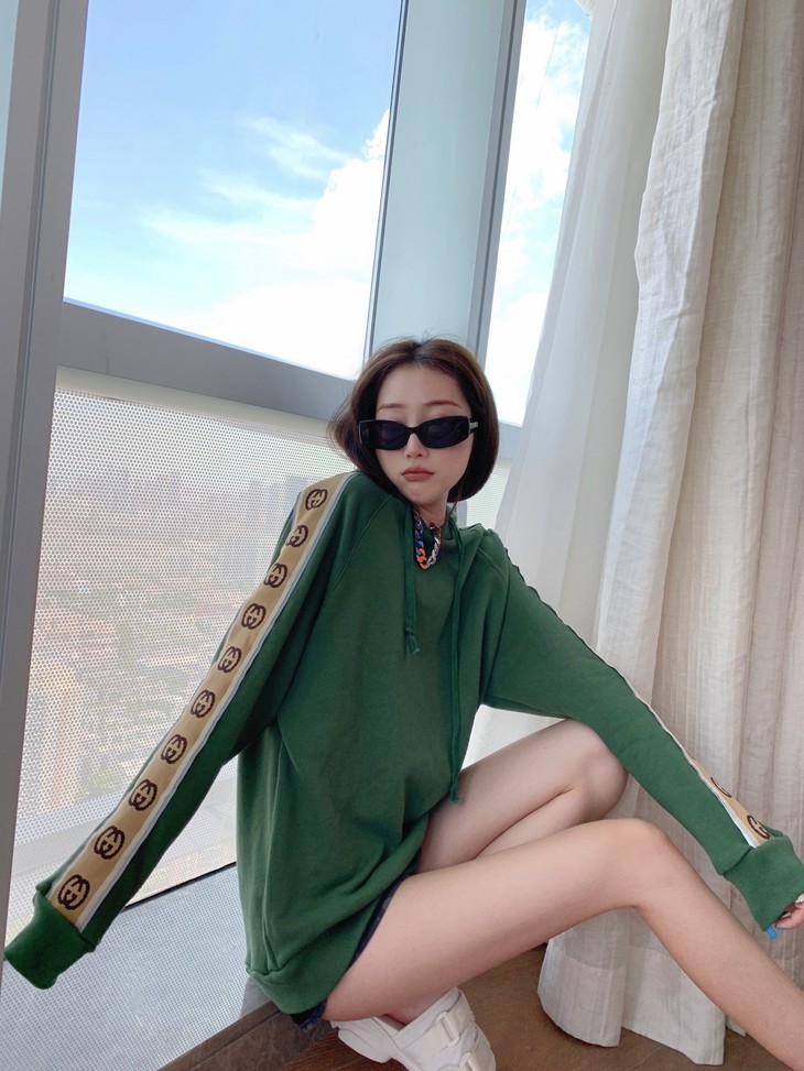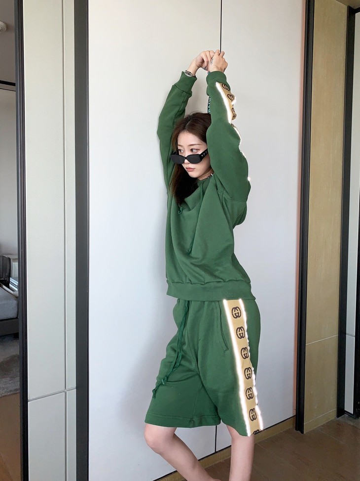 卫衣¥128 货号100733128 曾 🌈🌈🌈新款发布🌈🌈🌈古驰反光织带绿色卫衣 2020早秋新款侧边经典织带连帽卫衣🥳高支全棉面料 上身亲肤感超好⚜️采用经典色系侧边织带 撞绿色超显肤白 裤子设计当前流行风 整体呈现更潮 💀宽松版型可当情侣装 👫自留款 SMLXL 卫衣尺码 S衣长69胸围114袖长76 M衣长71胸围118袖长78 L衣长73胸围122袖长80 XL衣长75胸围126袖长82