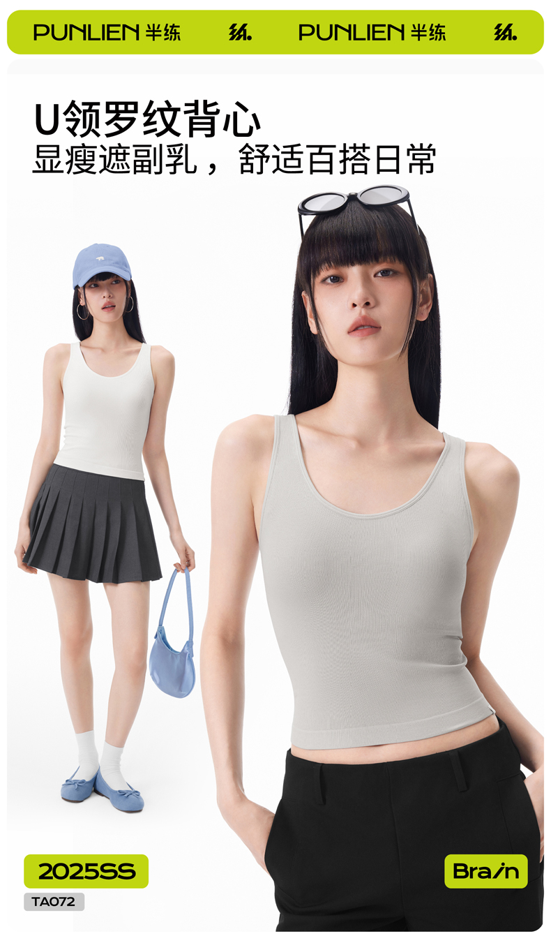 【商品名称】半练U领罗纹吊带TA072