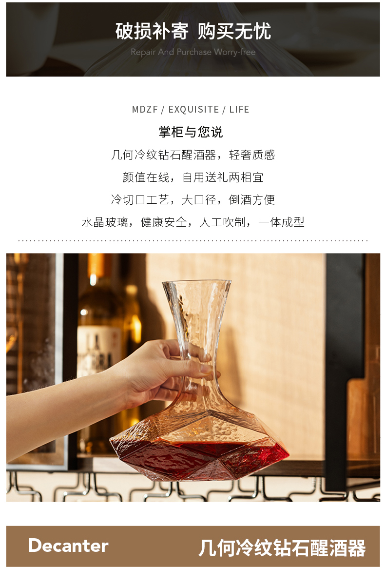 摩登主妇红酒醒酒器家用奢华高档分酒器玻璃钻石呼吸式快速红酒壶