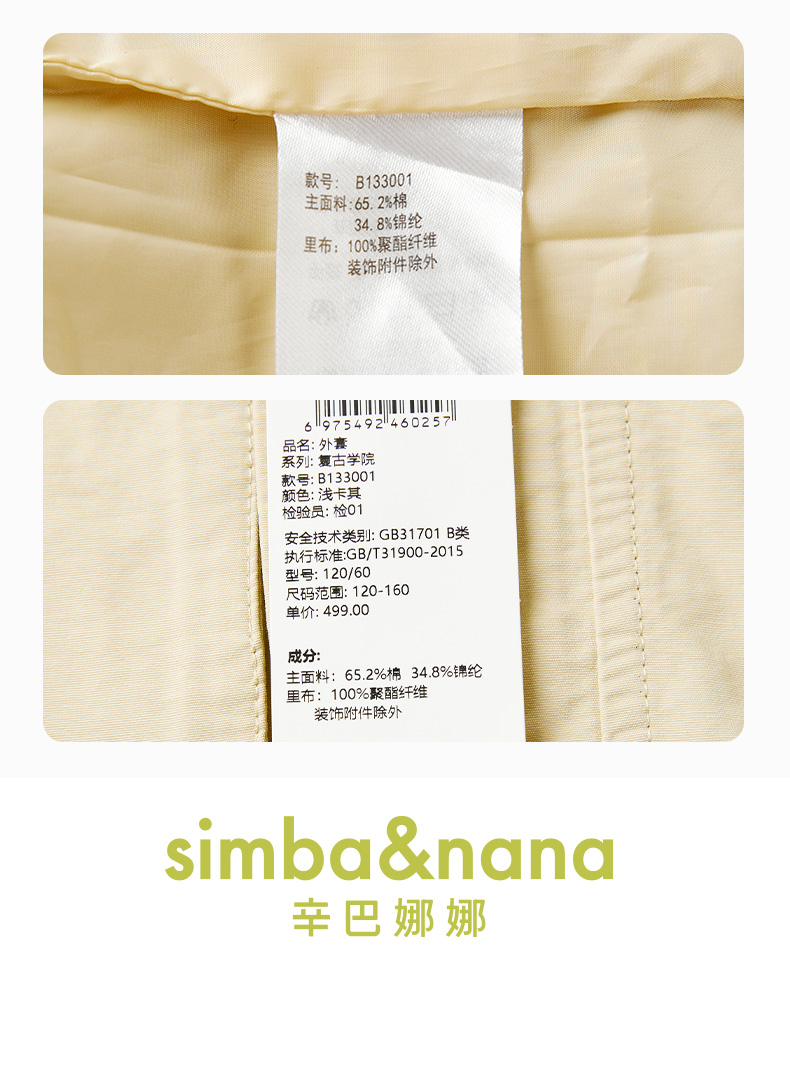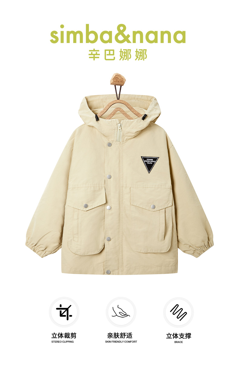 【辛巴娜娜】simbanana男孩中大童外套春秋新款洋气连帽口袋儿童装