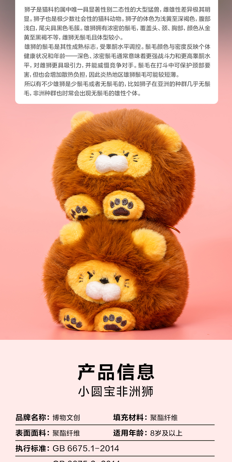 博物文创 小圆宝 非洲狮 毛绒玩具挂件 节日礼物