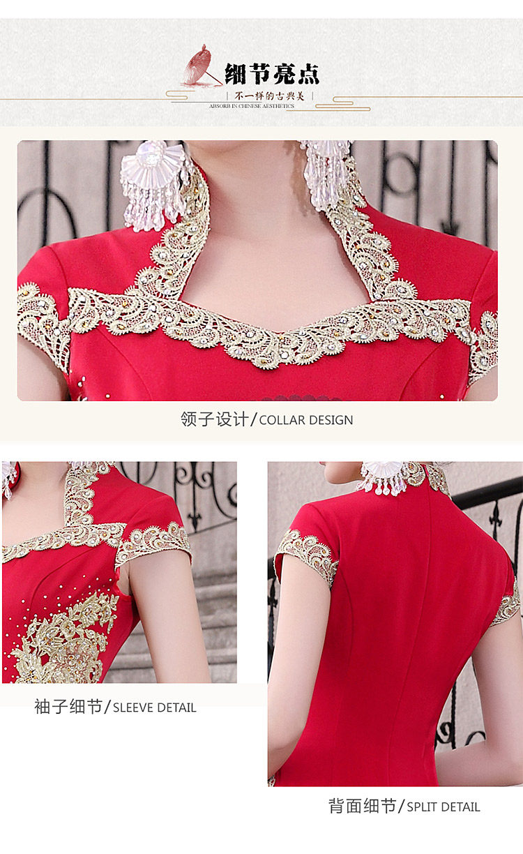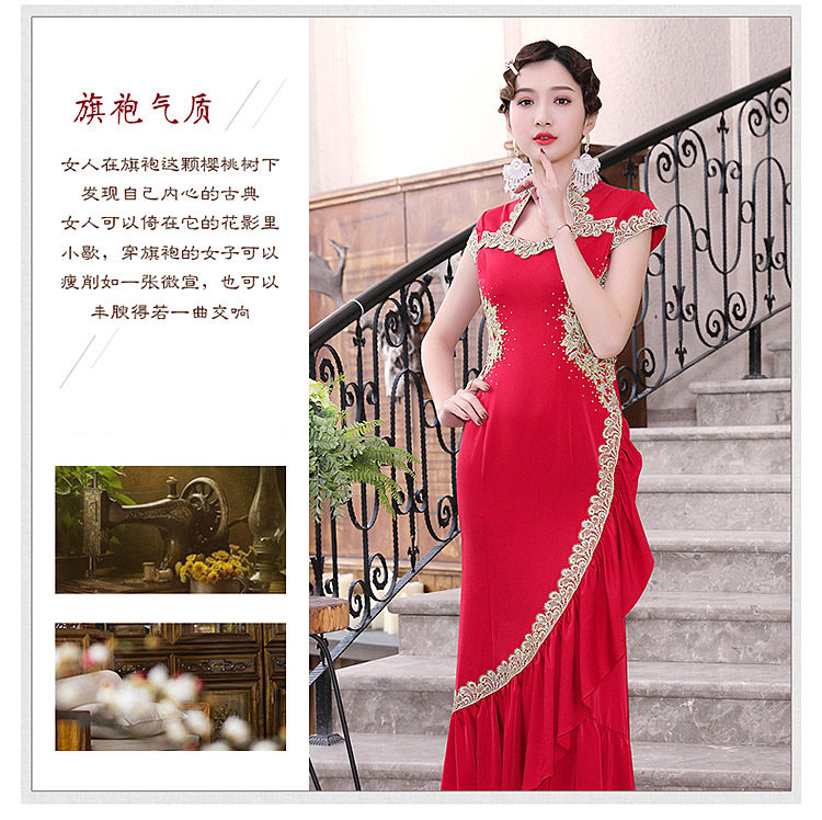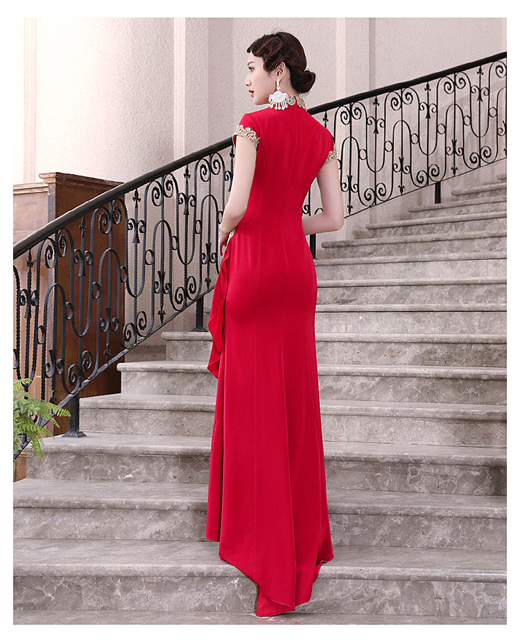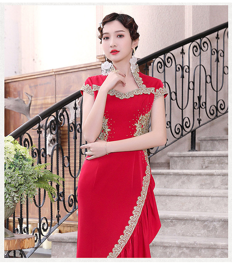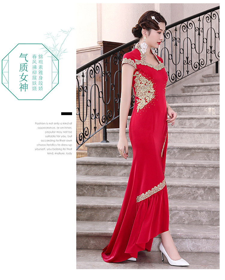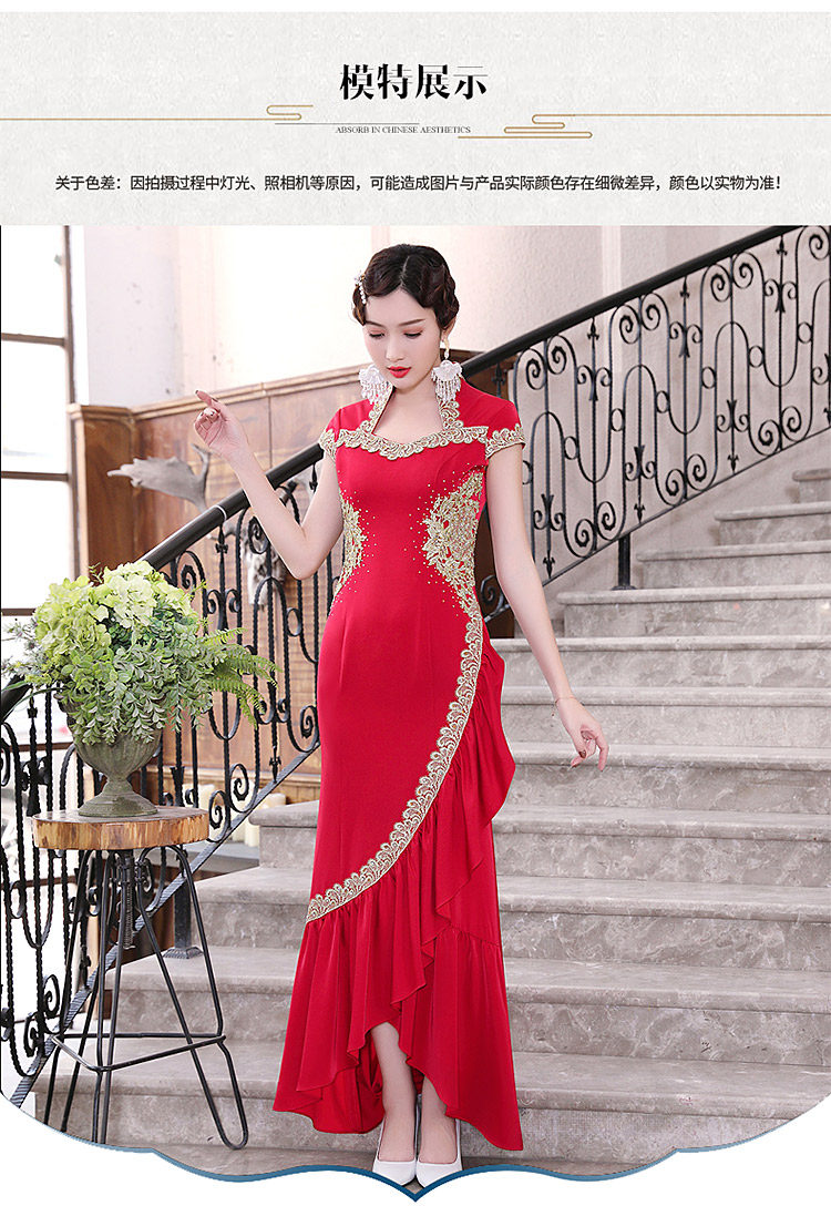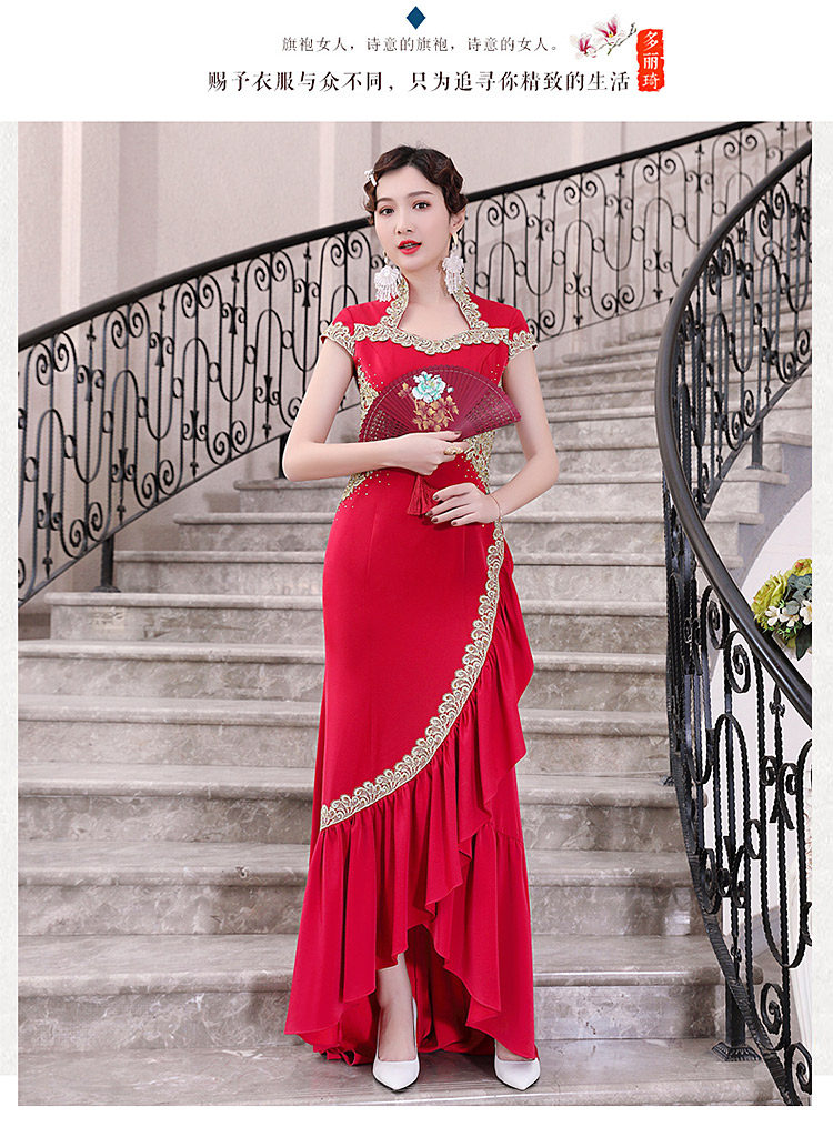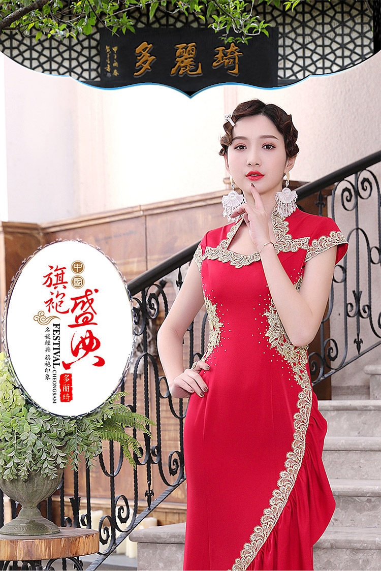 DLQ-A2416红色旗袍连衣裙 中国风女长款气质高端晚礼服