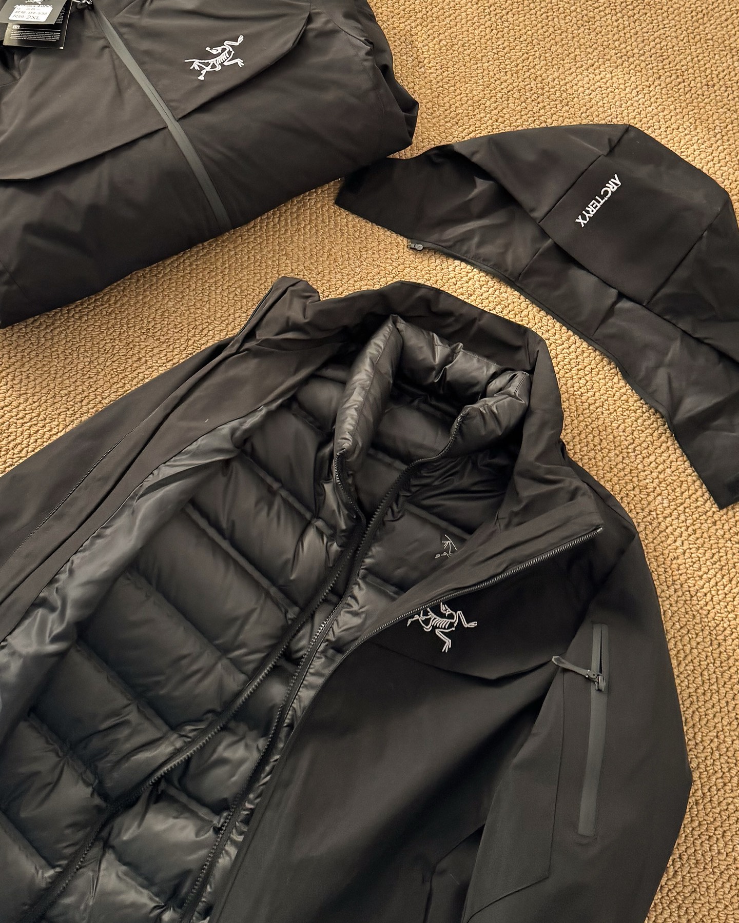 ARC'TERYX/始祖鸟三合一冲锋衣羽绒服可拆卸内胆情侣男女同款!始祖鸟男女款Macai Jacket买菜 三合一可拆卸羽绒内胆羽绒服 硬壳冲锋衣衣 面料:原版一比一定织定染三防硬壳面料。辅料:原版拆解开发,一比一定制的小标,领标,水洗,吊牌,五金等等。工艺:原版分解,从裁剪,拼接,到缝制工艺完全原版一比一。全身无缝压胶工艺。可拆卸羽绒内胆PowderGuard网眼开衩可释放多余热量。做工非常精致 内里全压胶工艺 表层走针 丝毫不渗水 不漏水 客供定制专属100%