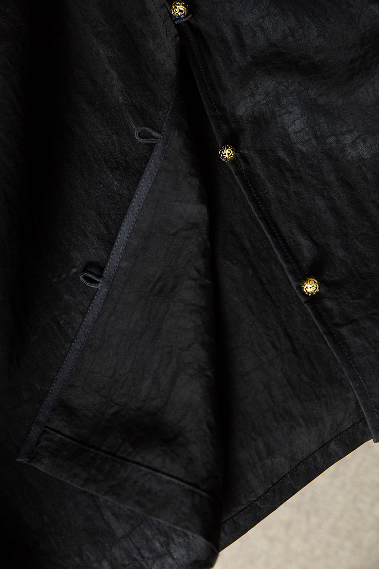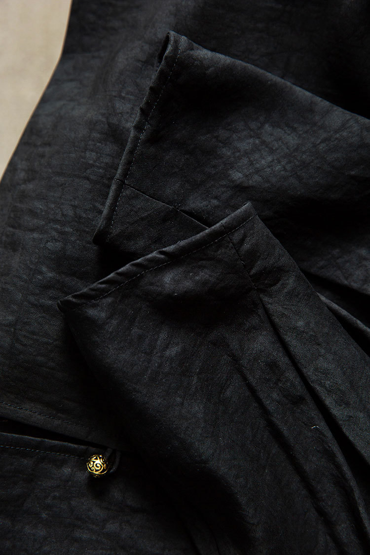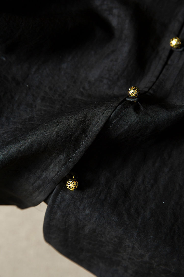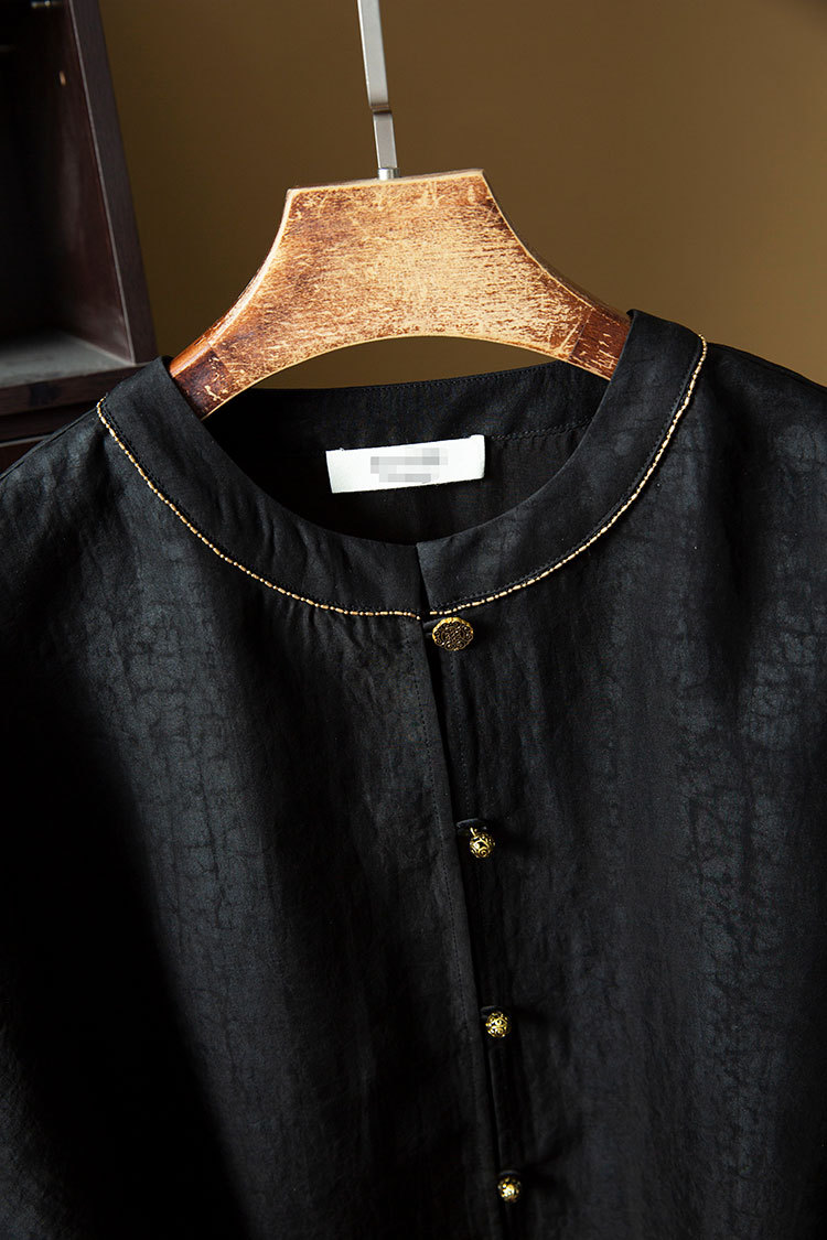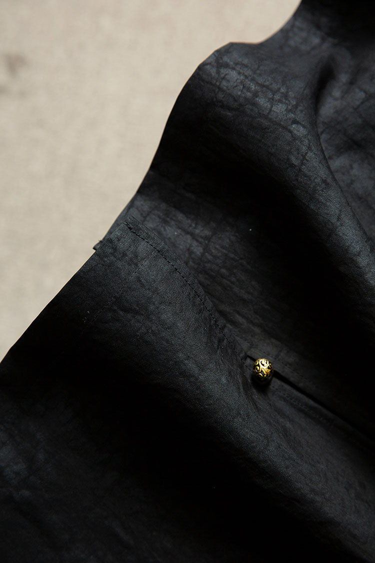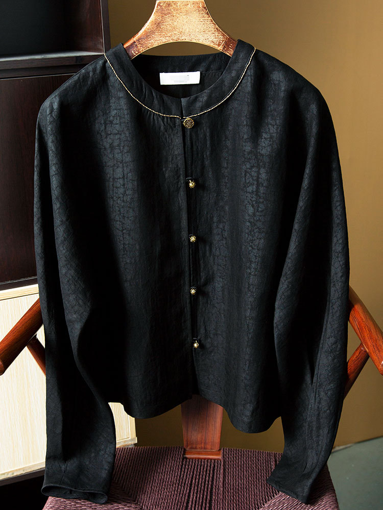 丁摩 桑蚕丝非遗香云纱龟纹上衣 气质单排扣宽松显瘦真丝圆领外套4ZF-053
