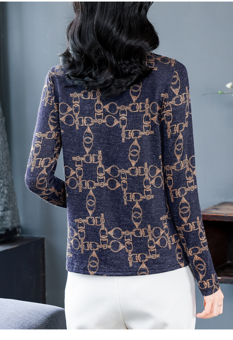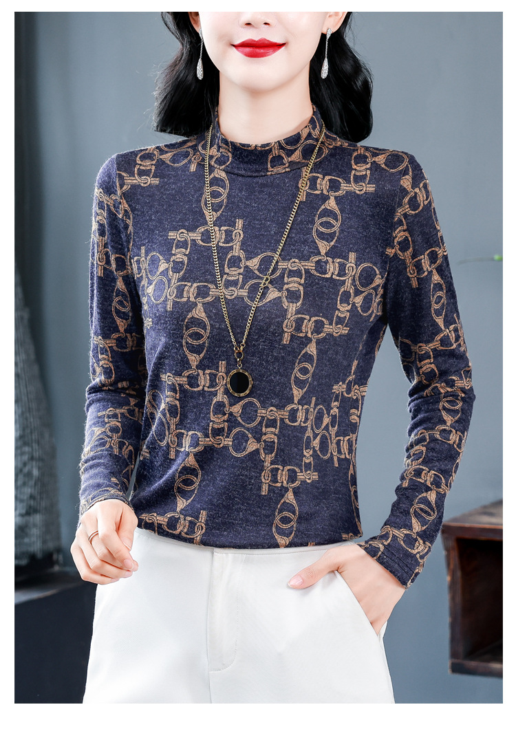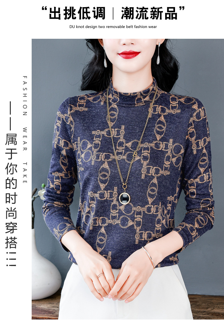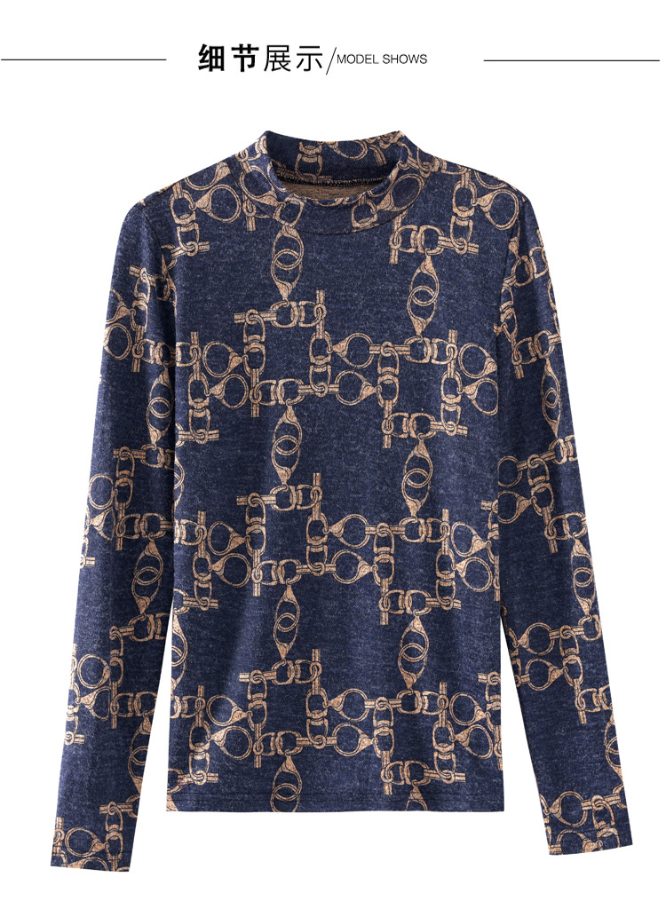 半高领长袖印花T恤,修身显瘦洋气内搭小衫KQL-644G9238