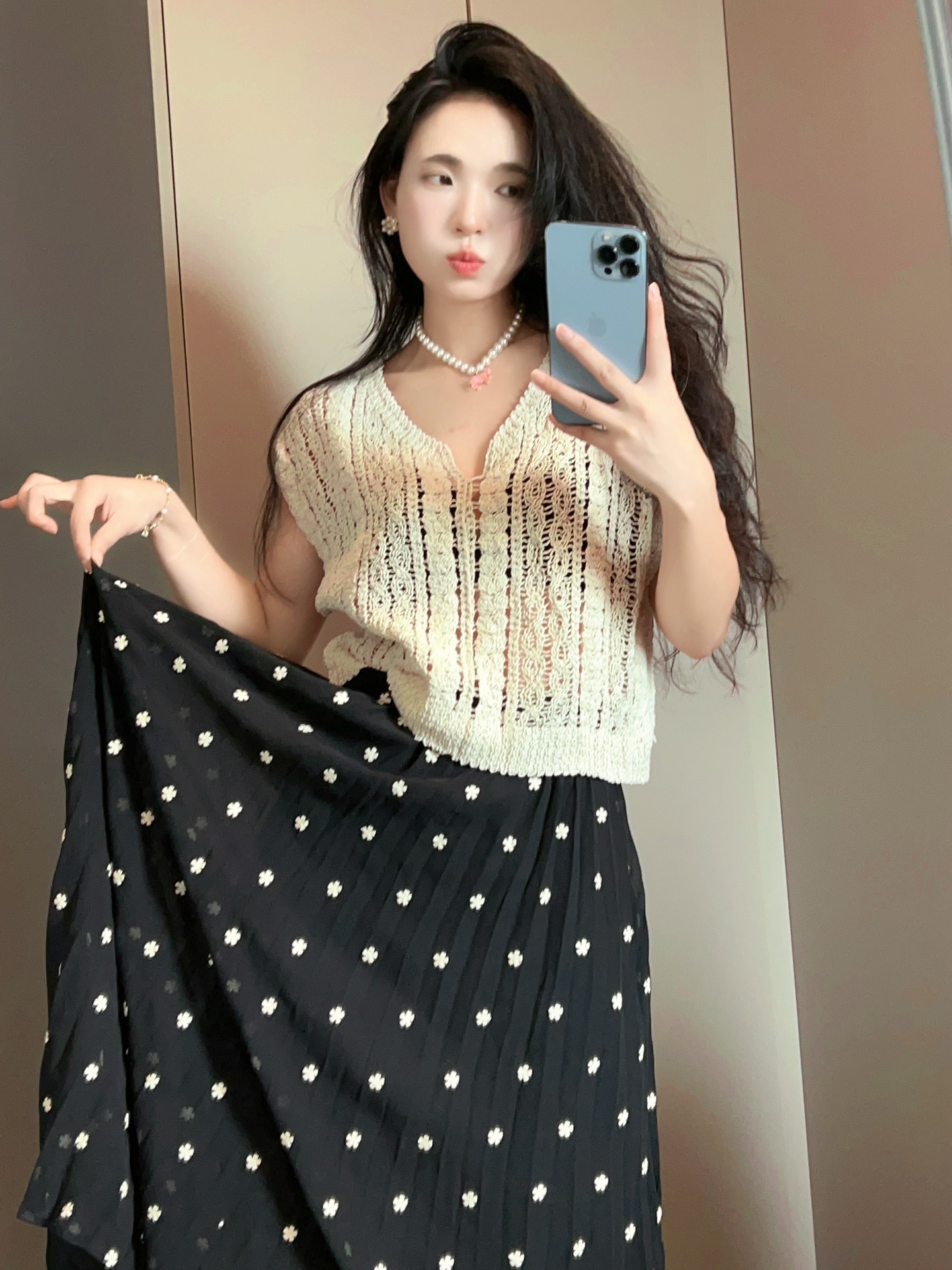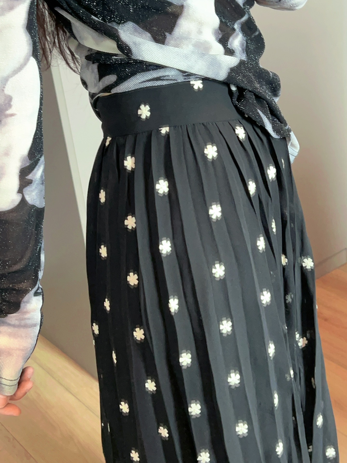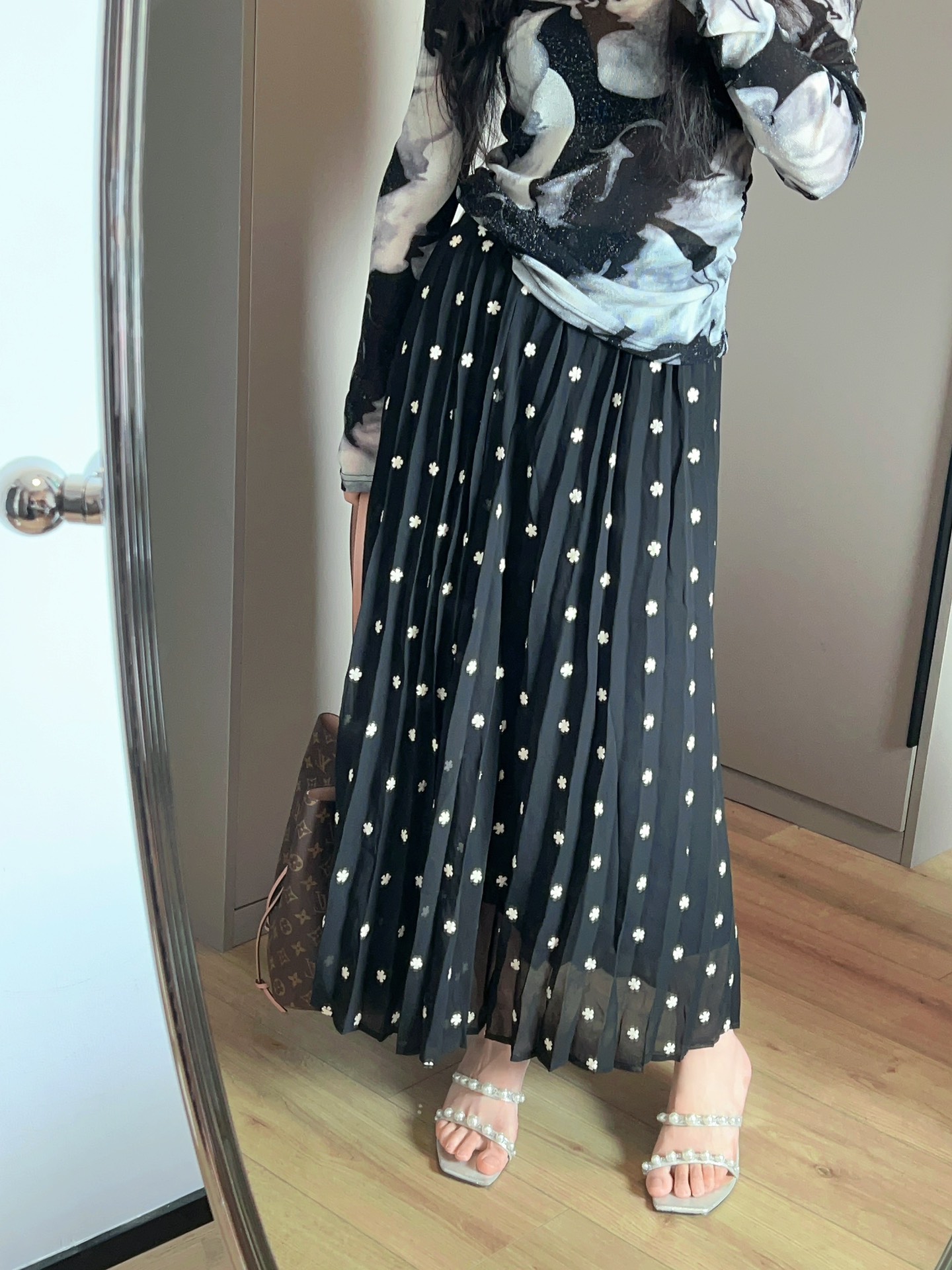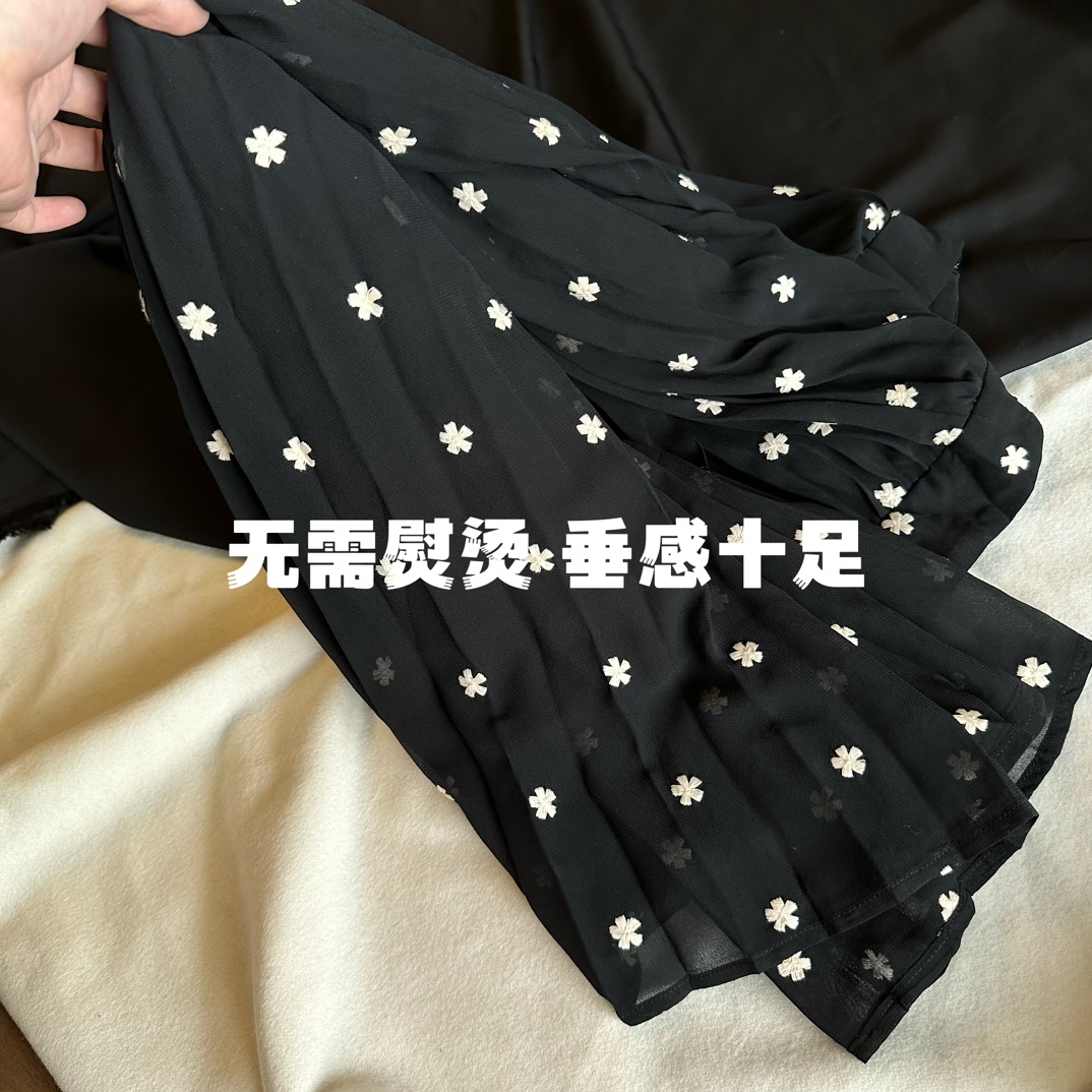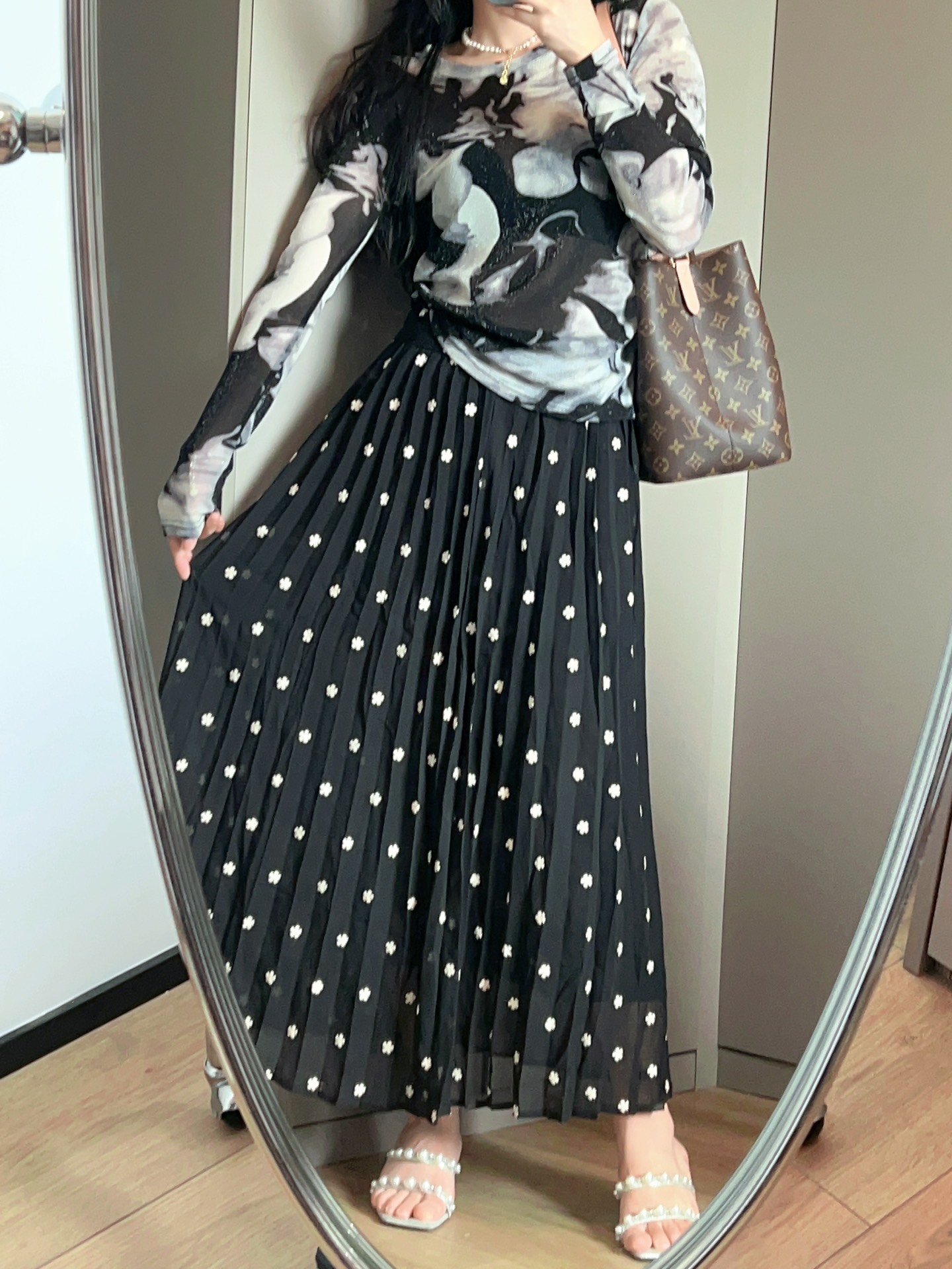 这一条裙子最大的亮点就是它是双层的面料,上身行走感觉就是很仙气,还是黑色都很高级,就搭配这种开衫外套穿,就是有一种很摇曳,很仙气的美!! 而且裙身并不是很蓬的那种,压褶设计,自然蓬松!一切都刚刚好~ 说实话百褶裙其实是非常百搭的,可以穿上三季的半身裙。