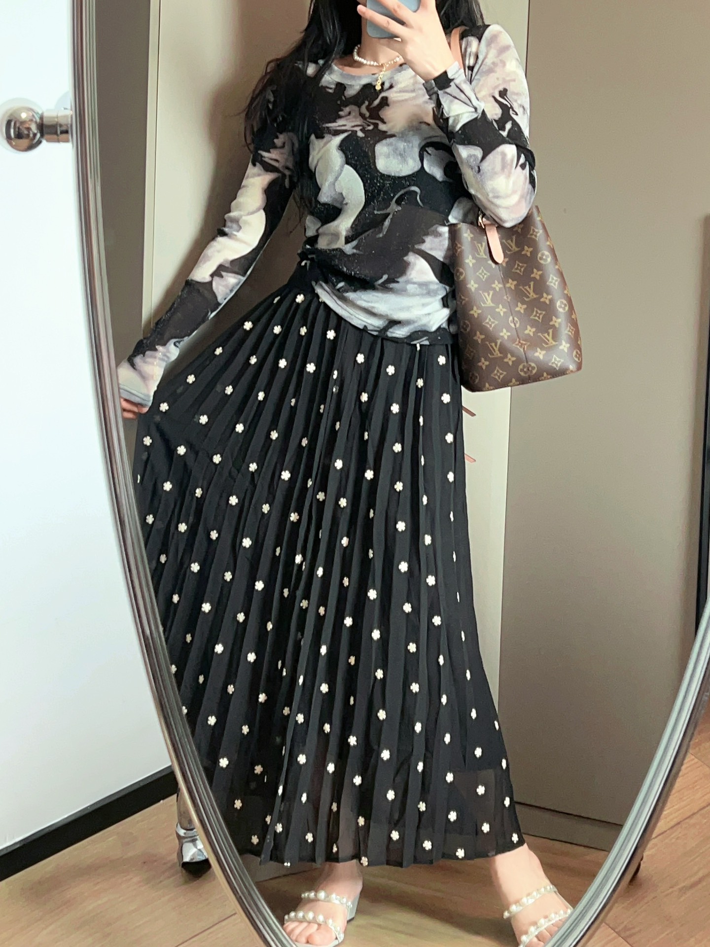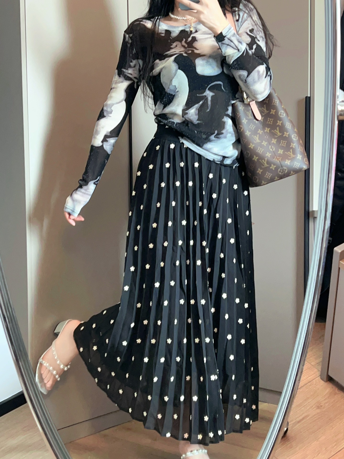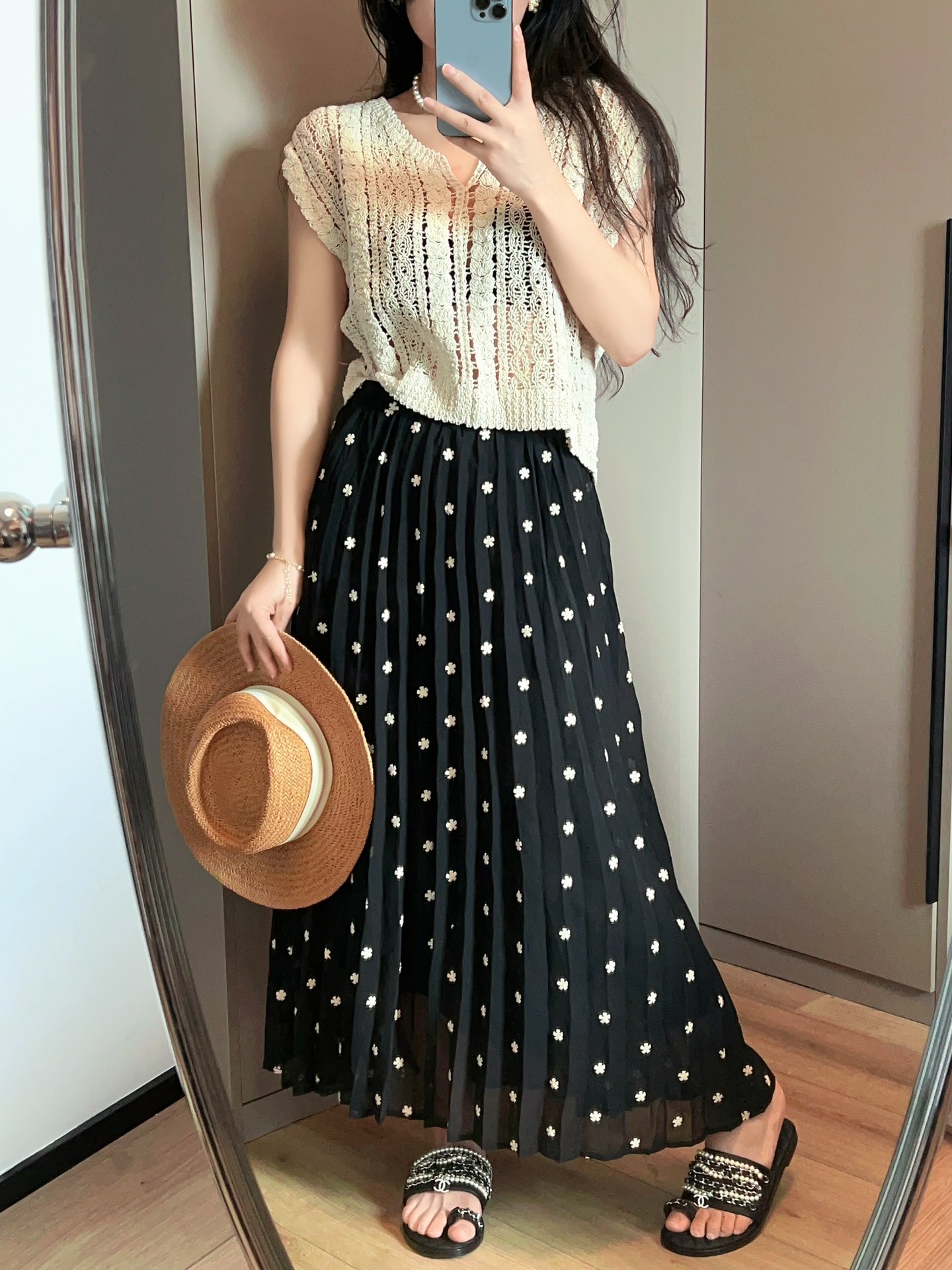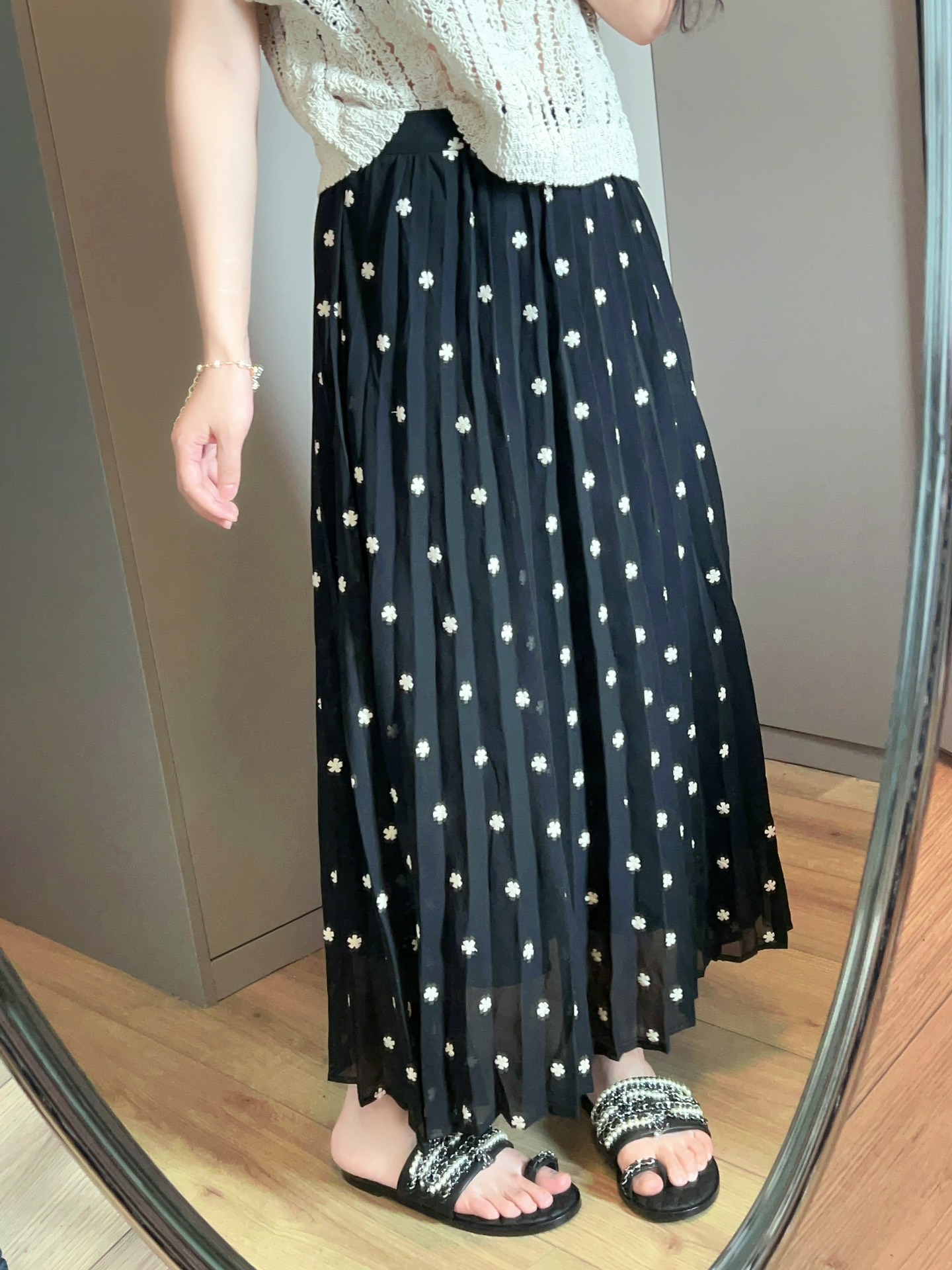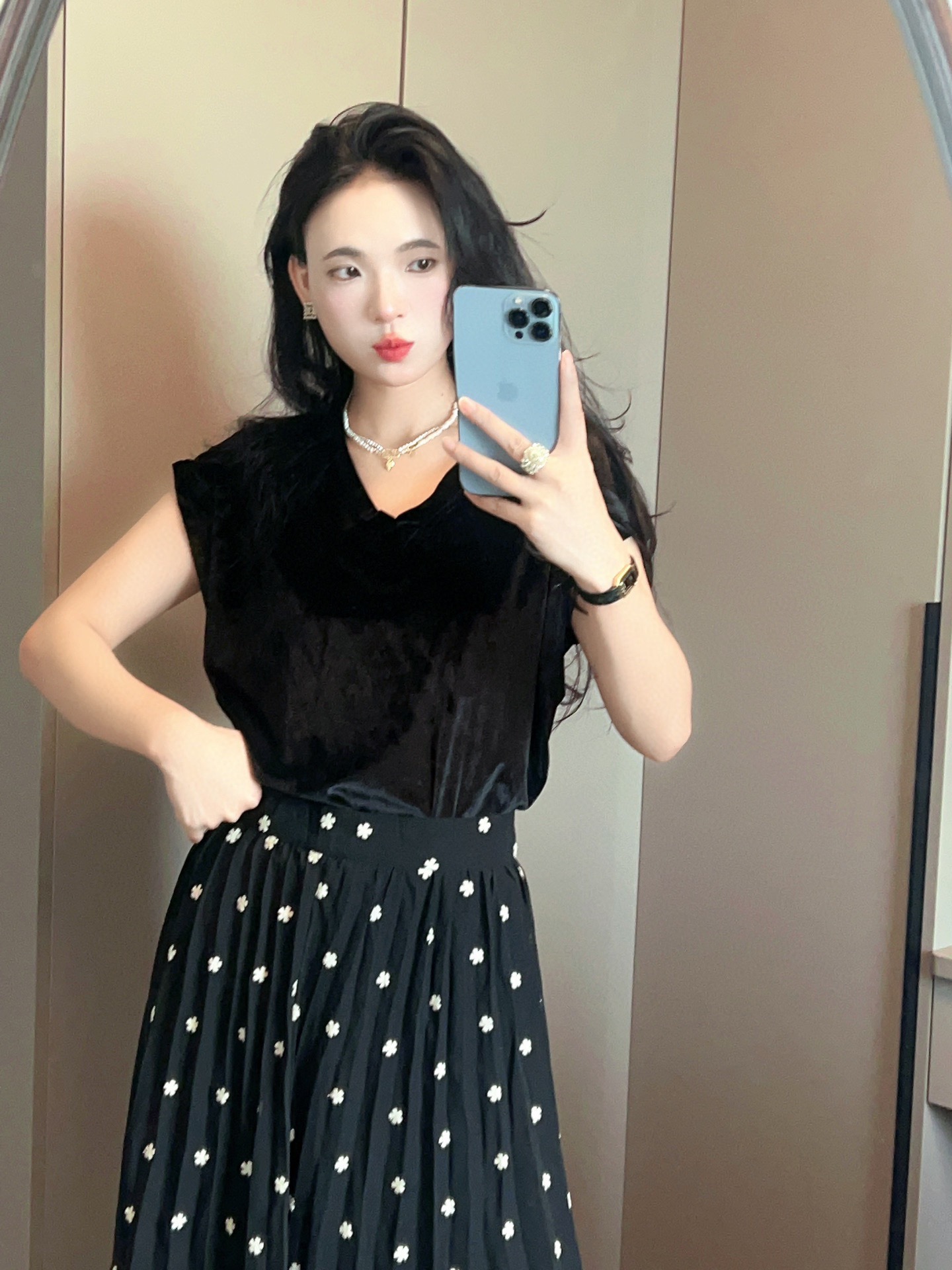 这一条裙子最大的亮点就是它是双层的面料,上身行走感觉就是很仙气,还是黑色都很高级,就搭配这种开衫外套穿,就是有一种很摇曳,很仙气的美!! 而且裙身并不是很蓬的那种,压褶设计,自然蓬松!一切都刚刚好~ 说实话百褶裙其实是非常百搭的,可以穿上三季的半身裙。